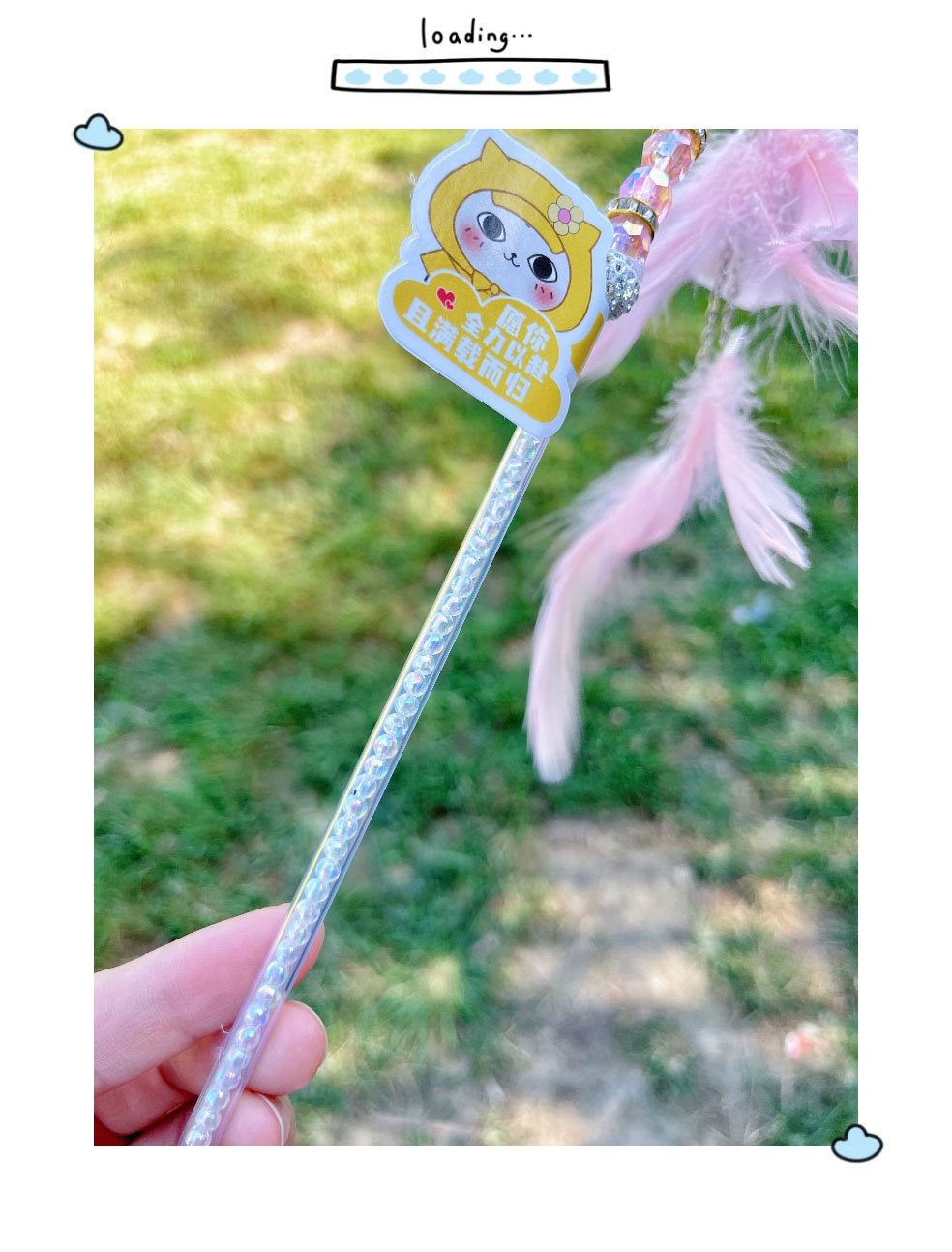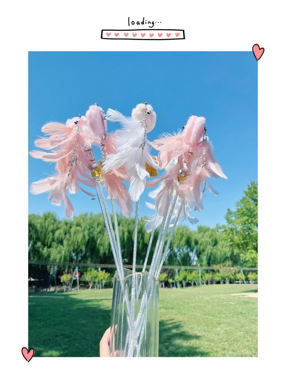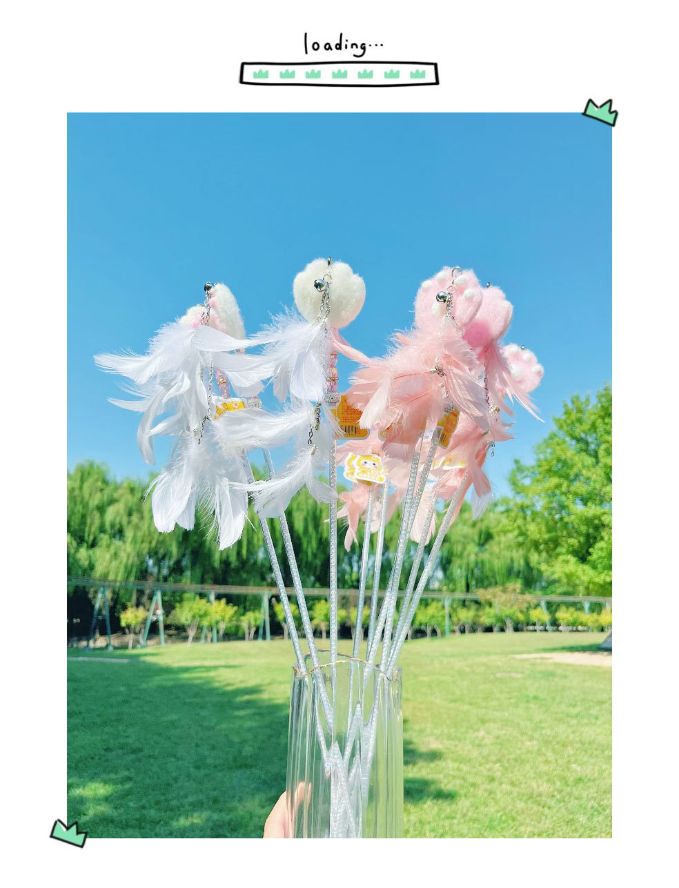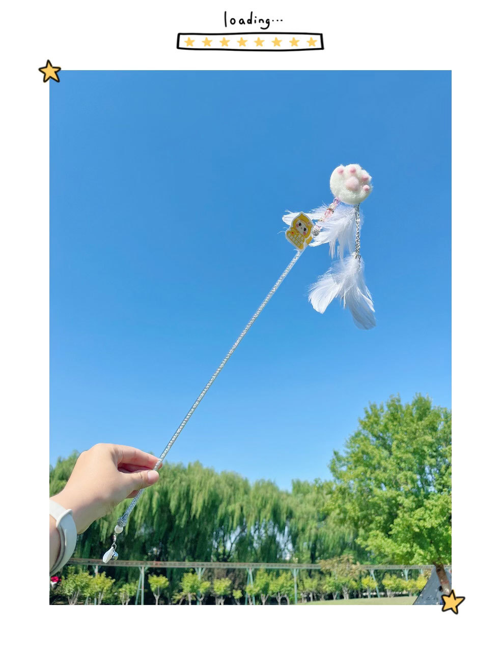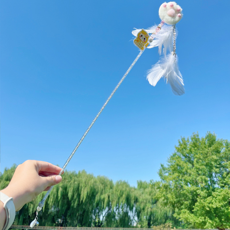 고양이 장난감 고양이 놀리는 스틱 귀여운 봉제 고양이 발톱 큰 깃털 요정 스틱 애완 동물 생일 선물스토어 가기