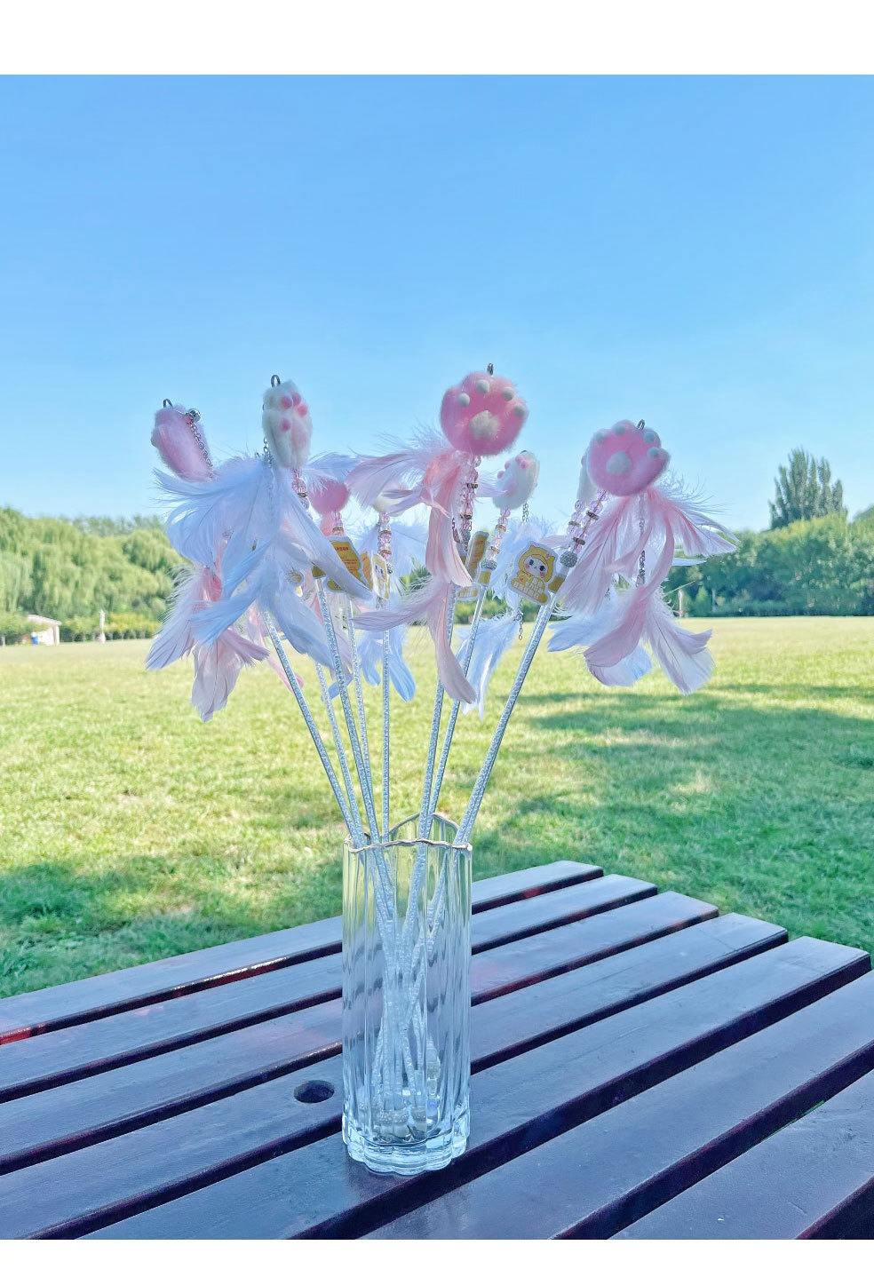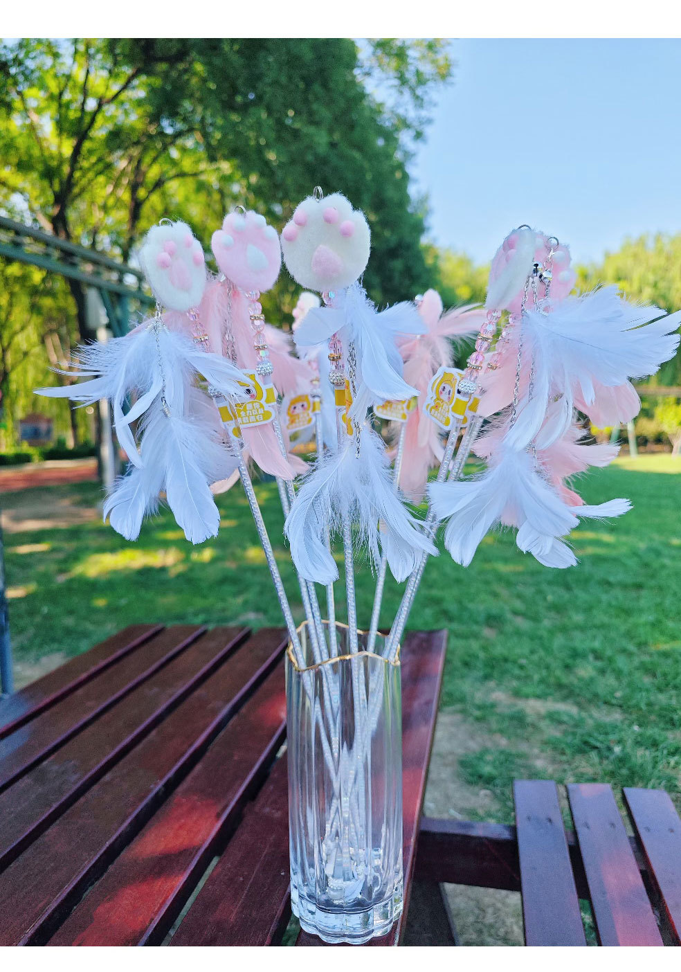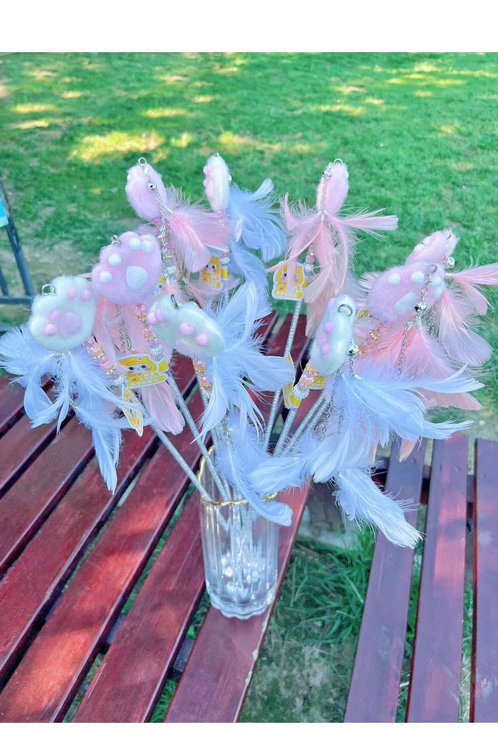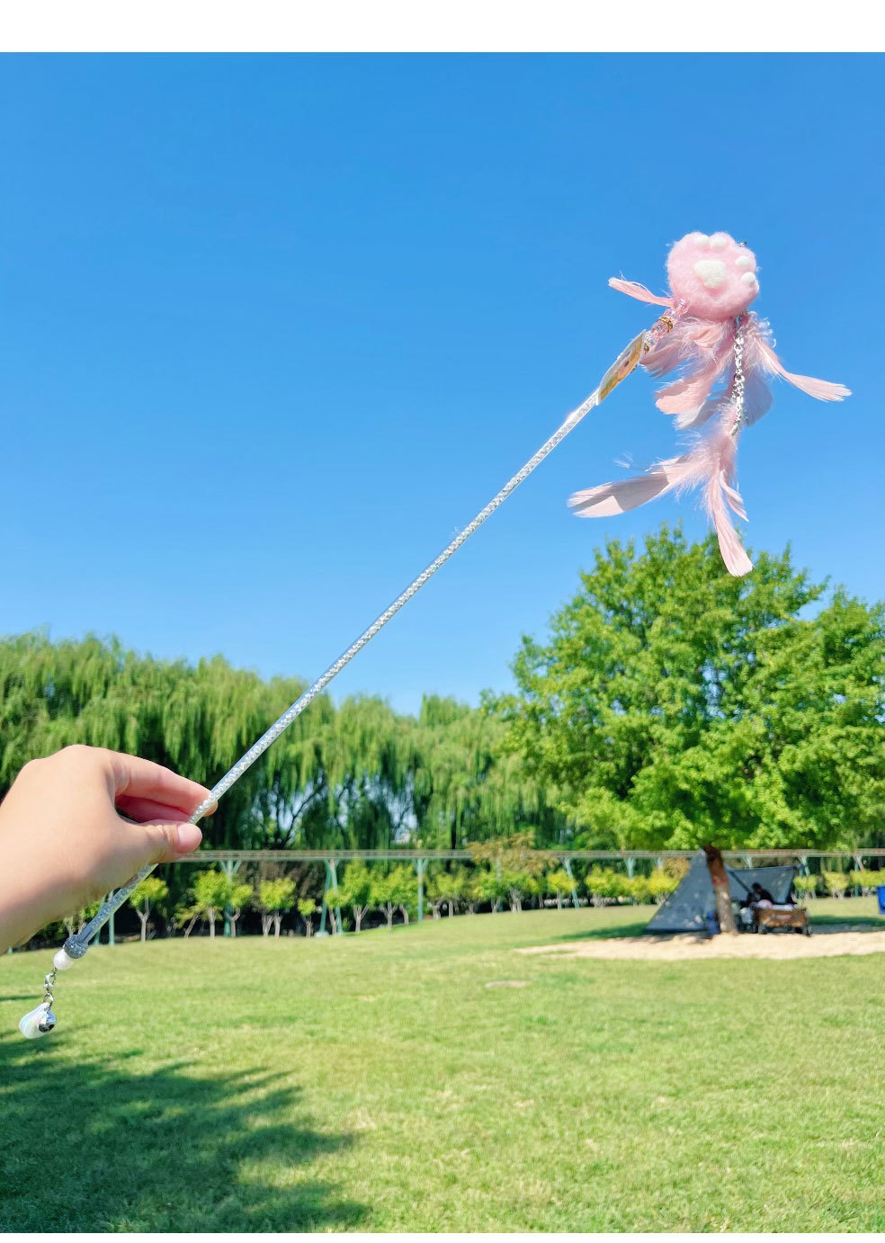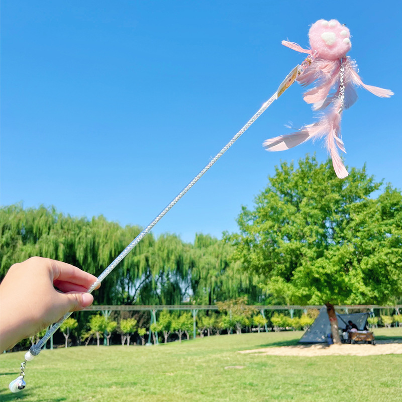 고양이 장난감 고양이 놀리는 스틱 귀여운 봉제 고양이 발톱 큰 깃털 요정 스틱 애완 동물 생일 선물