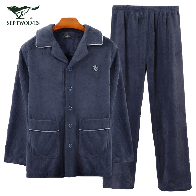 7 개의 늑대 남자 플란넬 홈 세트 가을과 겨울 기모 두꺼운 홈 옷은 잠옷 세트 입을 수 있습니다스토어 가기