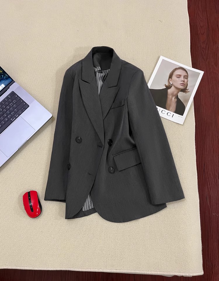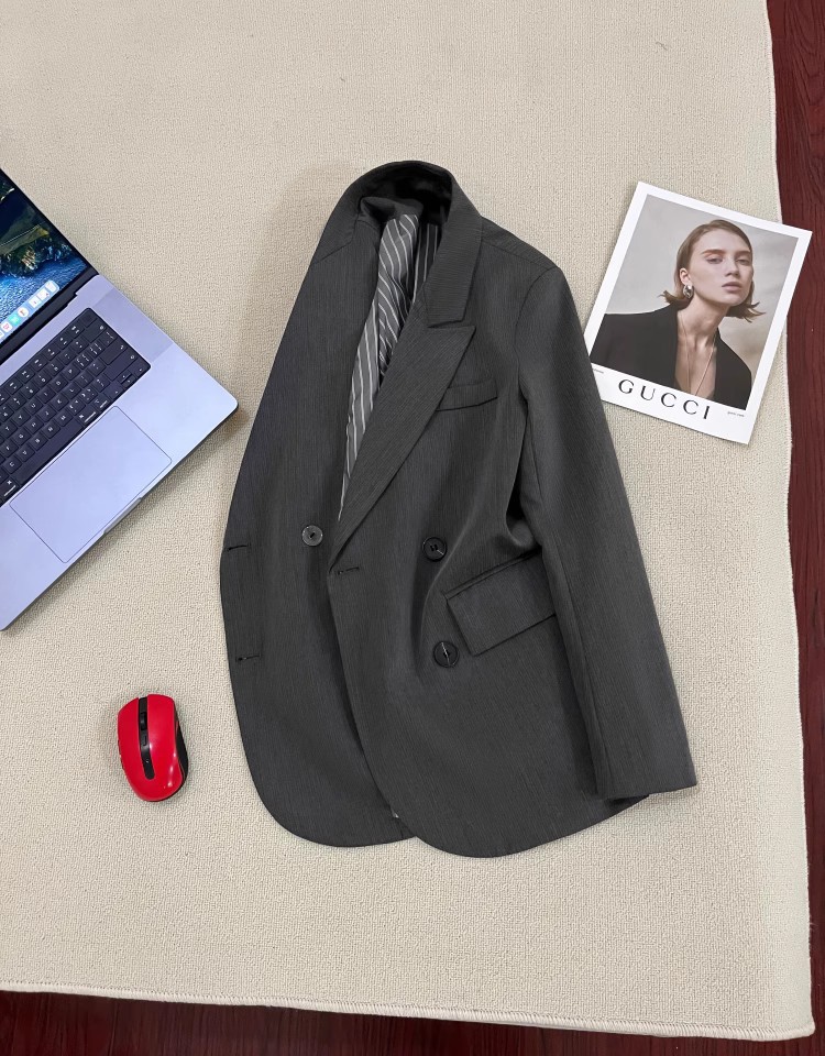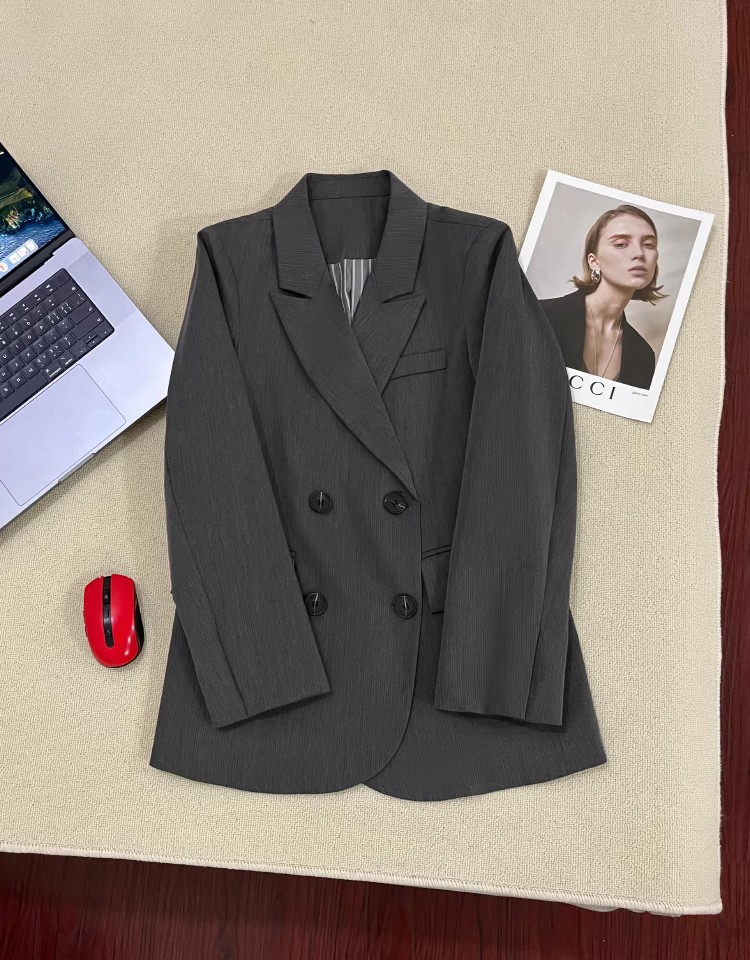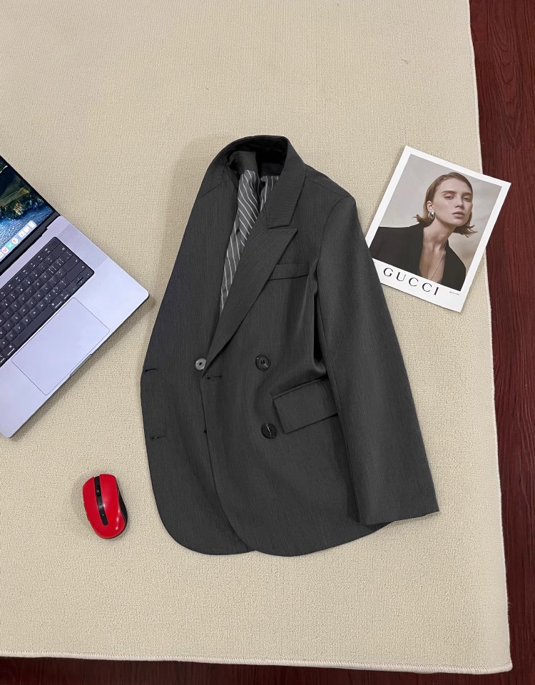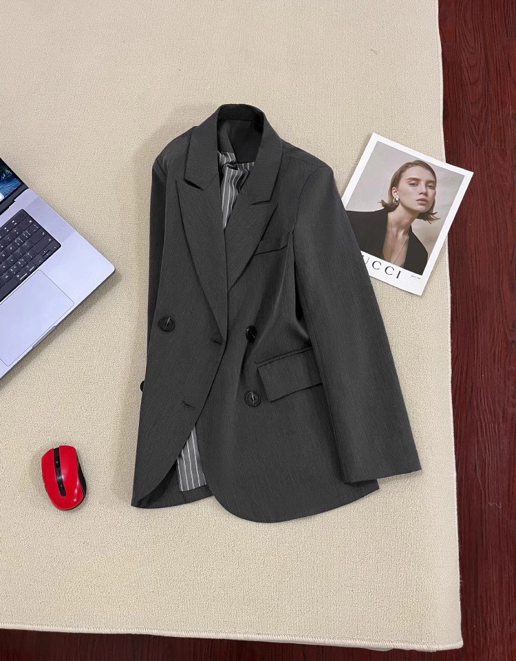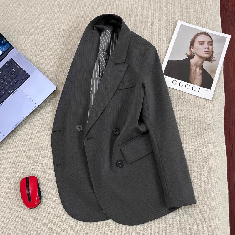 그레이 양복 재킷 여성용 2025 봄 가을 신상 더블 브레스티드 캐주얼 다용도 디자인 트렌디한 기품 있는 정장스토어 가기