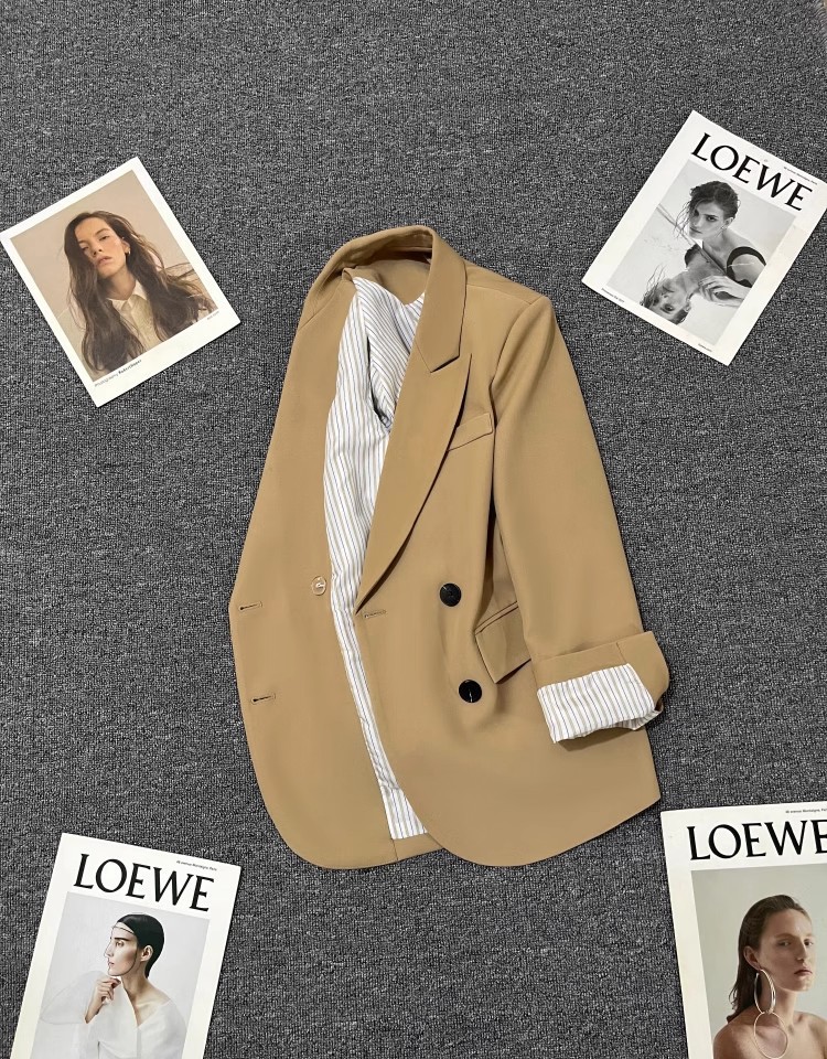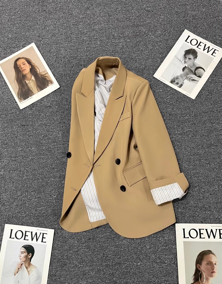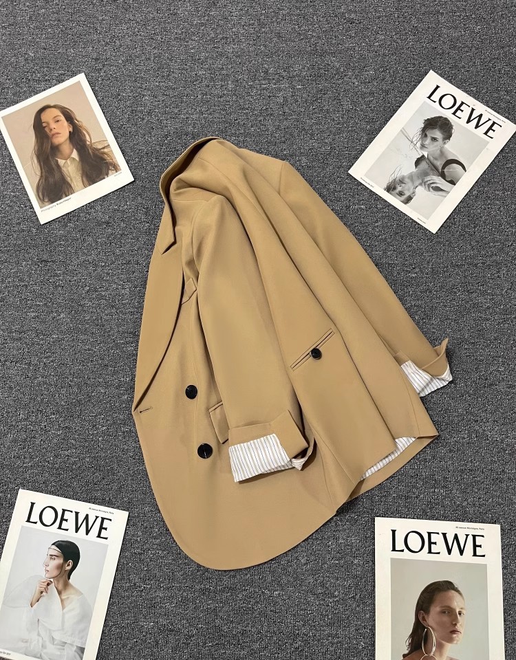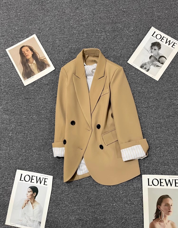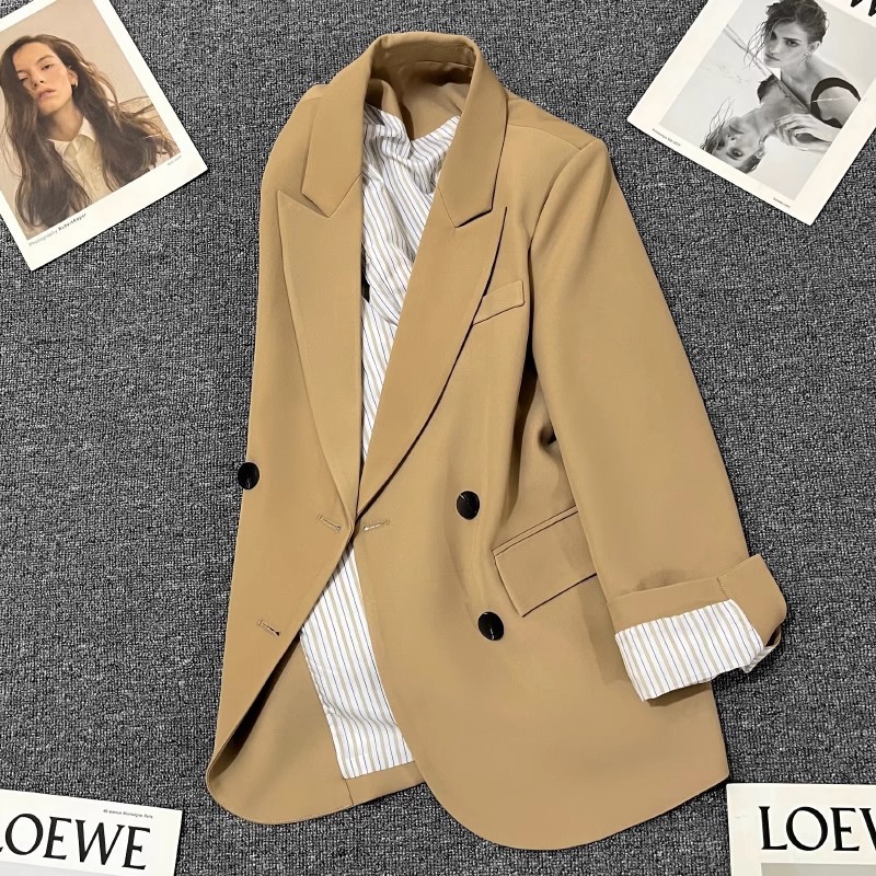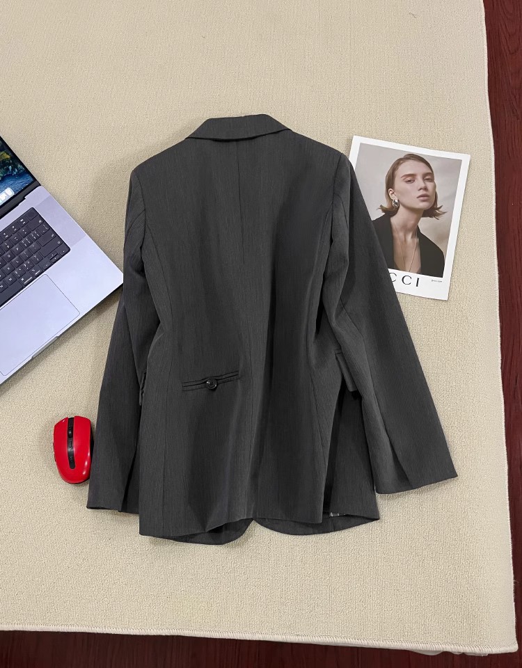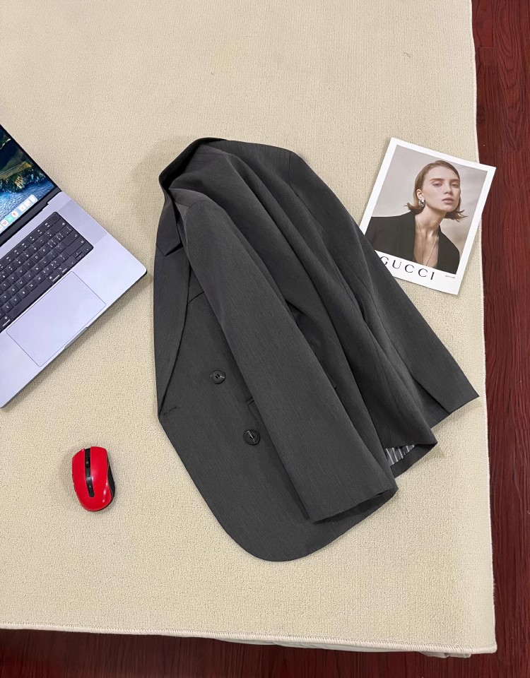 그레이 양복 재킷 여성용 2025 봄 가을 신상 더블 브레스티드 캐주얼 다용도 디자인 트렌디한 기품 있는 정장스토어 가기