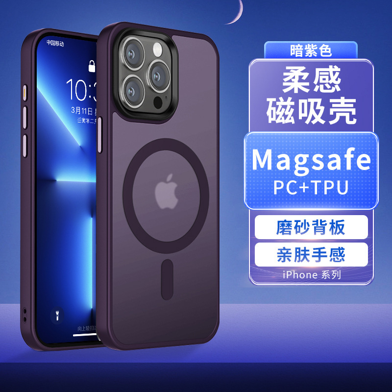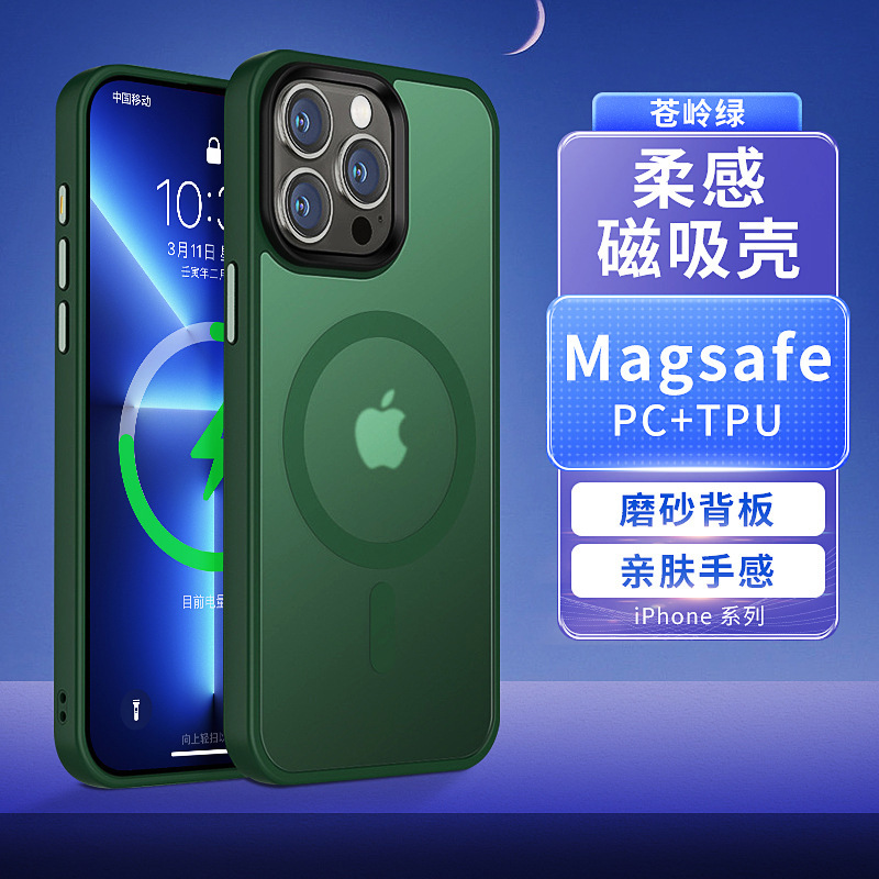 IPhone 15 무광택 피부 느낌 휴대 전화 케이스 마그네틱 Magsafe Apple 15Promax 반투명 아크릴