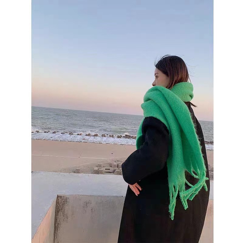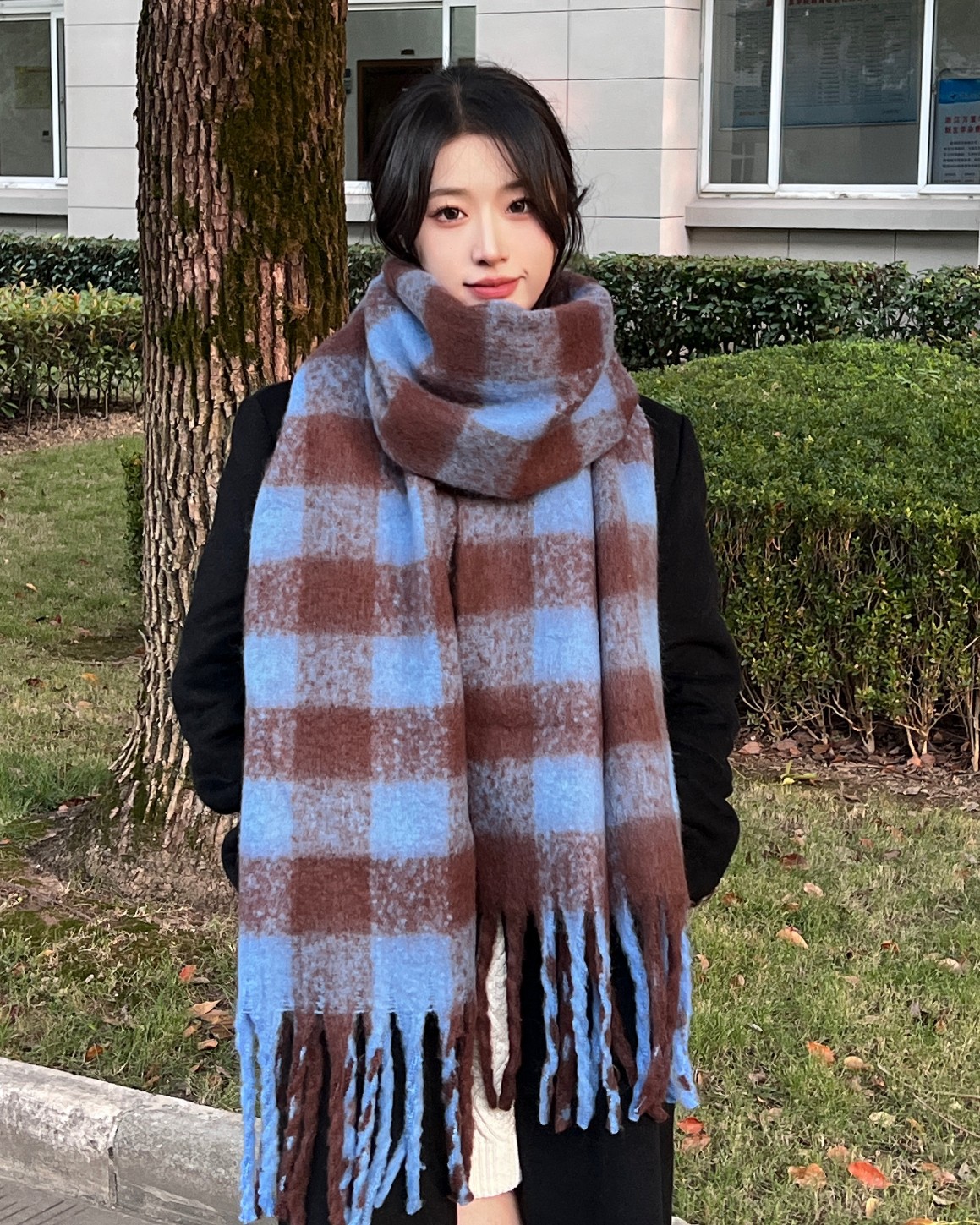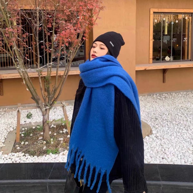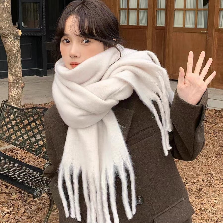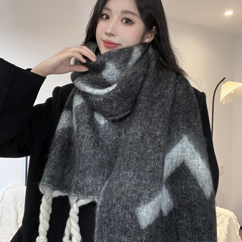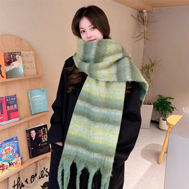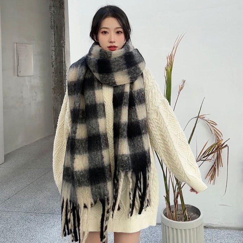 가을과 겨울 대비 컬러 스트라이프 타셀 하이 엔드 센스 스카프 여성 분위기 감각은 두꺼운 따뜻한 격자 무늬 올 매치 한국 스타일 스카프스토어 가기