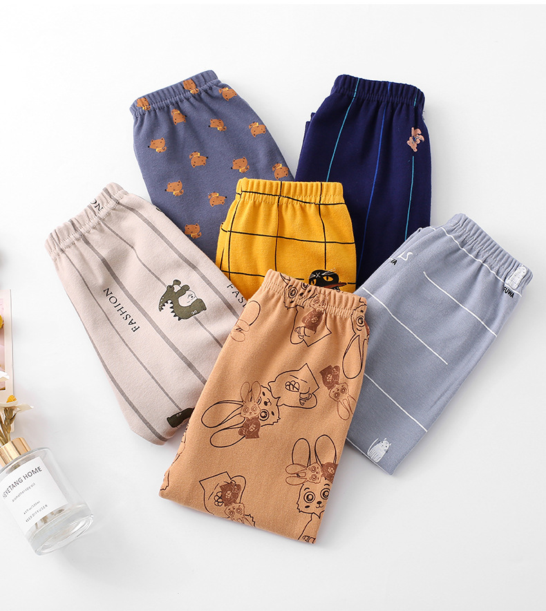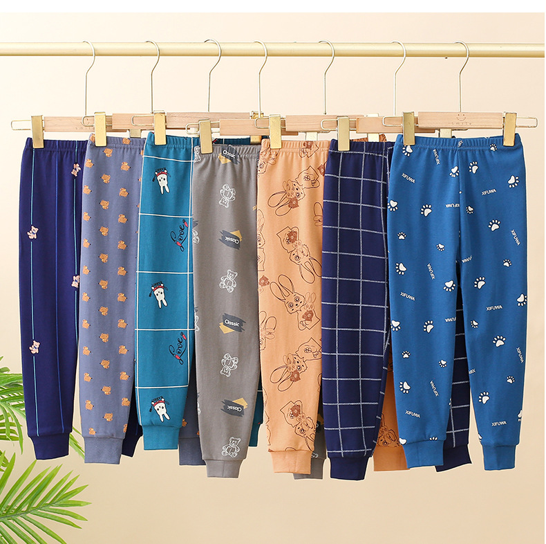 어린이 순면 보텀핑 바지 얇은 소년 소녀 중소 어린이 파자마 바지 라인 바지 아기 내복 따뜻한 바지 바지