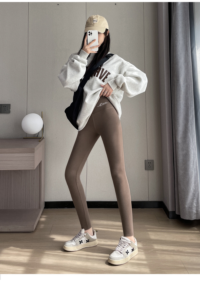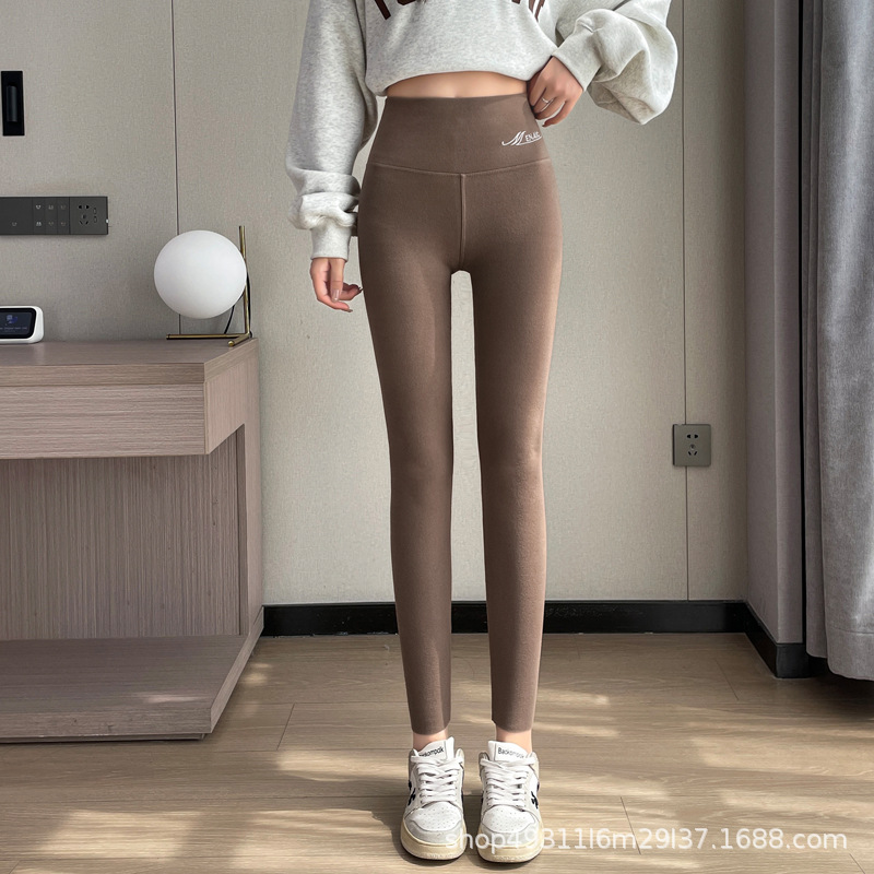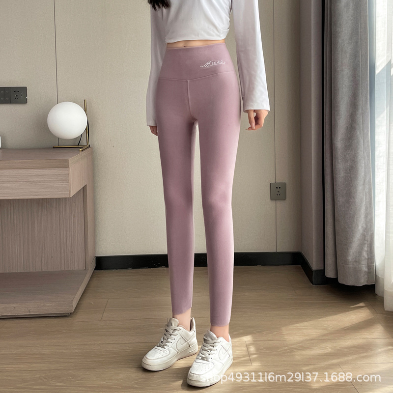 독일 벨벳 가을 바지 여성의 내부 착용 가을과 겨울 기모 두꺼운 코튼 울 바지 라인 바지 바지 하이 웨이스트 원활한 바닥 따뜻한 바지스토어 가기