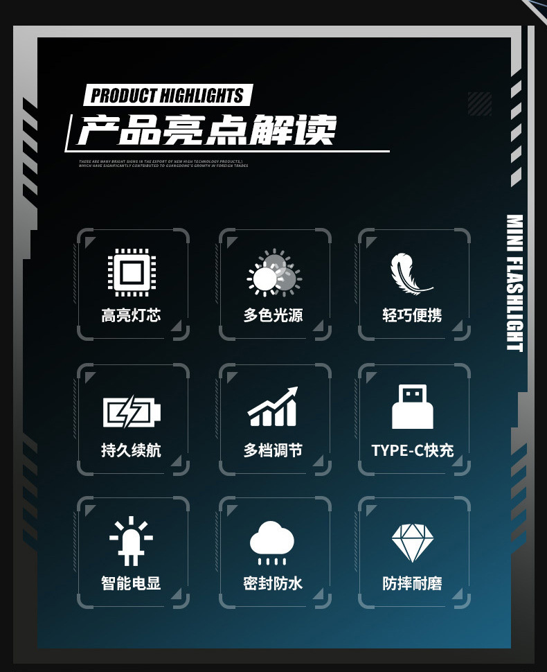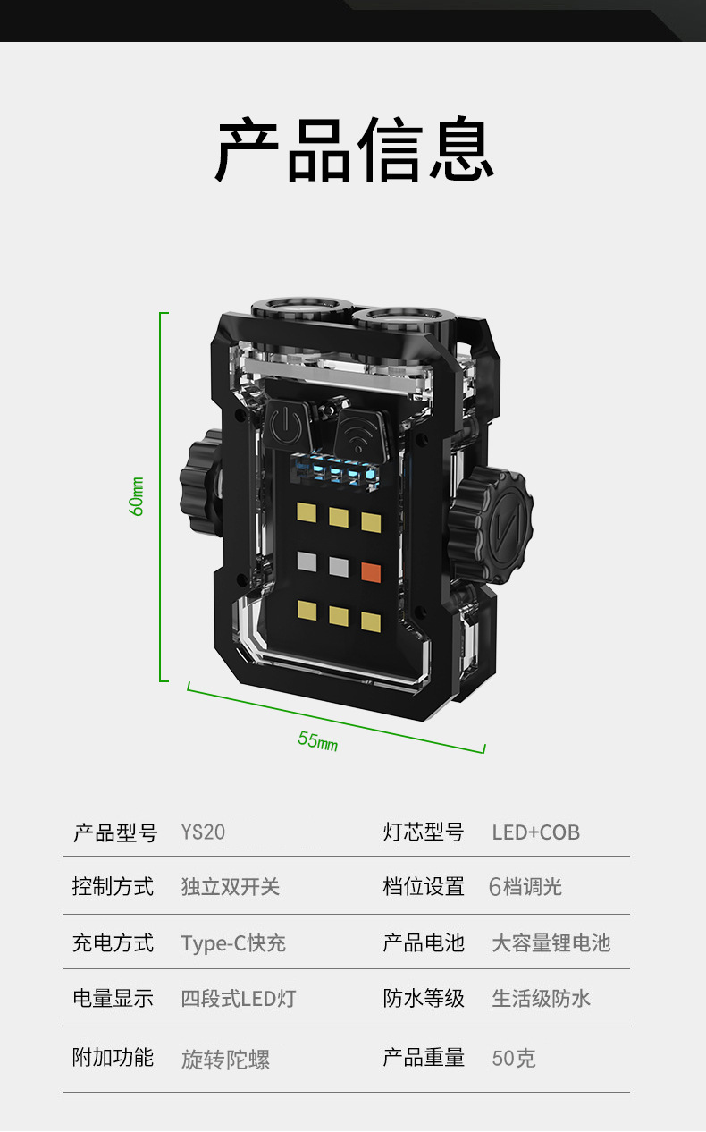 • 블랙 핑거팁 자이로 손전등 600mAh