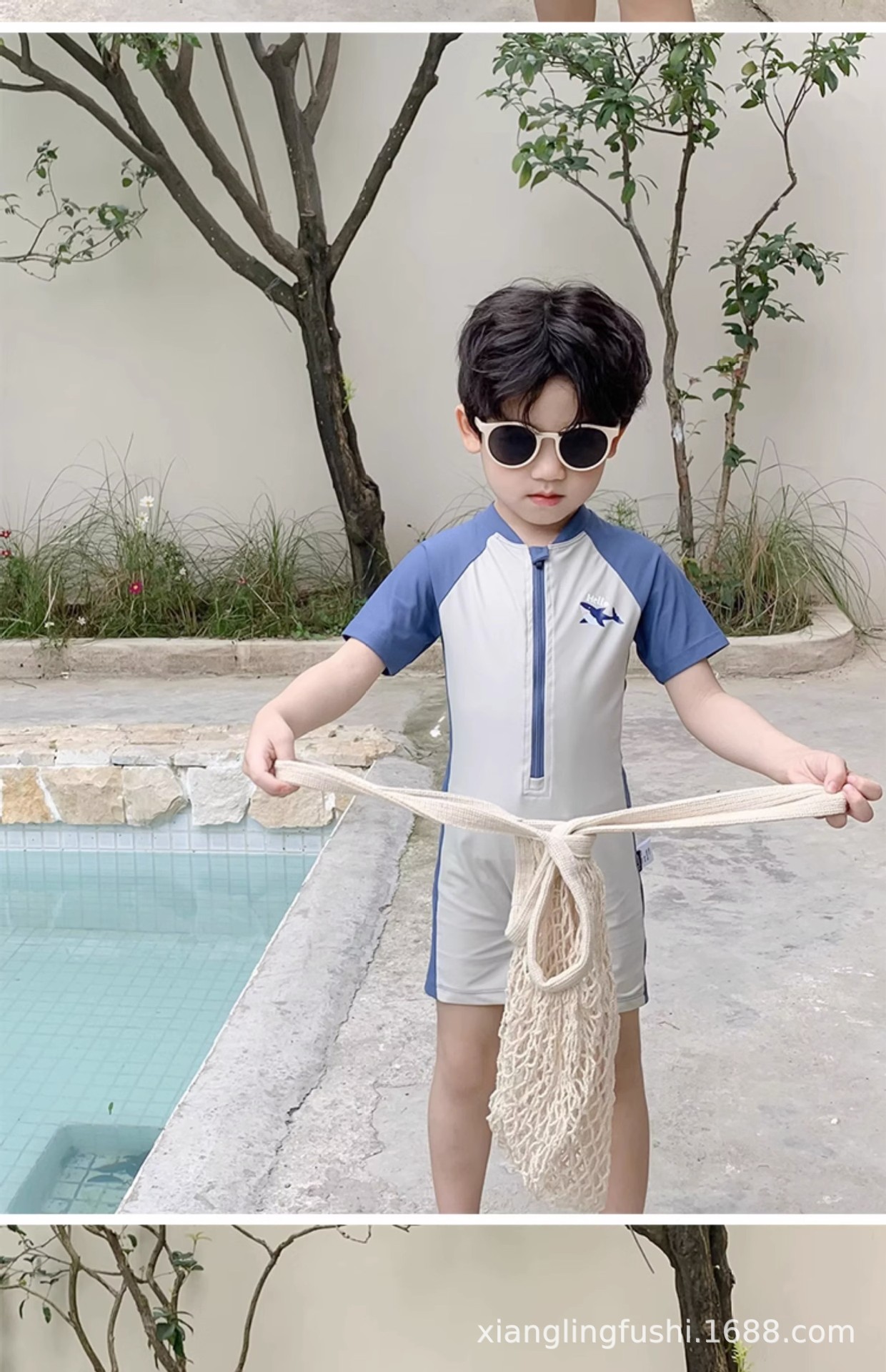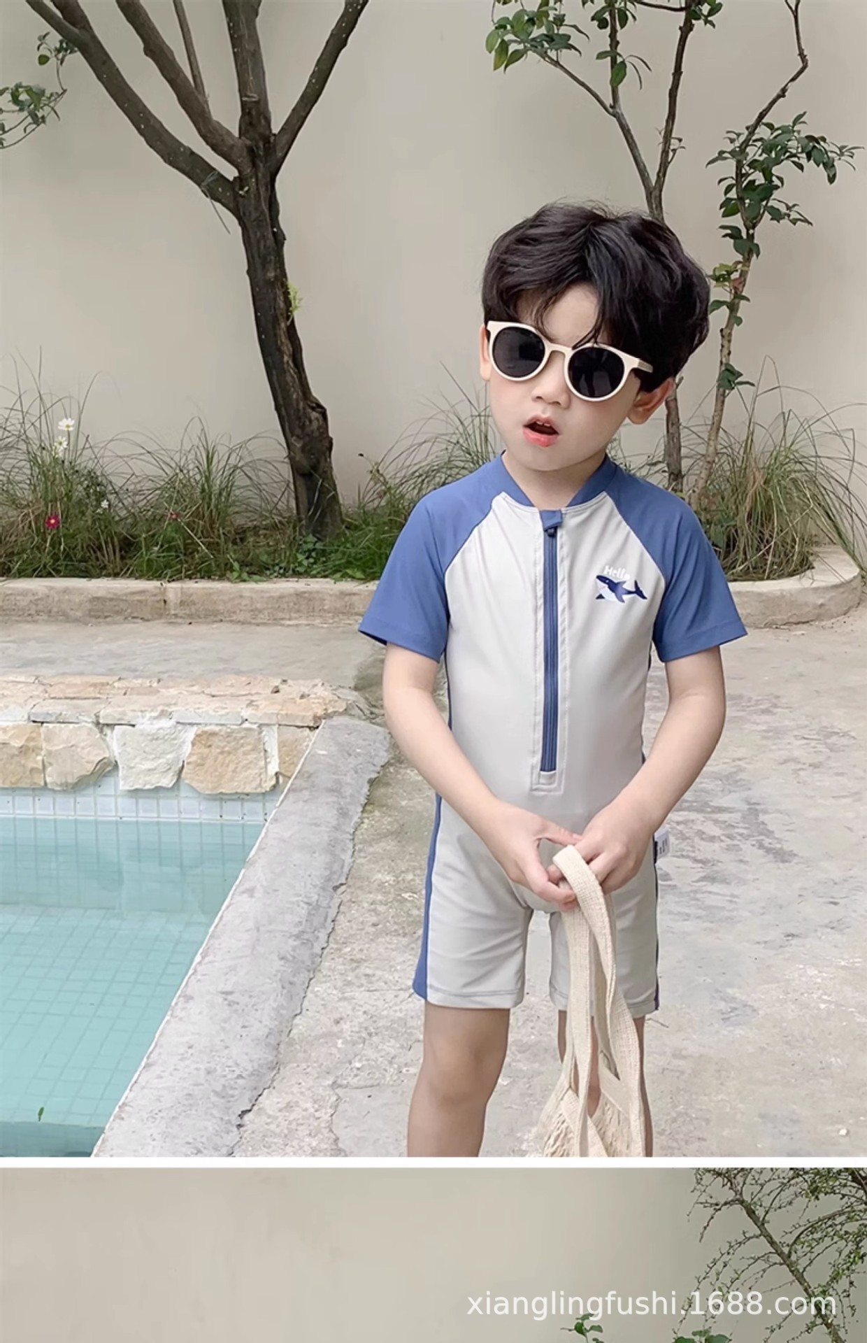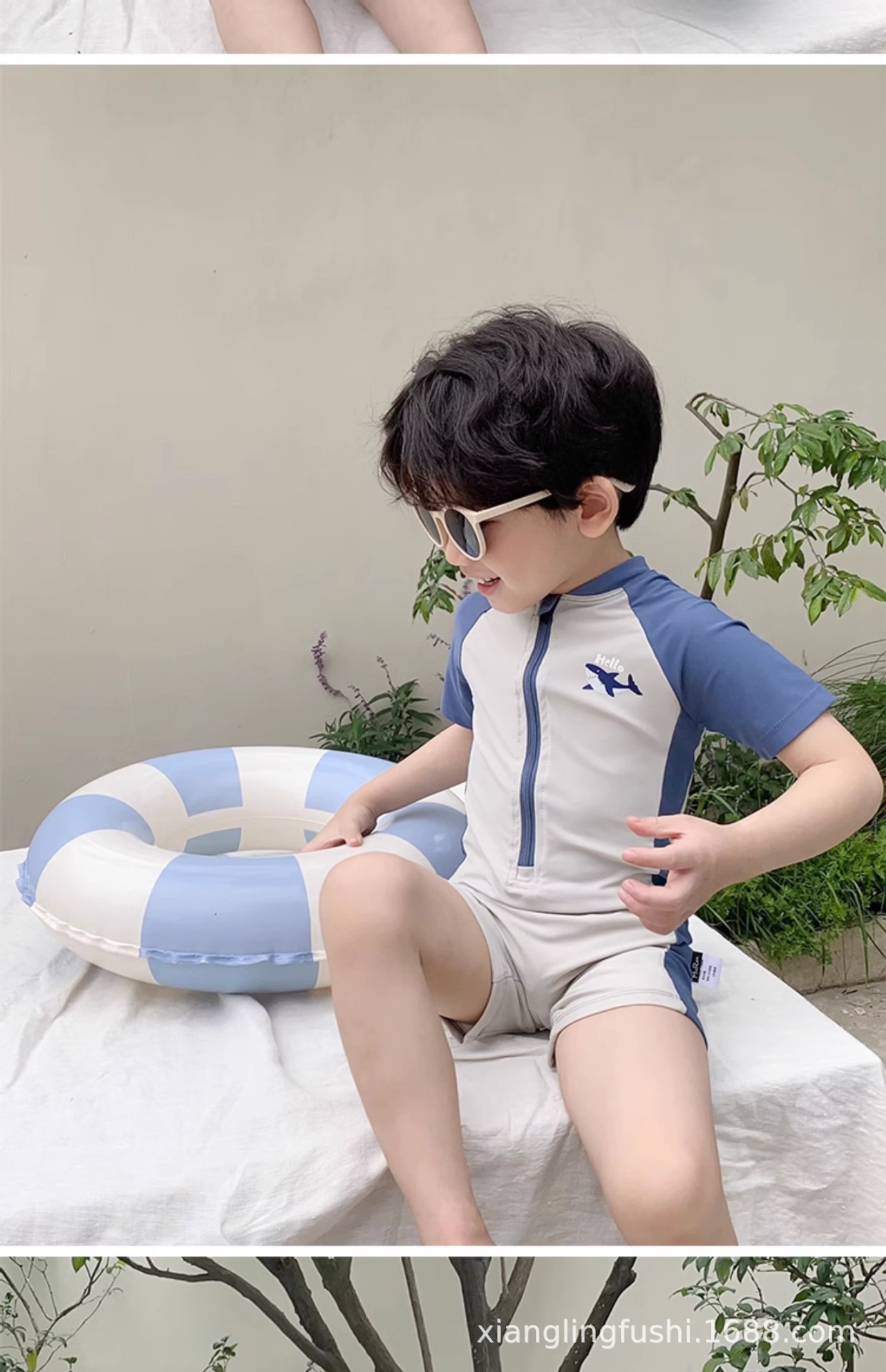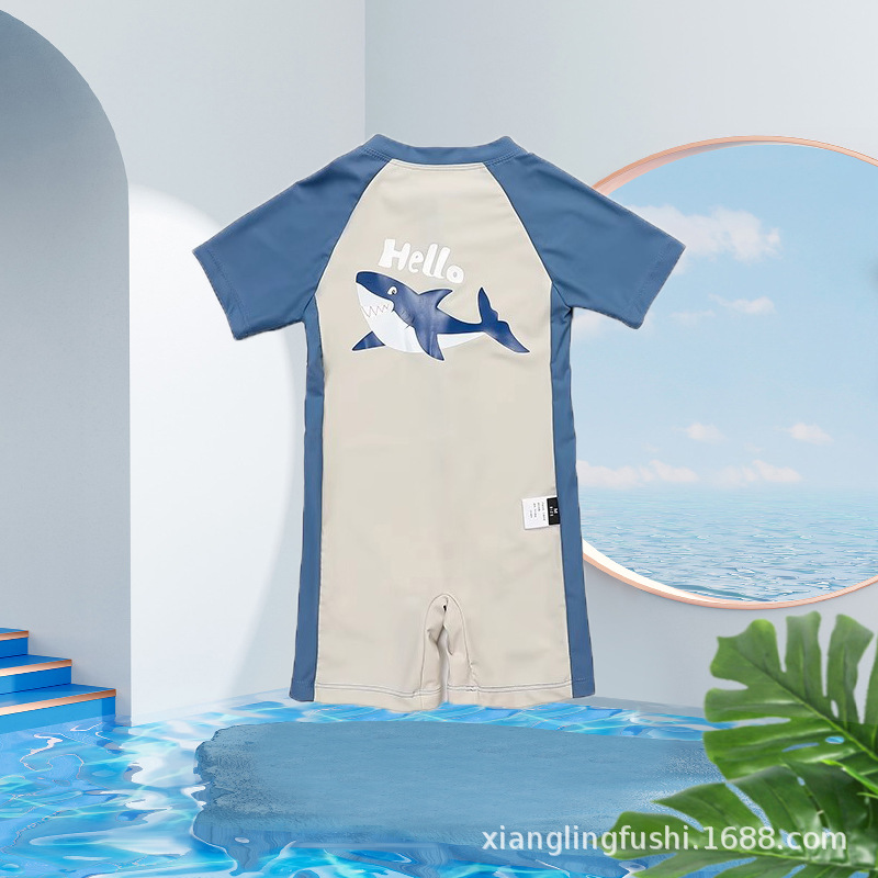 어린이 수영복 원피스 반팔 소년의 여름 귀여운 상어 태양 보호 빠른 건조 어린이 해변 휴가 세트