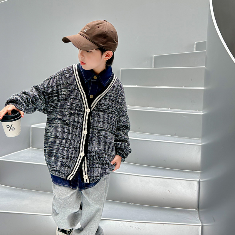 트렌디 브랜드 아동 가디건 스웨터 가을과 겨울 새로운 2023 남아 스웨터 중대형 아동용 니트 코트 봄과 가을스토어 가기