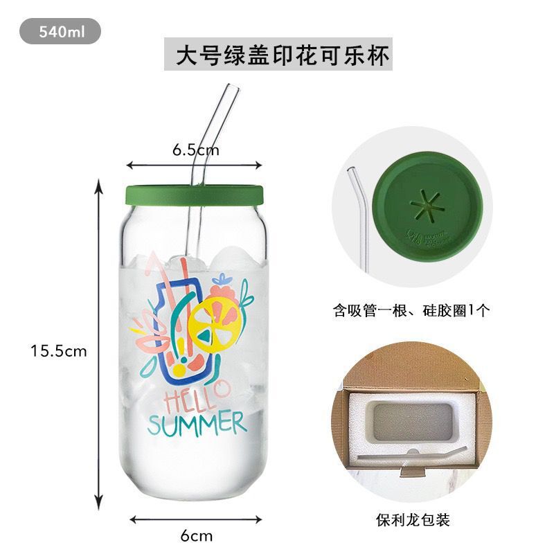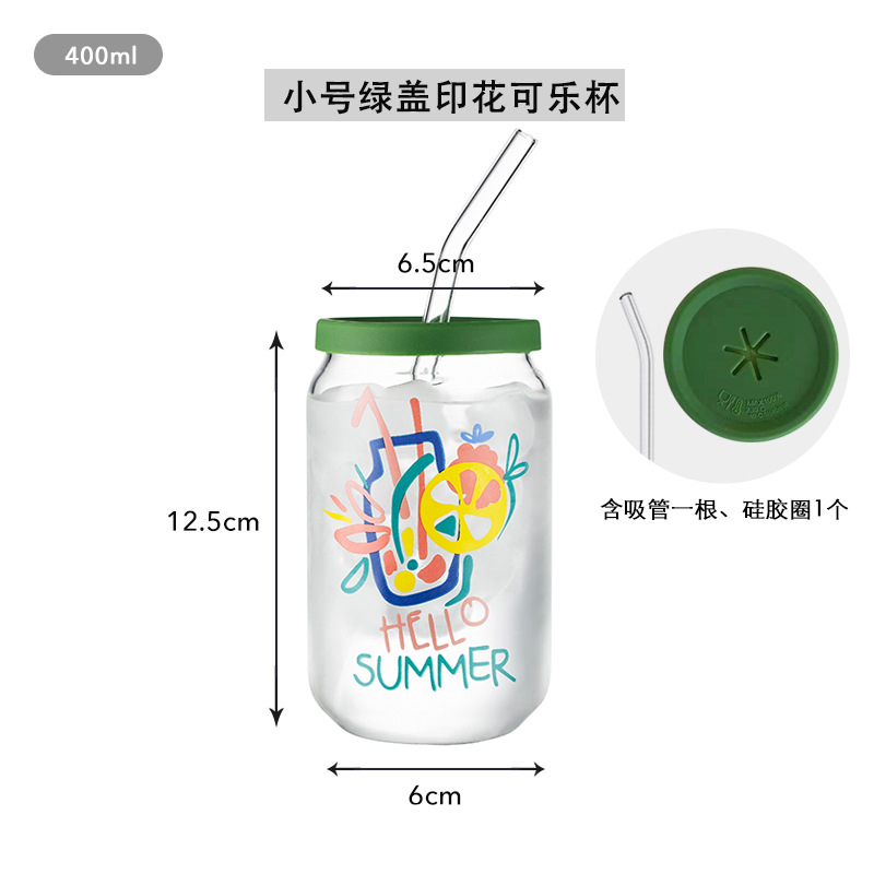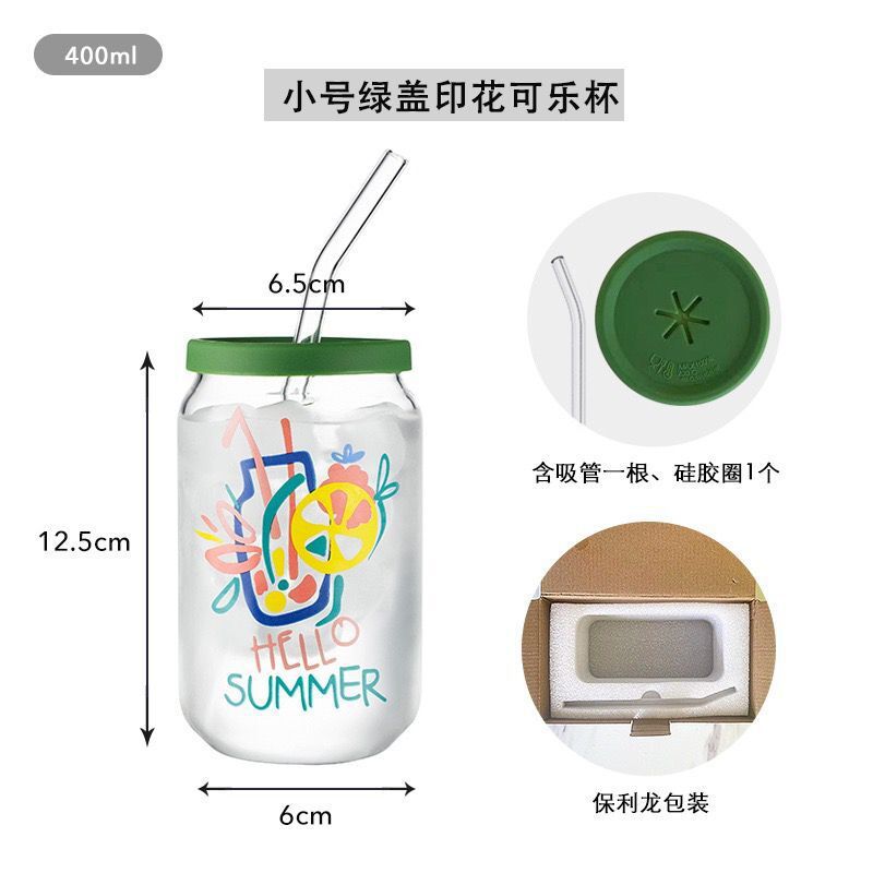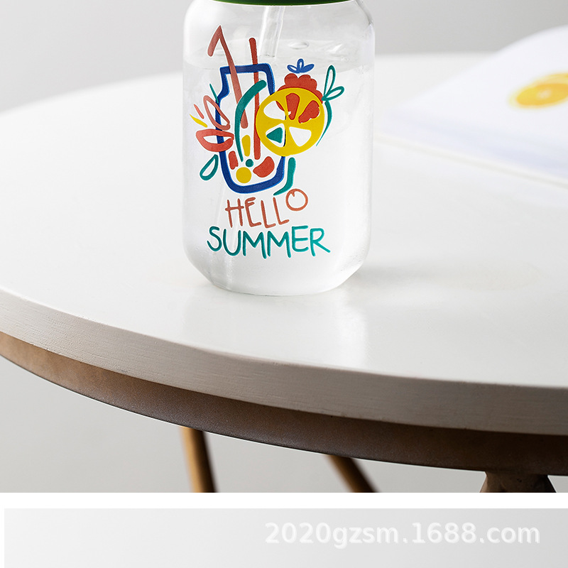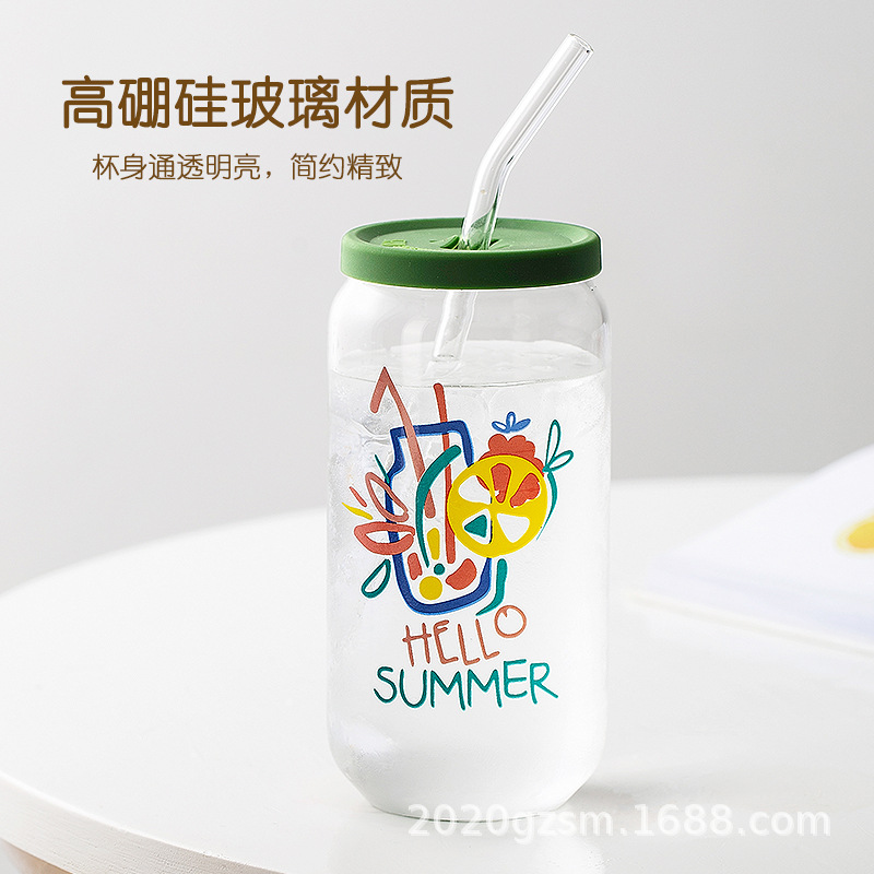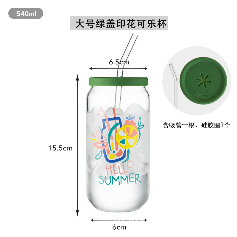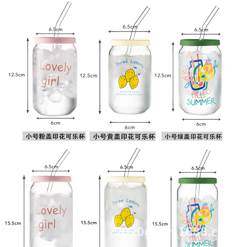 인쇄된 빨대 컵 붕규산 내열 유리 컵 주스 음료 컵 메이슨 컵 커피 컵 인쇄 패턴