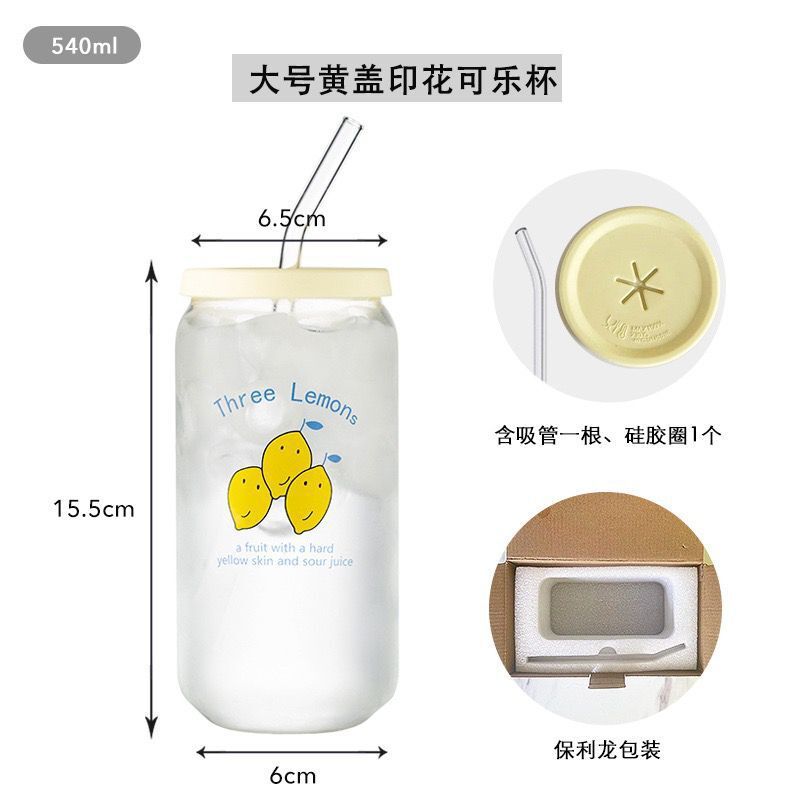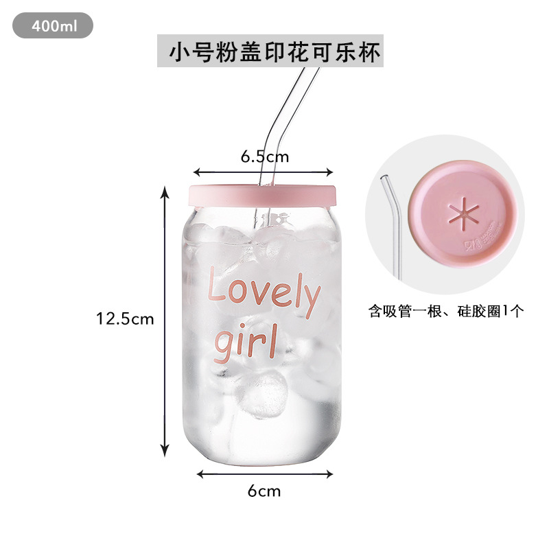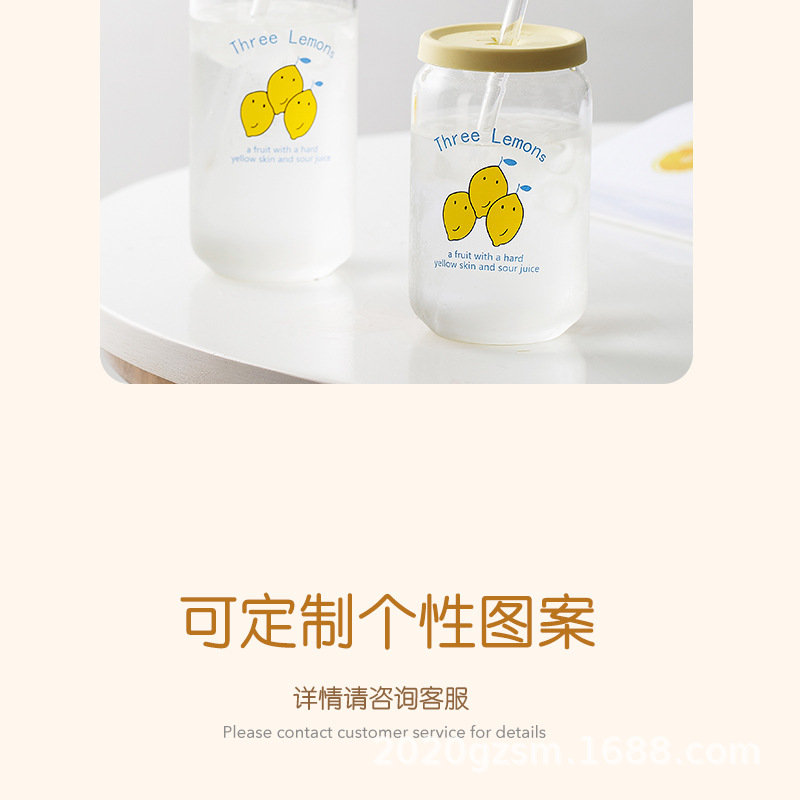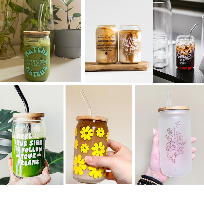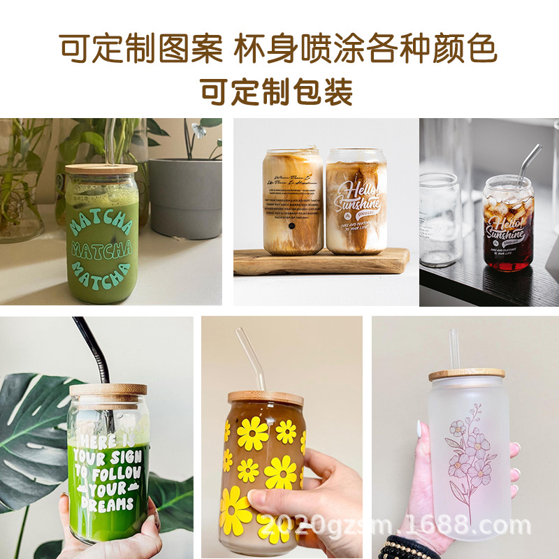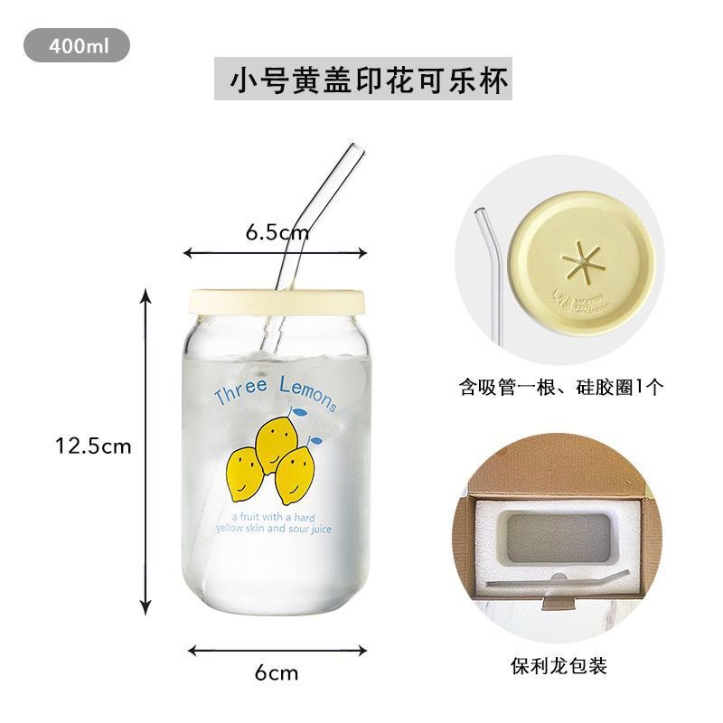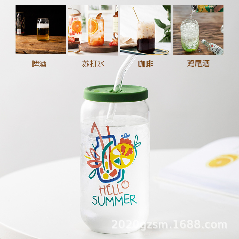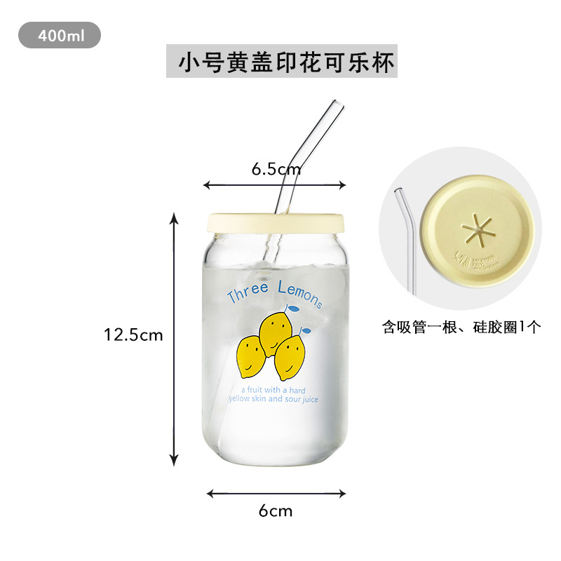 인쇄된 빨대 컵 붕규산 내열 유리 컵 주스 음료 컵 메이슨 컵 커피 컵 인쇄 패턴