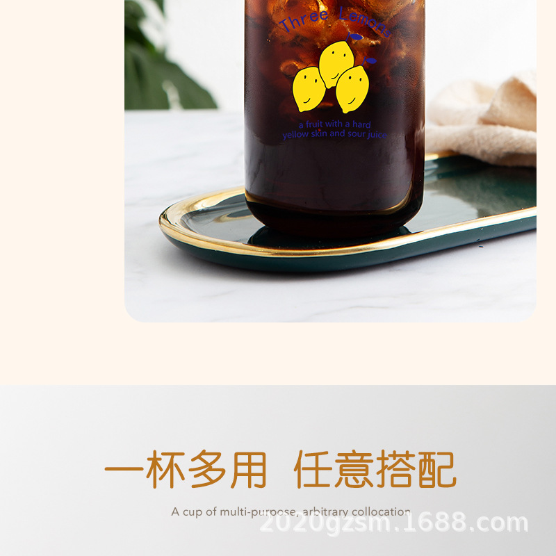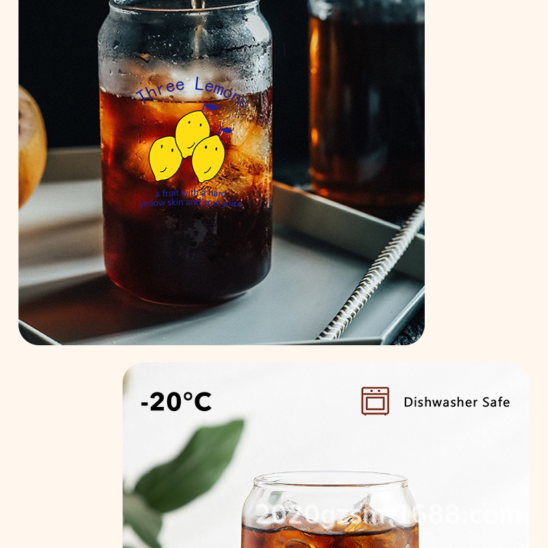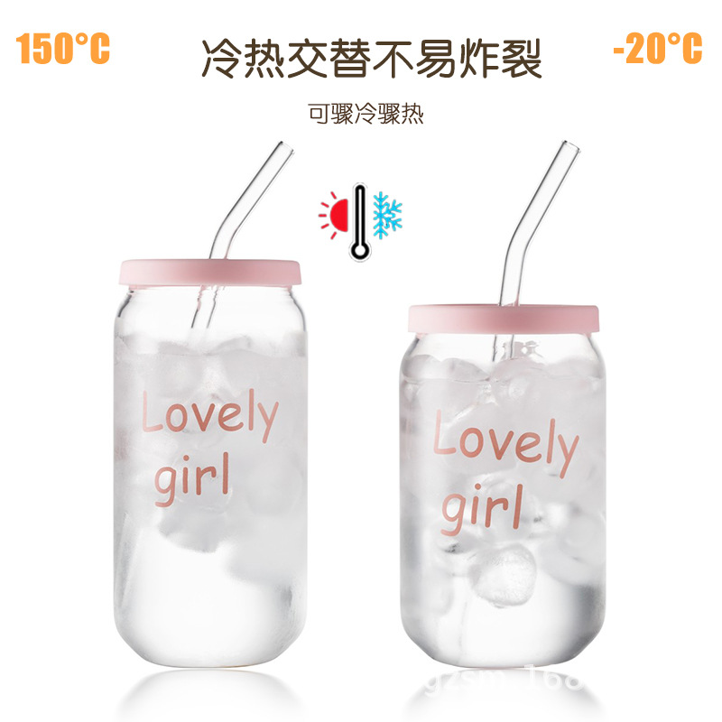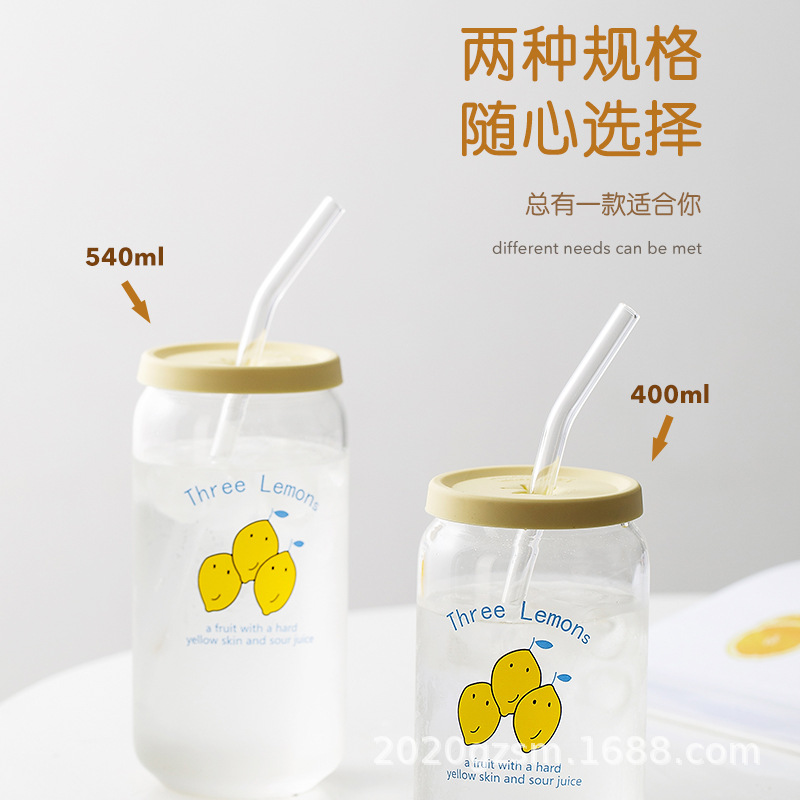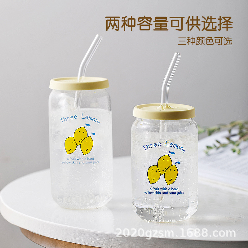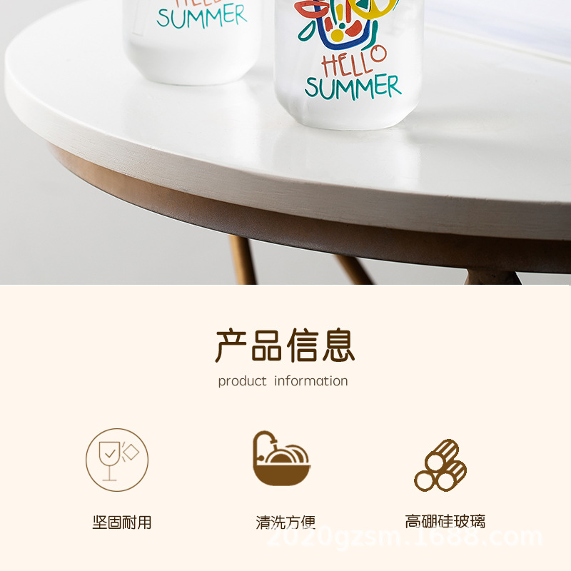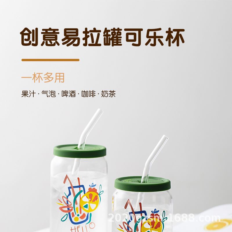 인쇄된 빨대 컵 붕규산 내열 유리 컵 주스 음료 컵 메이슨 컵 커피 컵 인쇄 패턴
