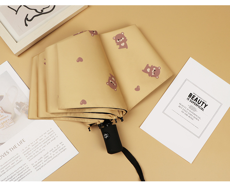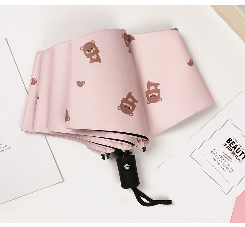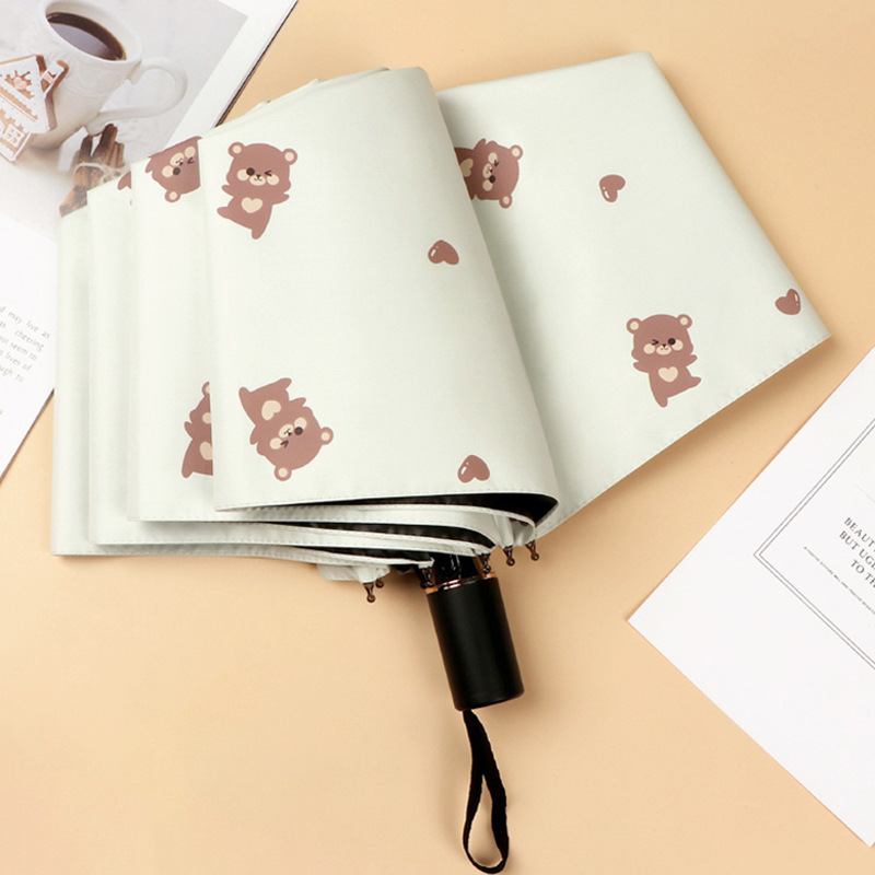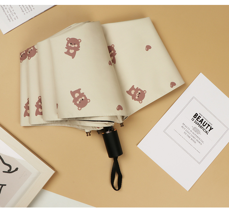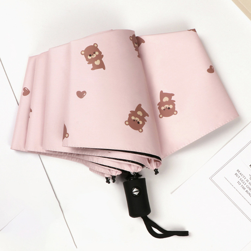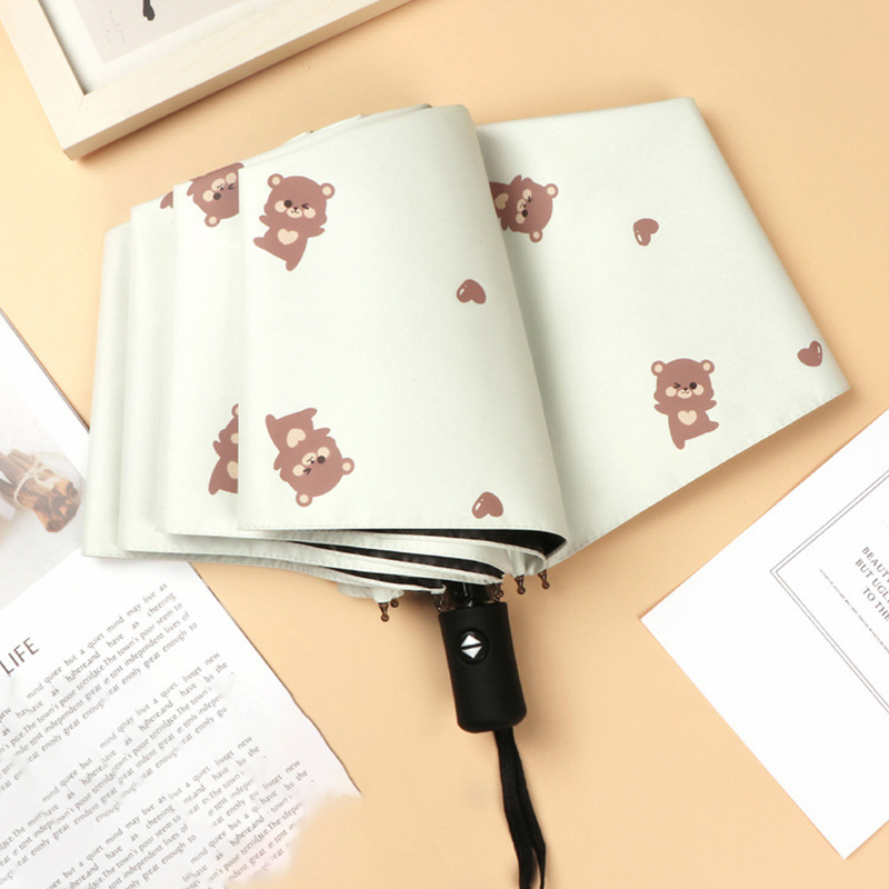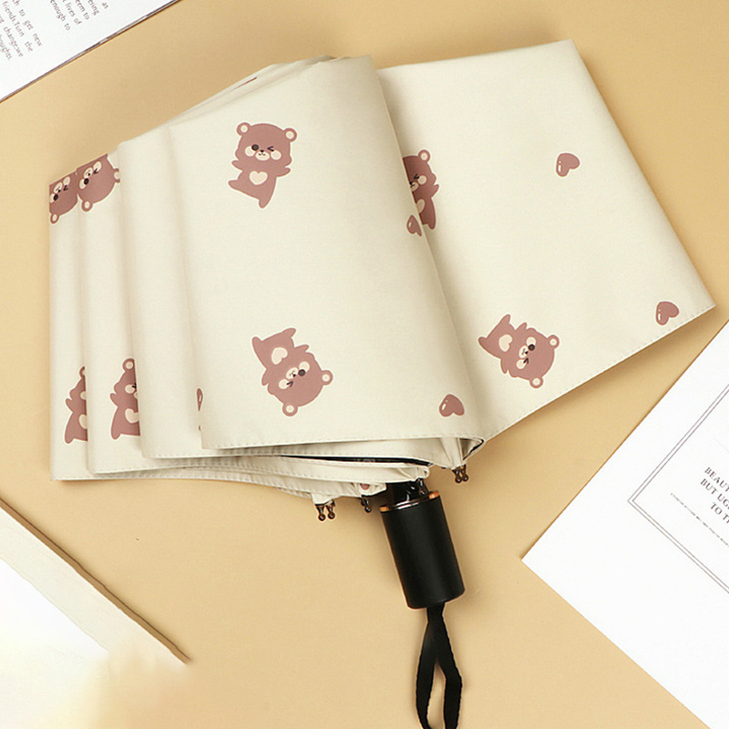 곰 만화 우산 맑은 우산 세 접는 우산 태양 보호 UV 보호 자동 우산 맑고 비 이중 사용 양산 우산스토어 가기