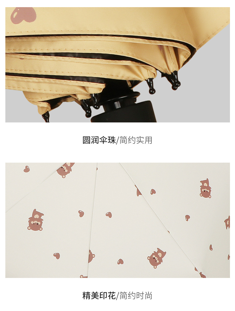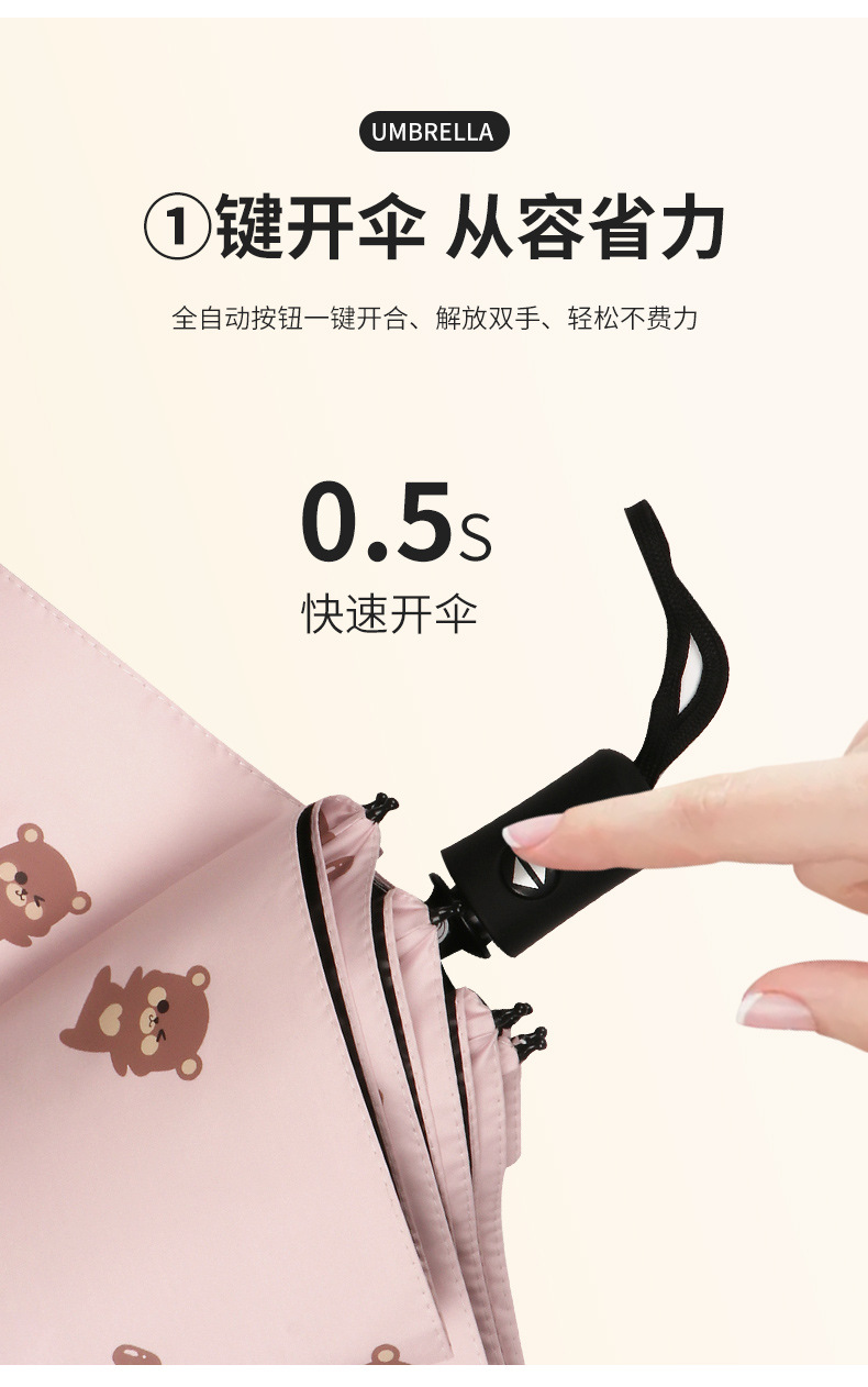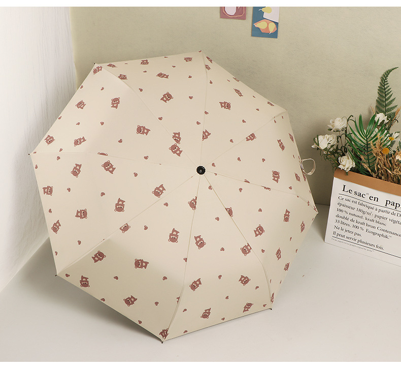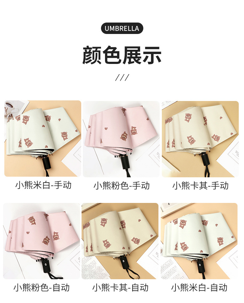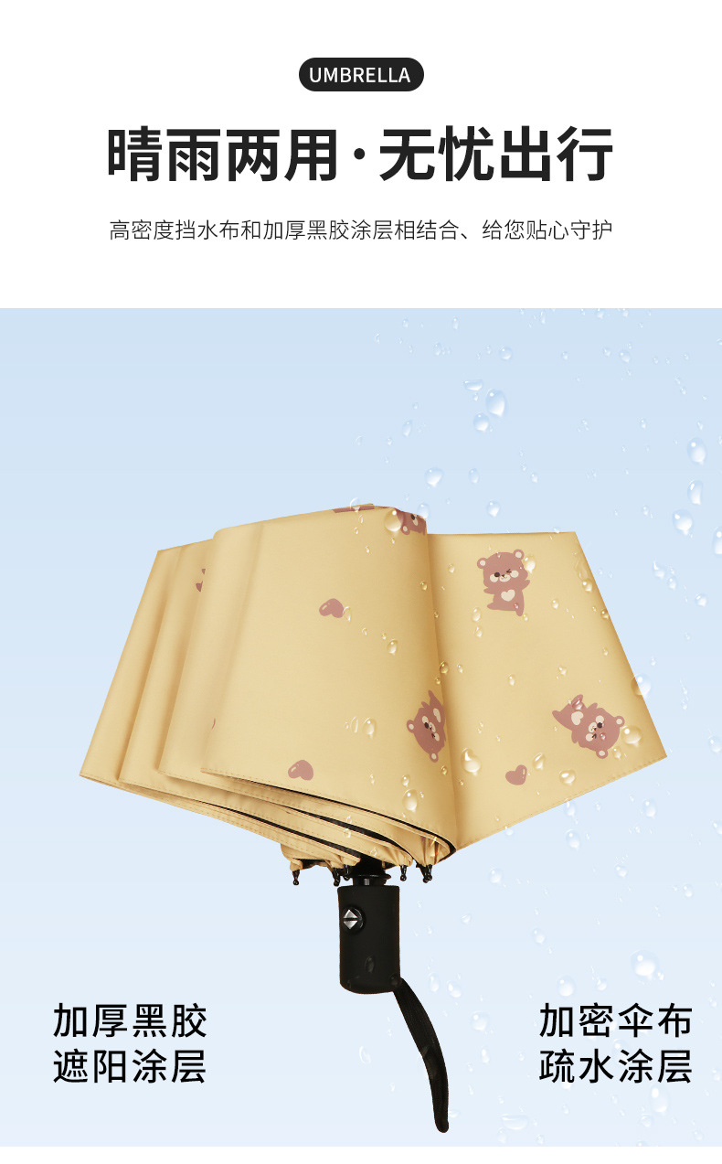 곰 만화 우산 맑은 우산 세 접는 우산 태양 보호 UV 보호 자동 우산 맑고 비 이중 사용 양산 우산스토어 가기