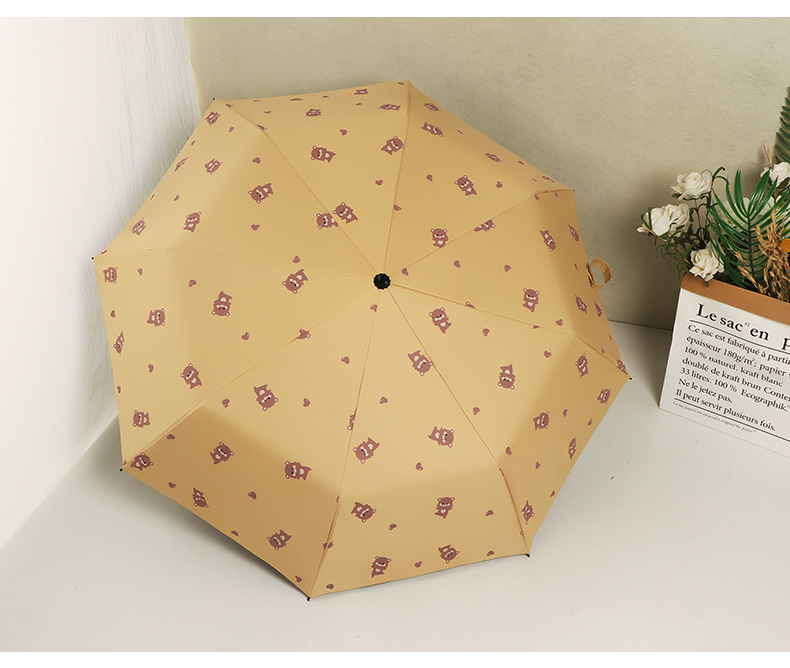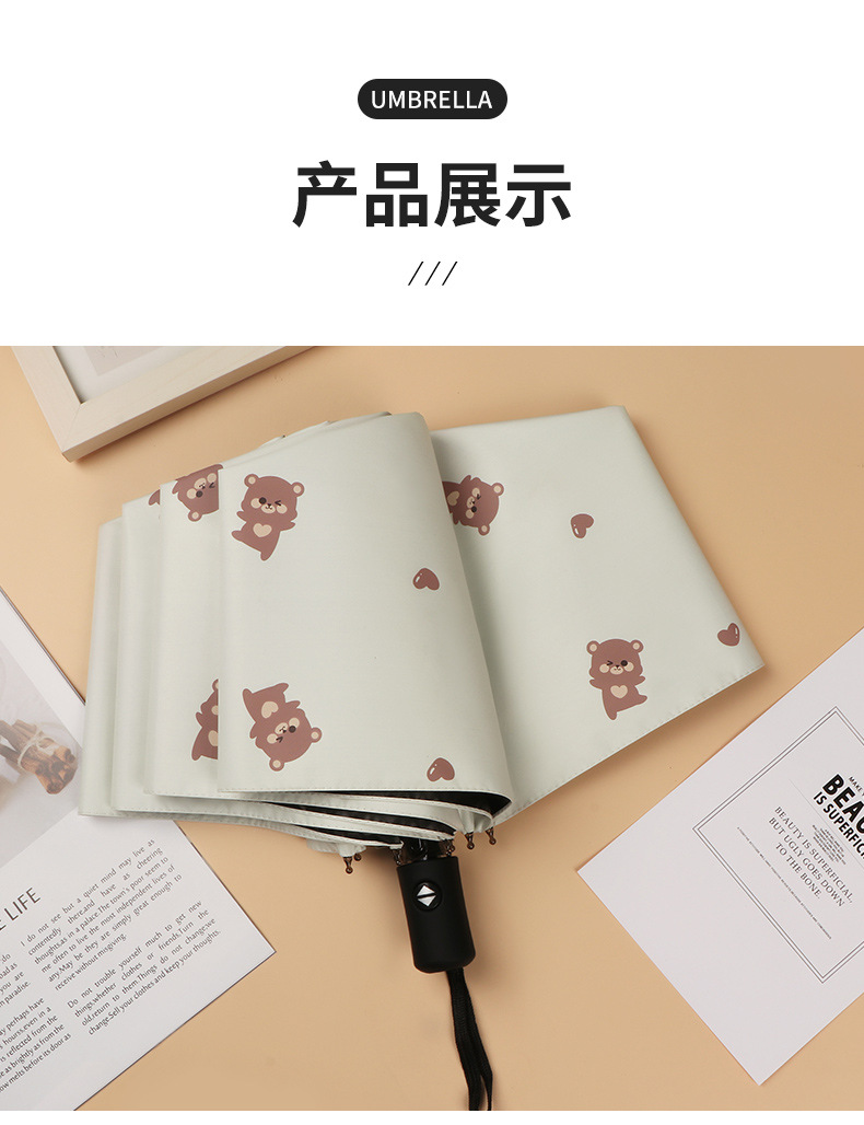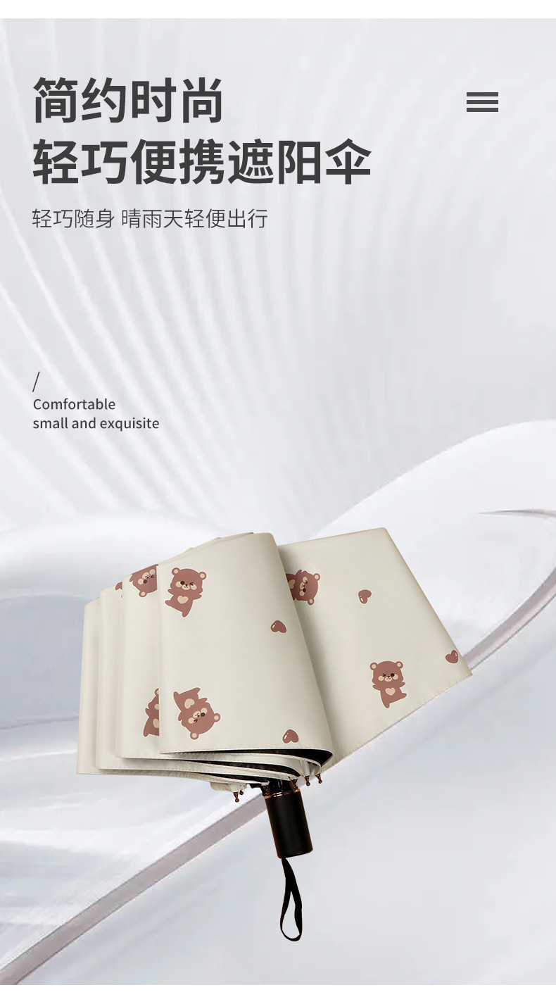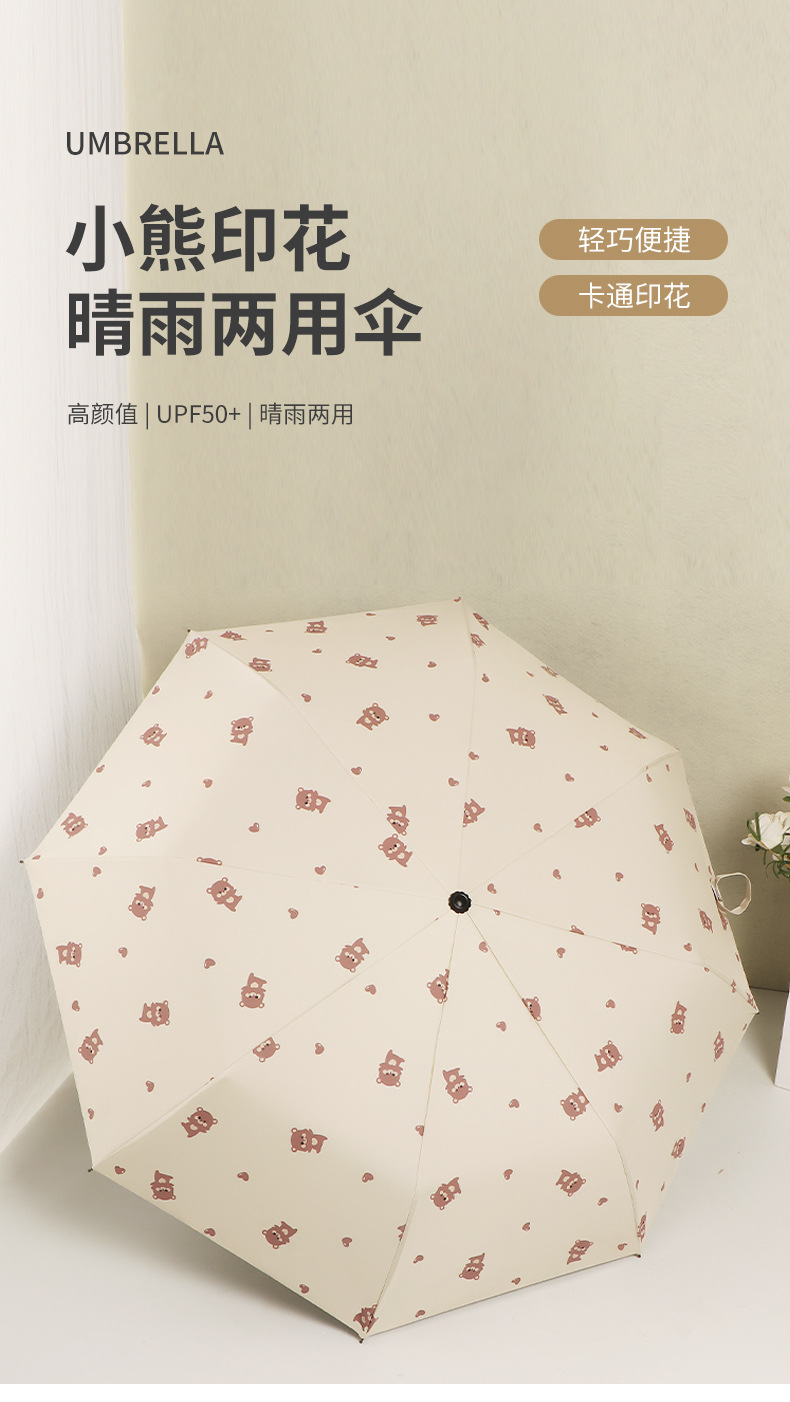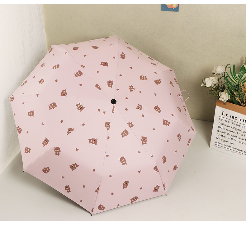 곰 만화 우산 맑은 우산 세 접는 우산 태양 보호 UV 보호 자동 우산 맑고 비 이중 사용 양산 우산스토어 가기