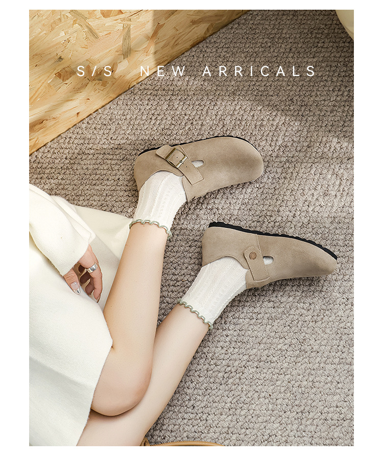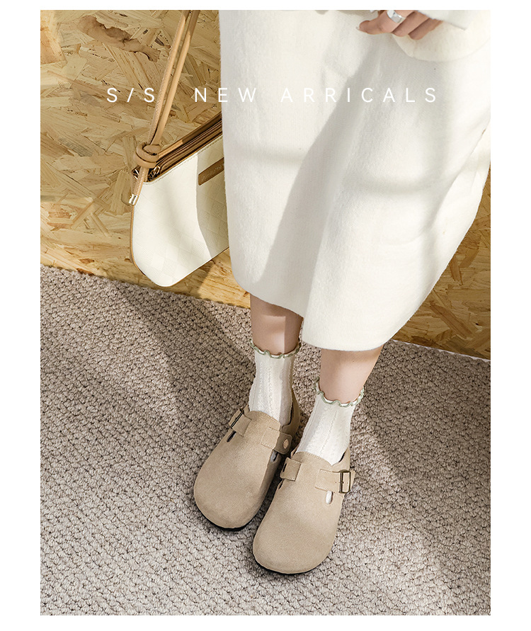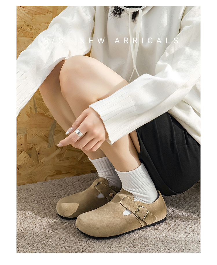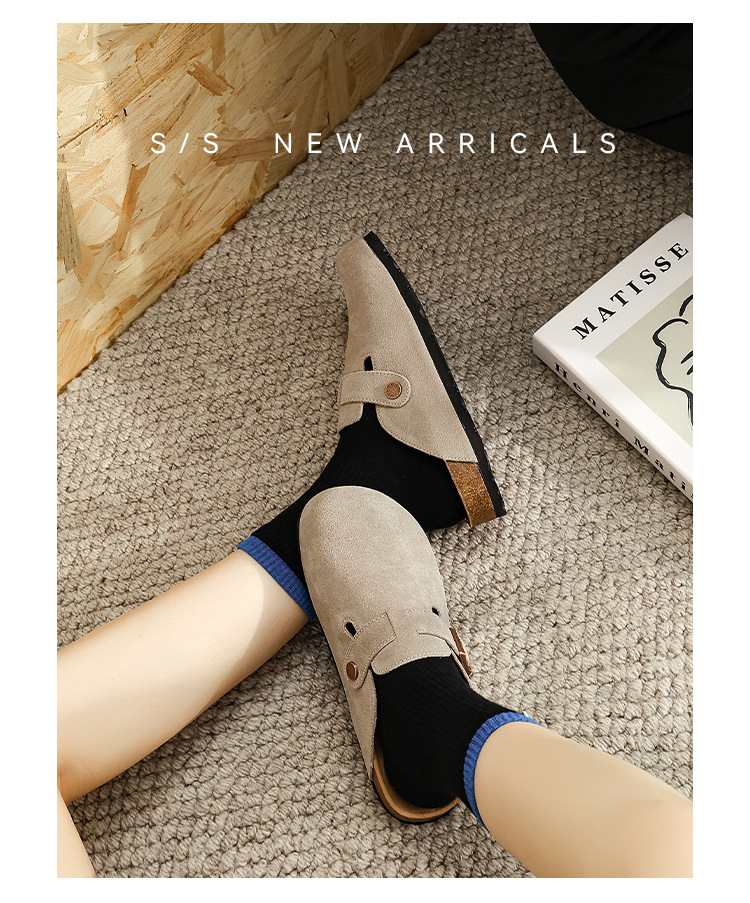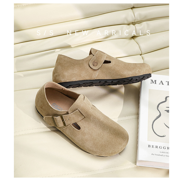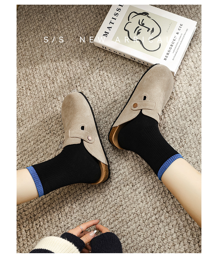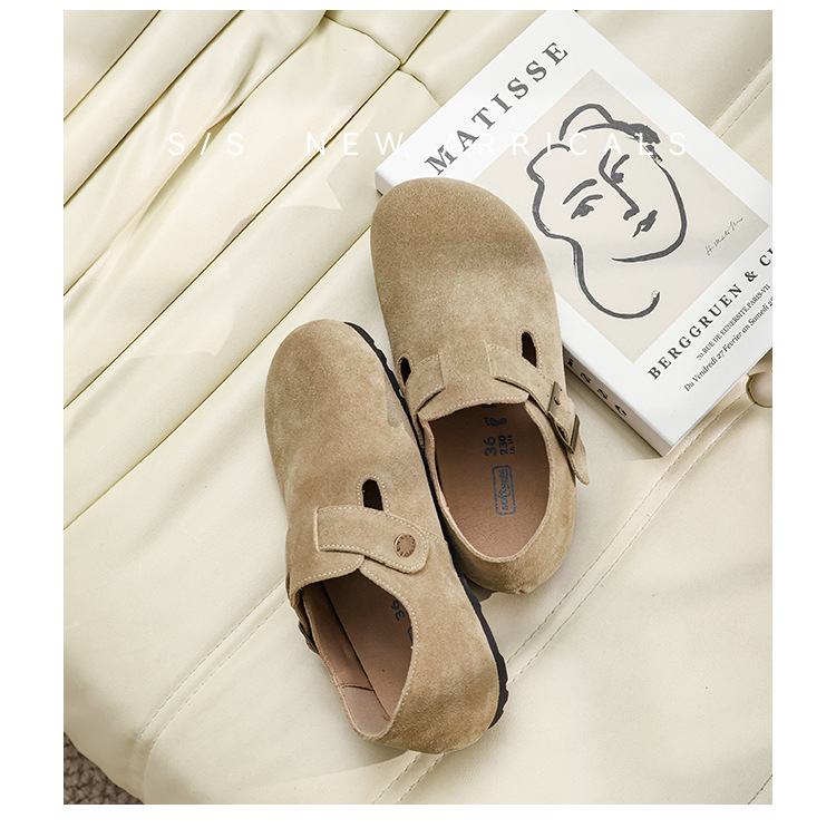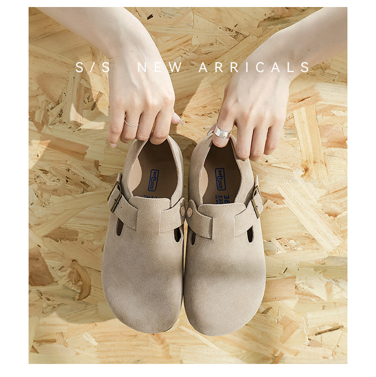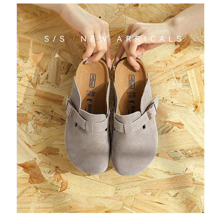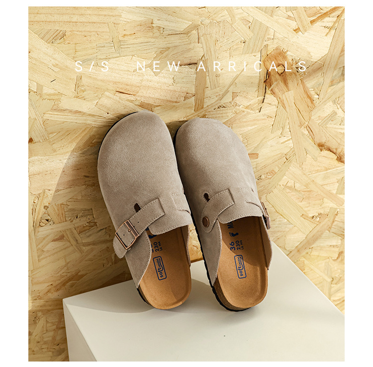 커플의 전체 Cowhide All-Match Vintage Thick-Sole Baotou Burkken 신발 편안한 코르크 단독 슬립 온 여성용 버켄 신발