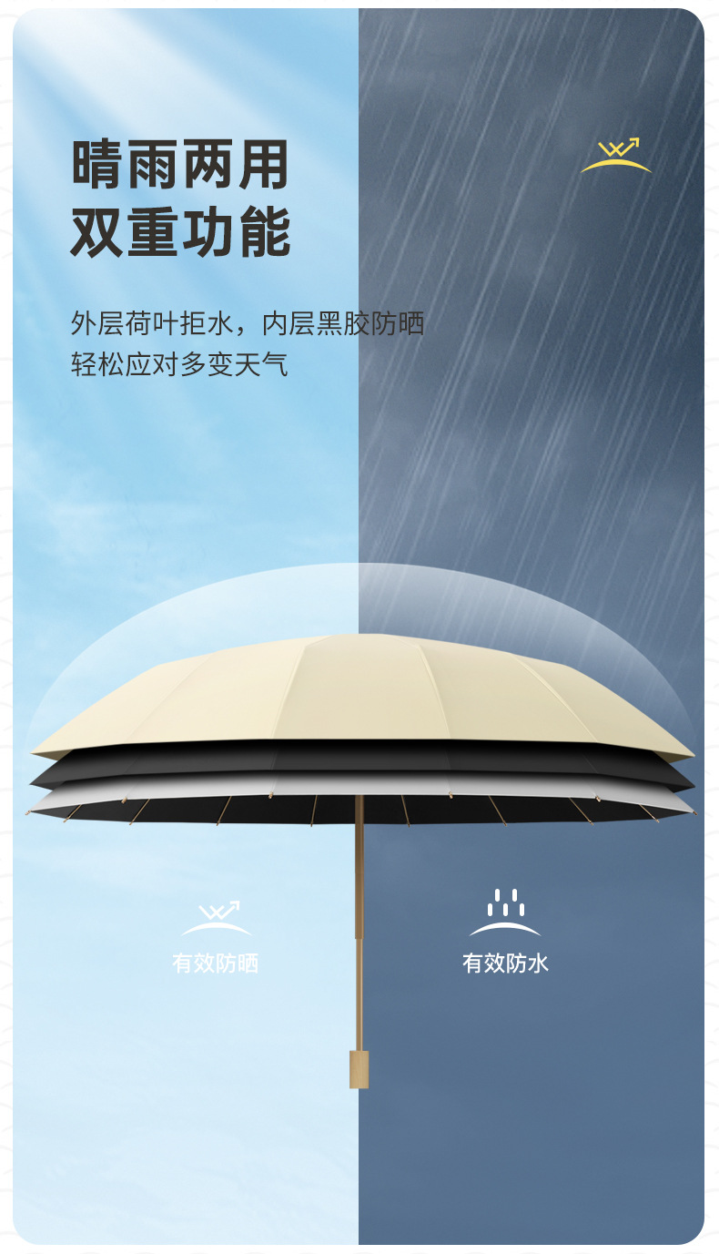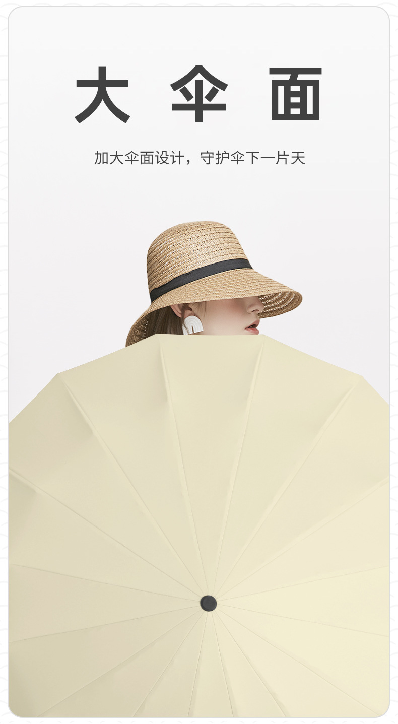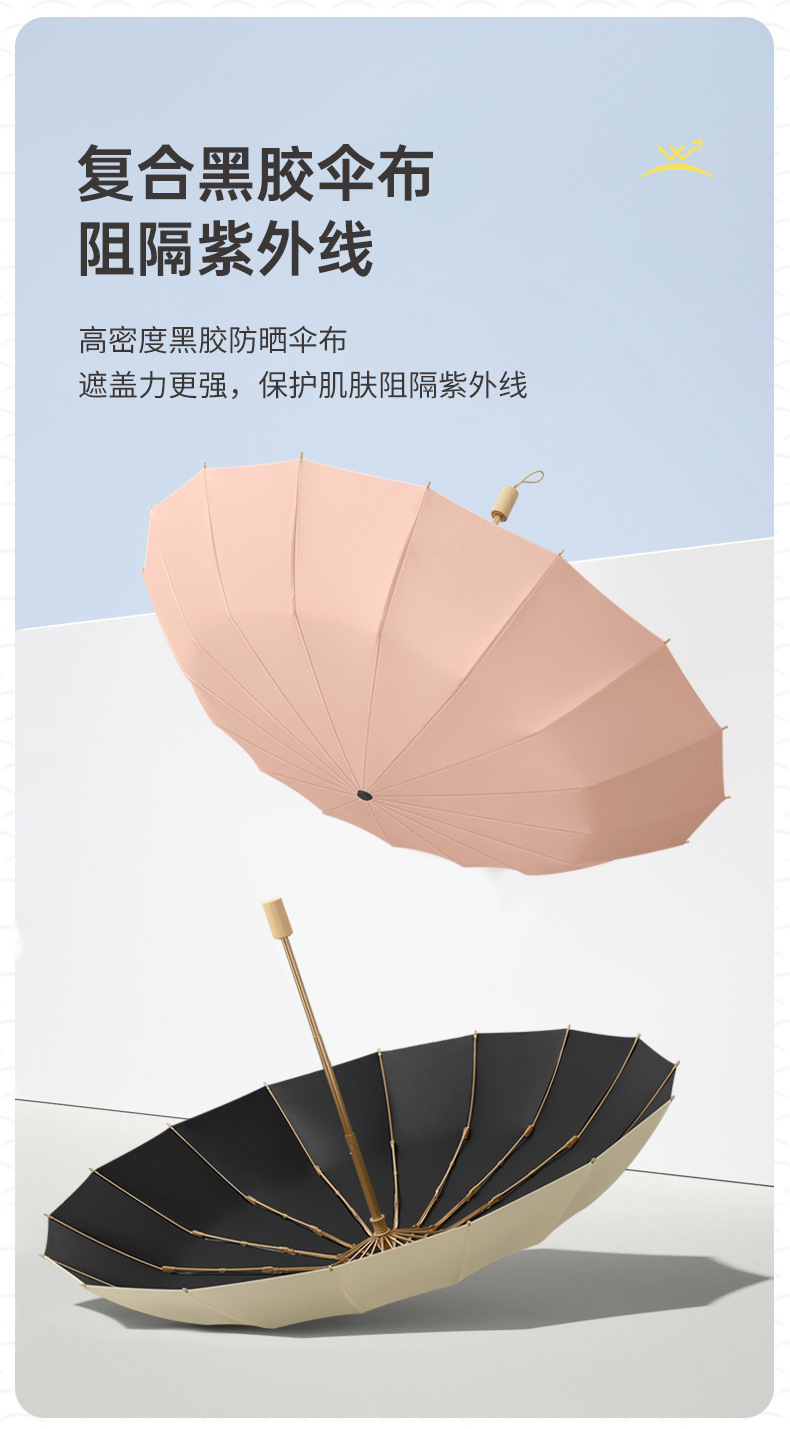 Fino 16-뼈 우산 여성용 맑고 비오는 이중 사용 검정 고무 태양 보호 UV 보호 대형 방풍 접는 태양 우산