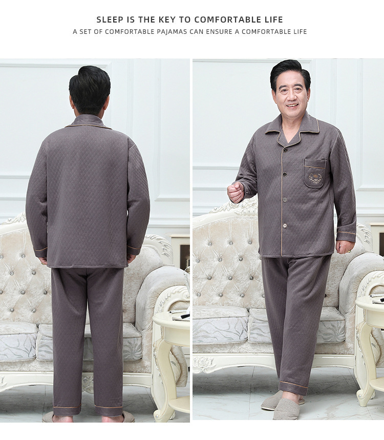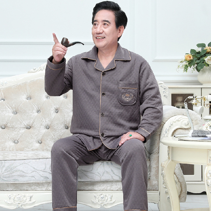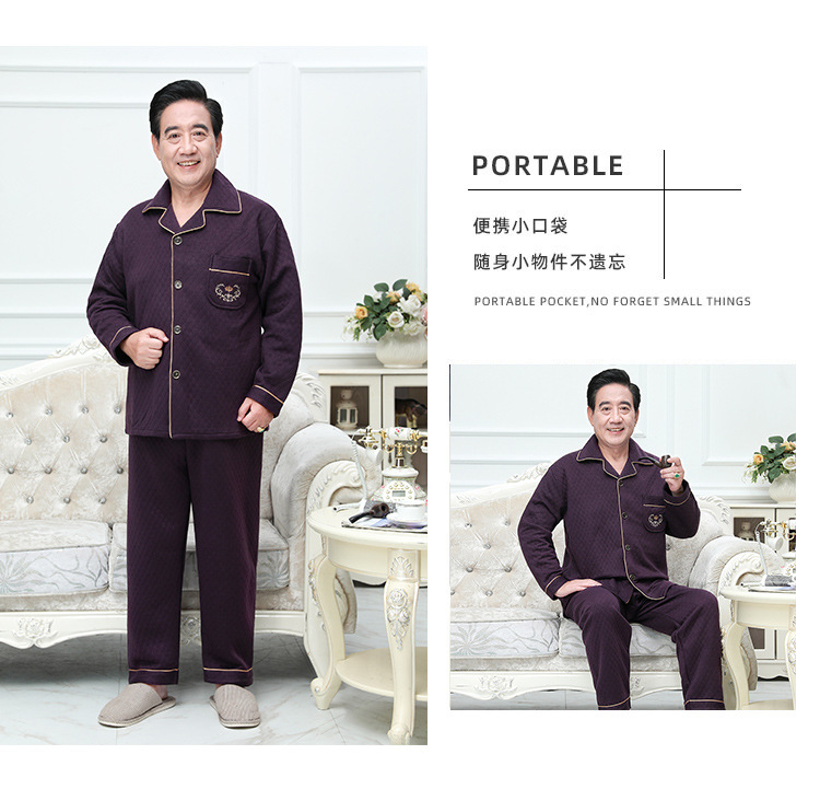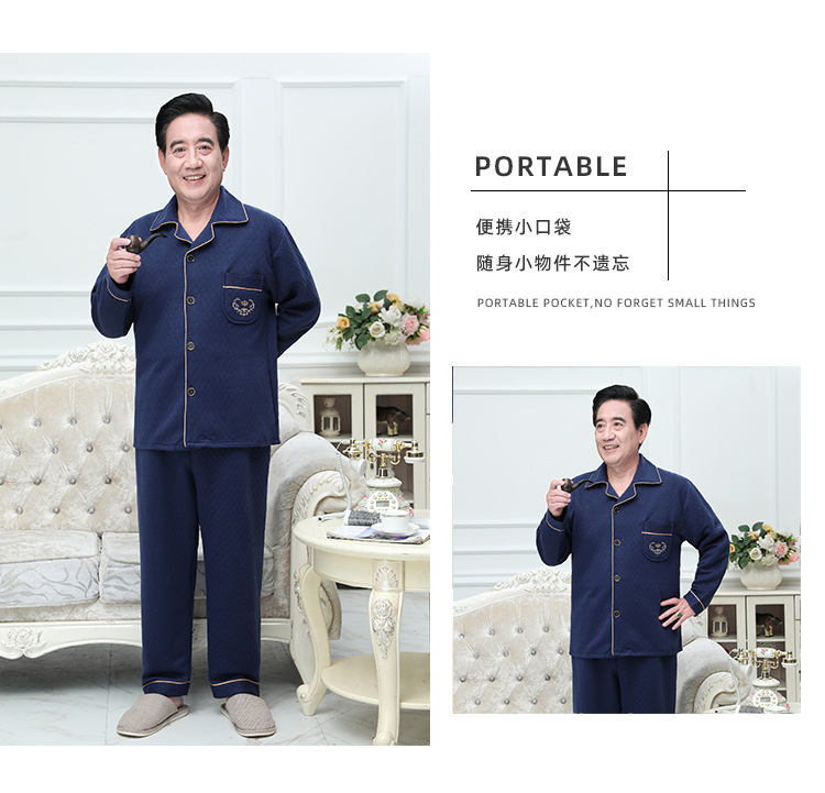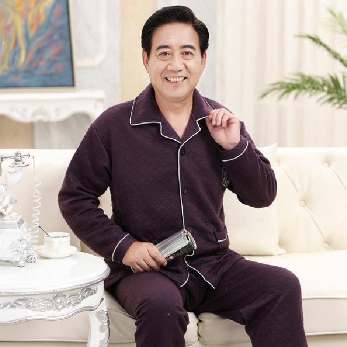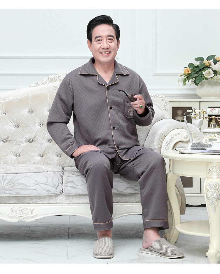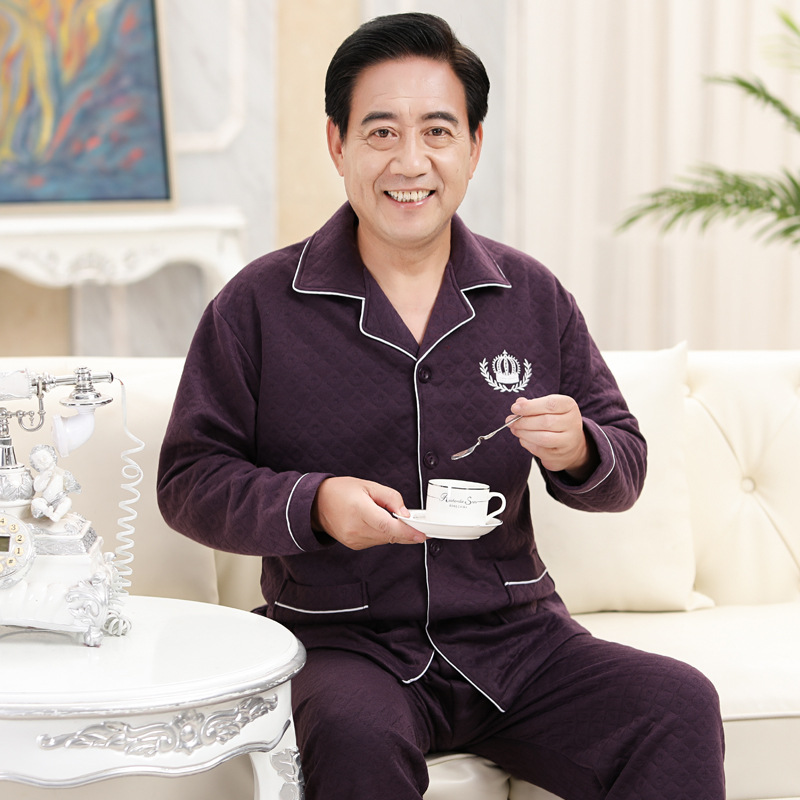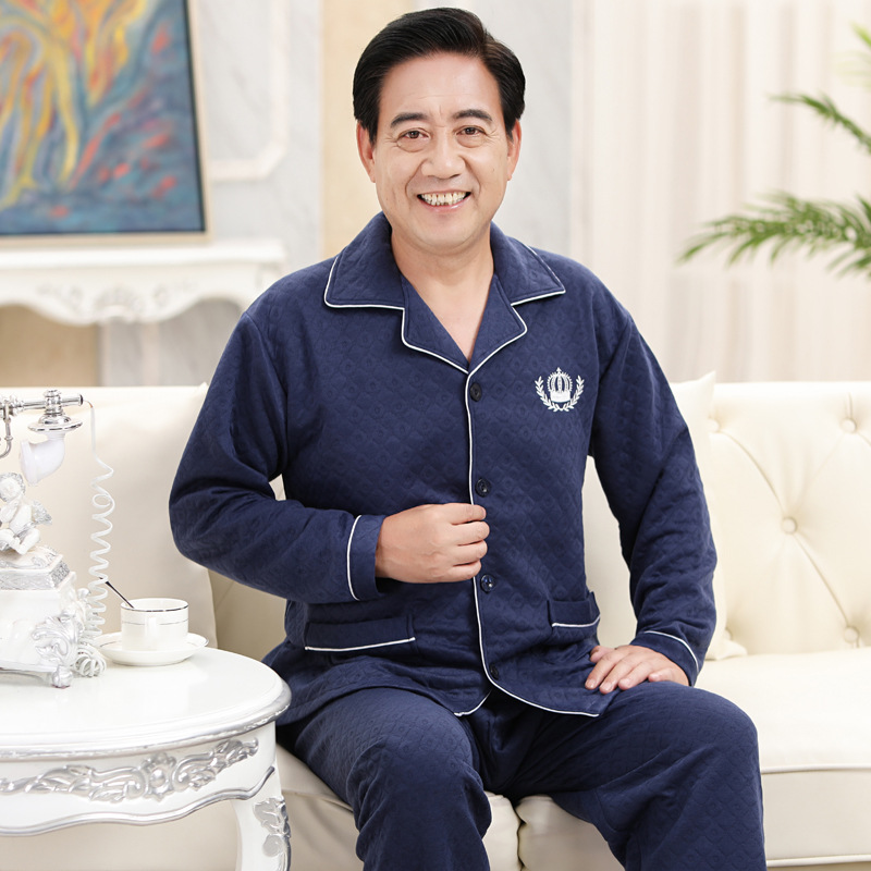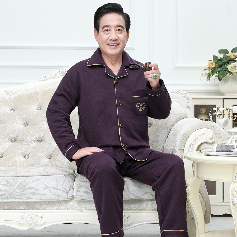 가을과 겨울 잠옷 남성용 두꺼운 샌드위치 에어 코튼 긴팔 중년 및 노인 아빠 캐주얼 따뜻한 면 퀼트 가정복