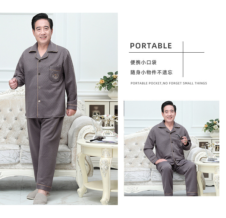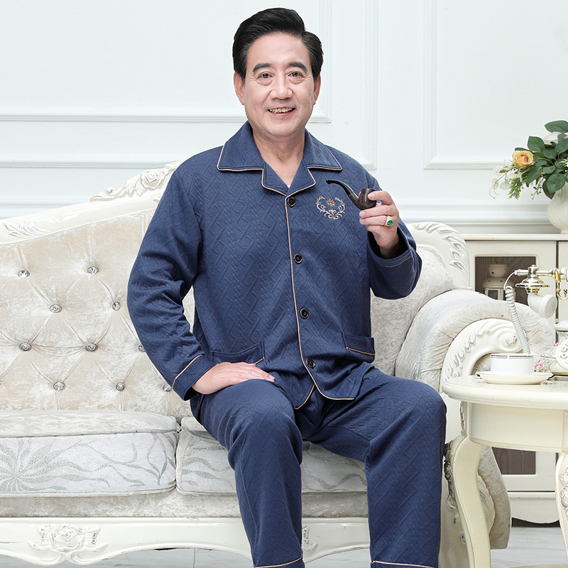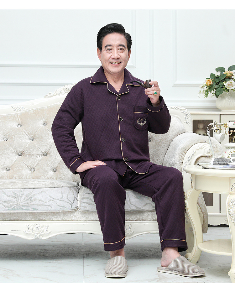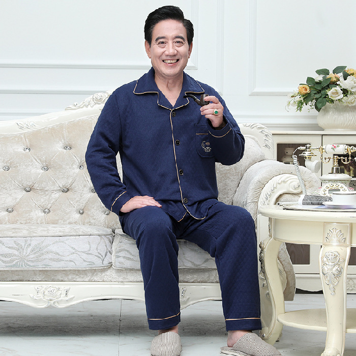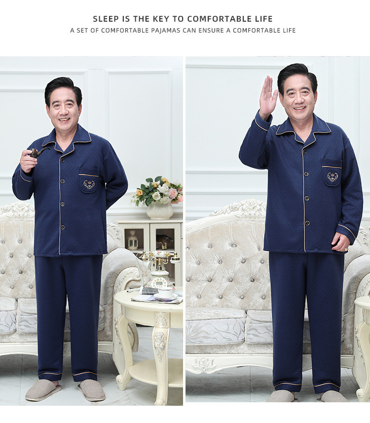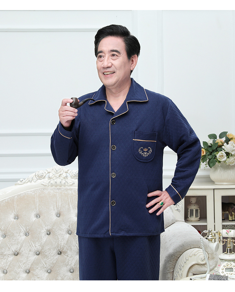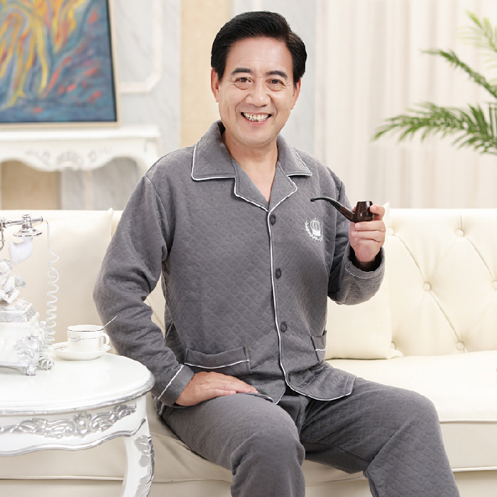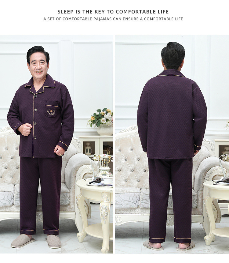 가을과 겨울 잠옷 남성용 두꺼운 샌드위치 에어 코튼 긴팔 중년 및 노인 아빠 캐주얼 따뜻한 면 퀼트 가정복