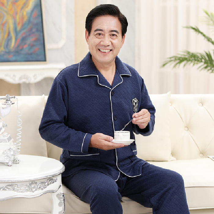 가을과 겨울 잠옷 남성용 두꺼운 샌드위치 에어 코튼 긴팔 중년 및 노인 아빠 캐주얼 따뜻한 면 퀼트 가정복스토어 가기