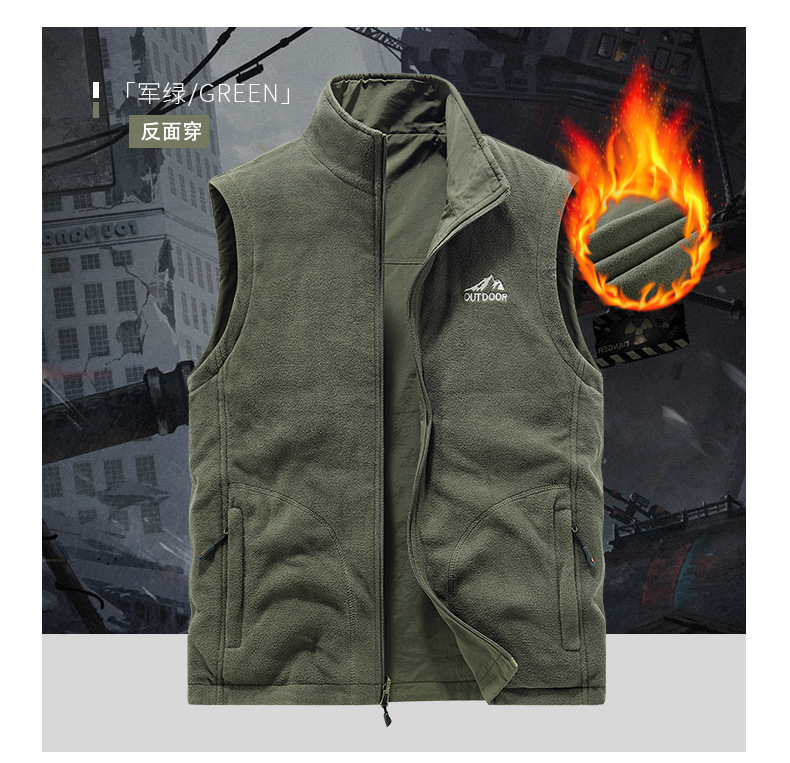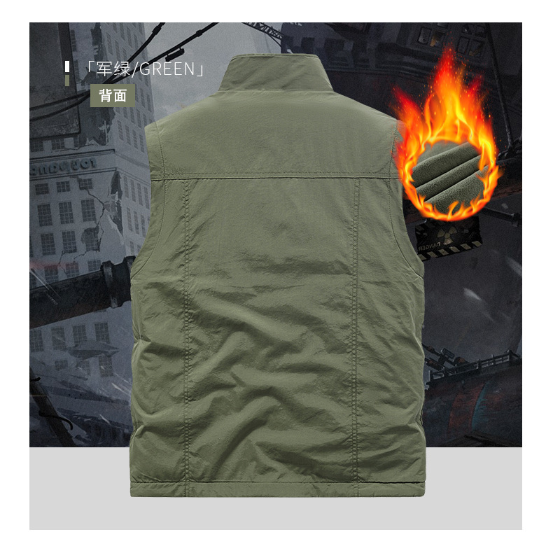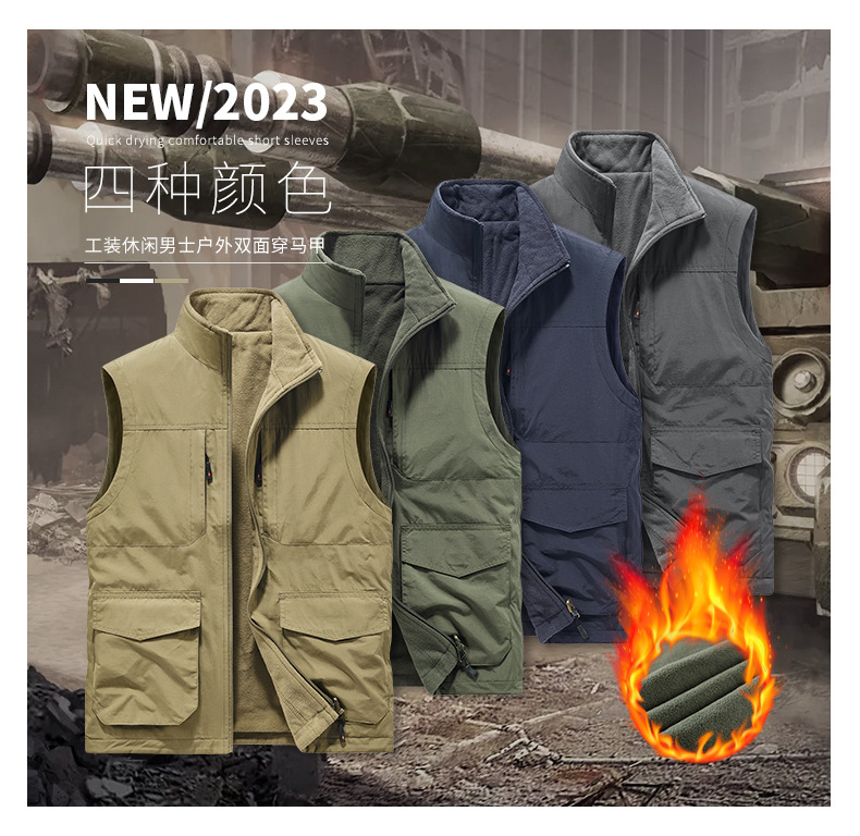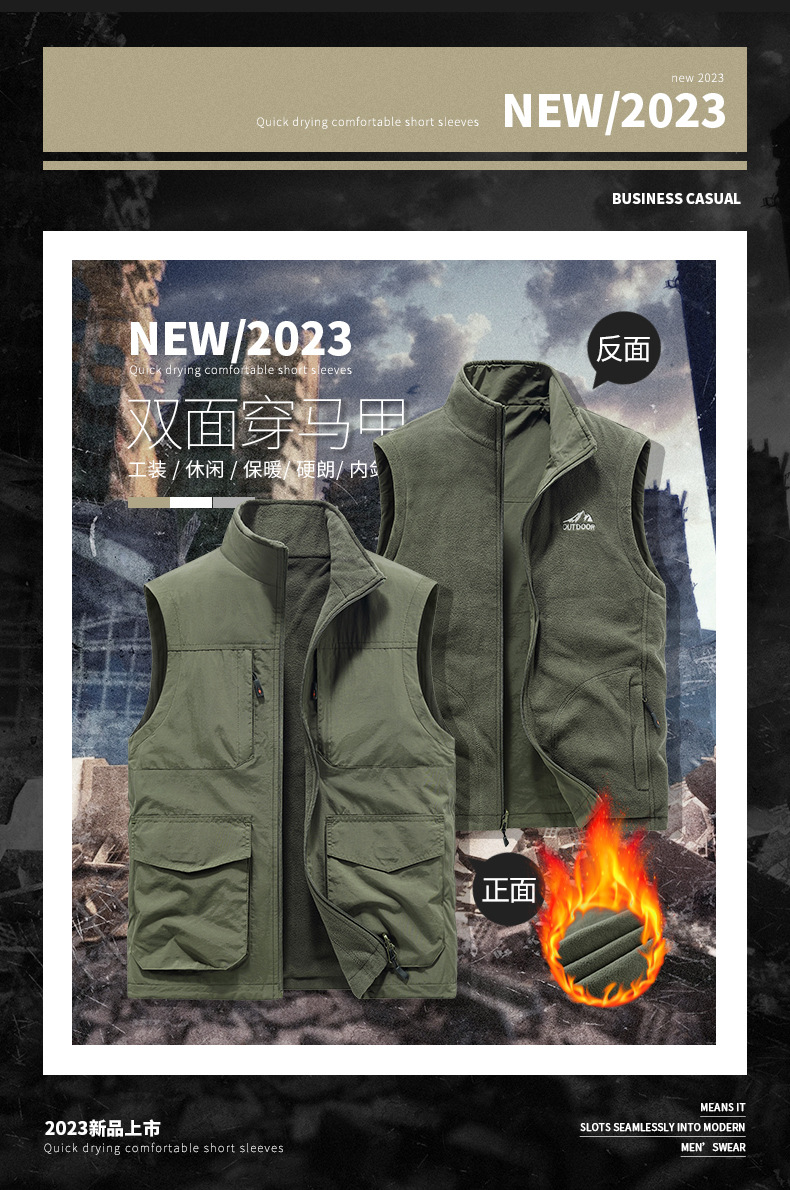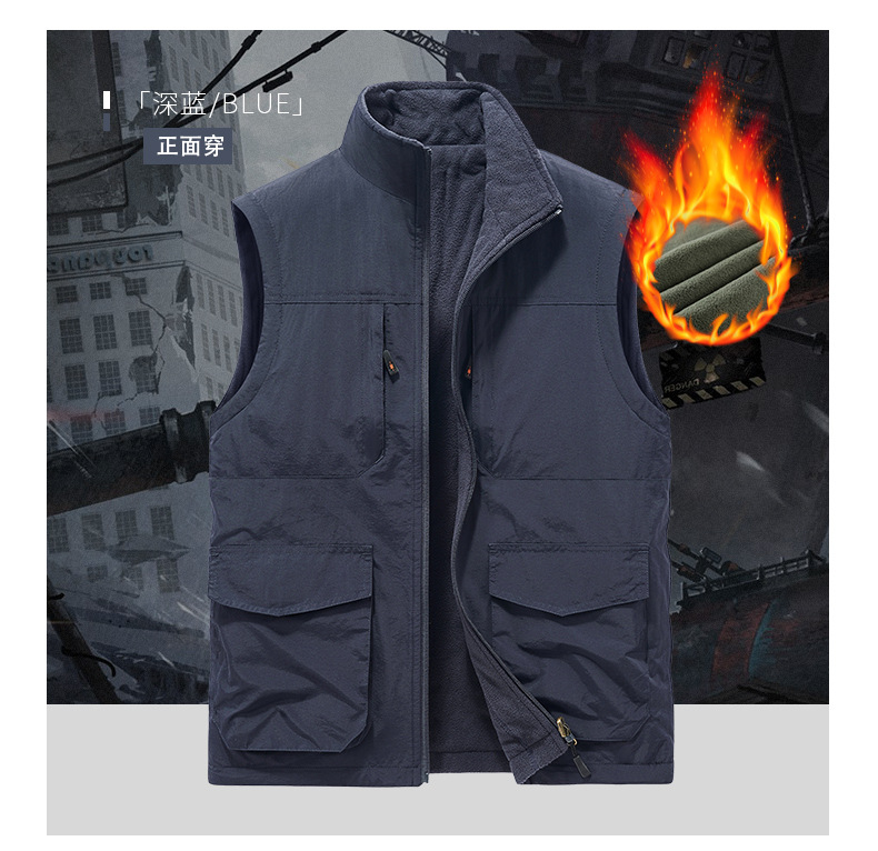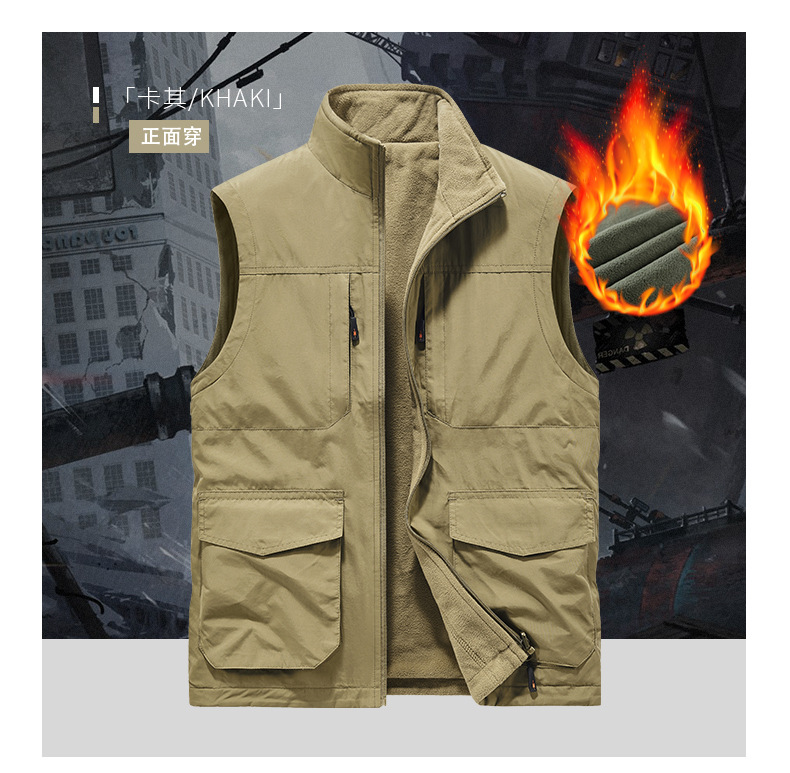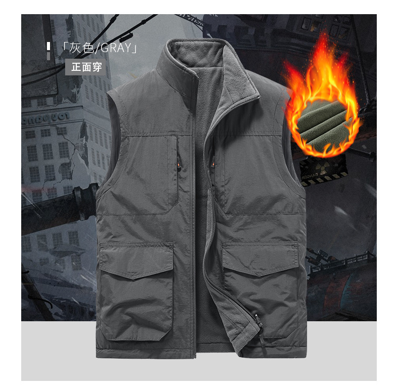 [양면착용] 남성 조끼 가을과 겨울 새로운 기모 조끼 플러스 사이즈 캐주얼 멀티 포켓 허리띠 재킷