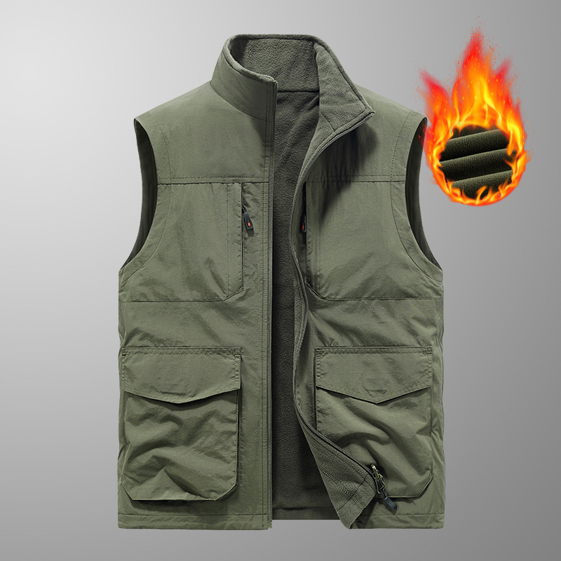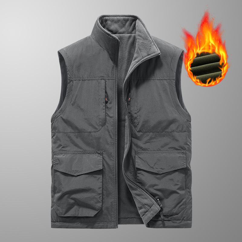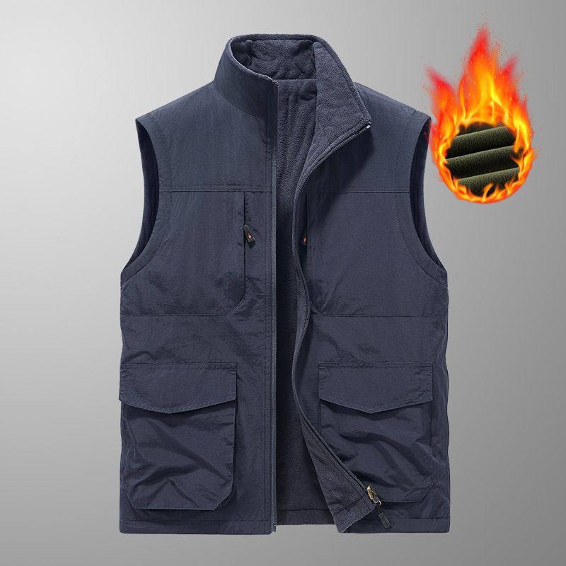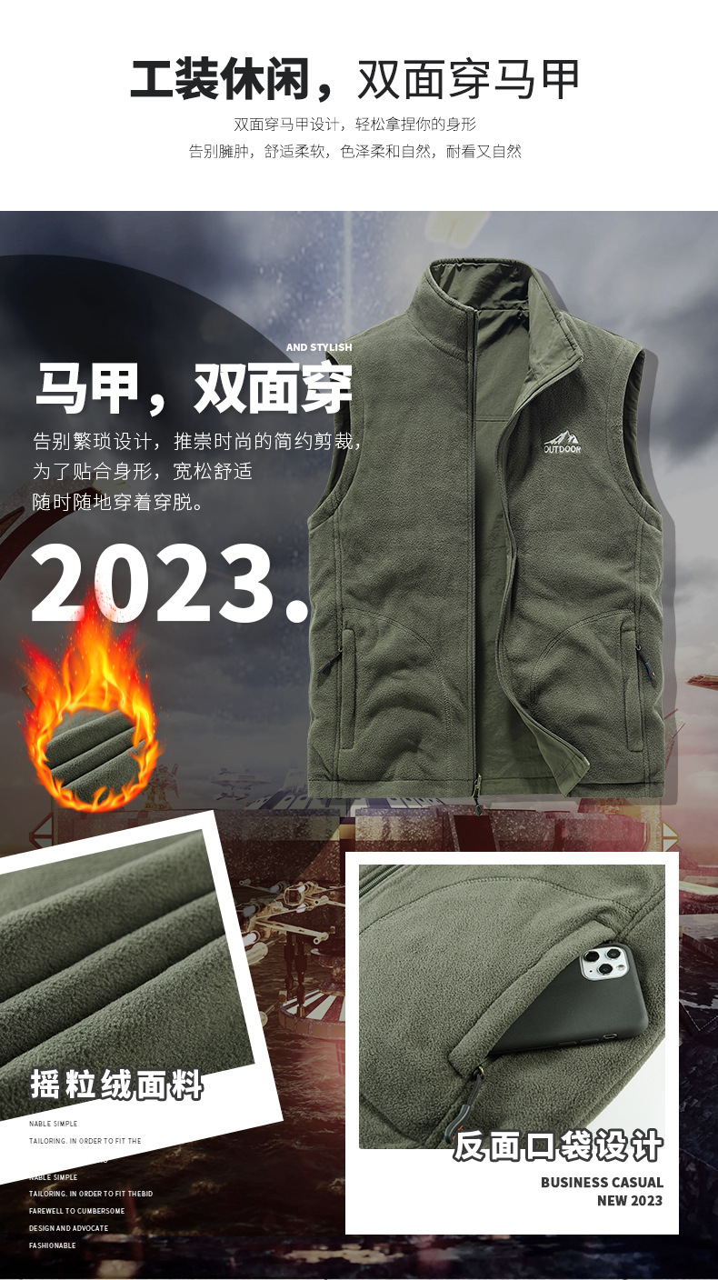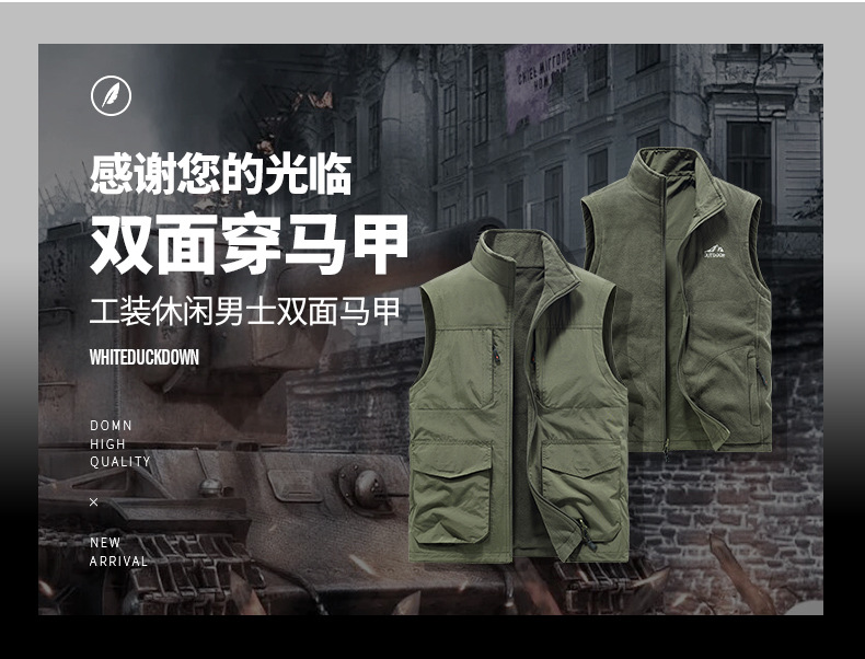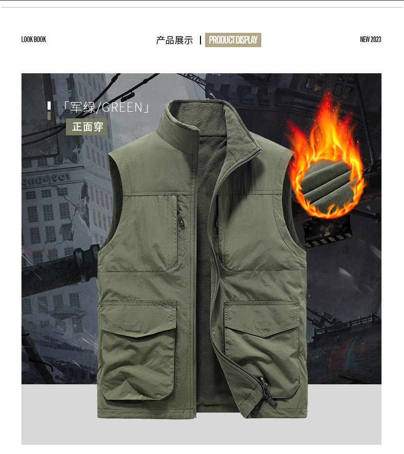 [양면착용] 남성 조끼 가을과 겨울 새로운 기모 조끼 플러스 사이즈 캐주얼 멀티 포켓 허리띠 재킷