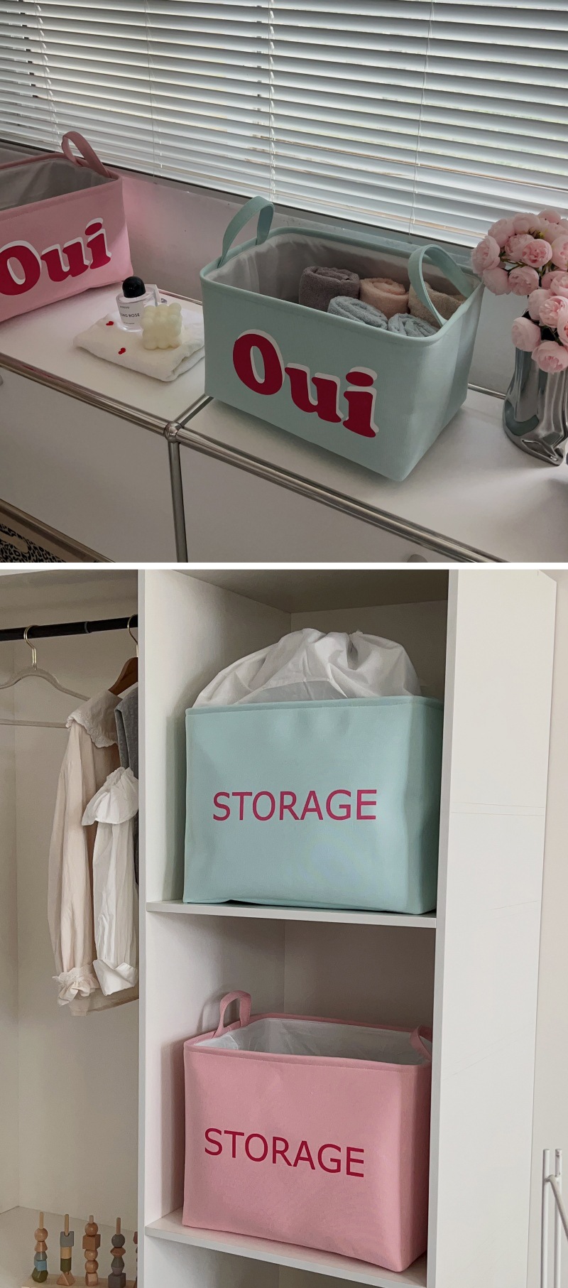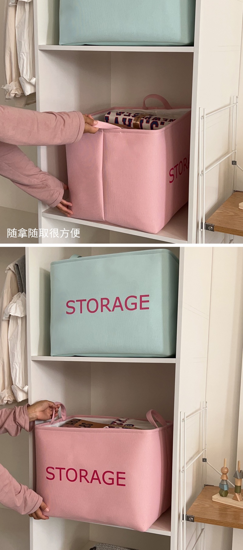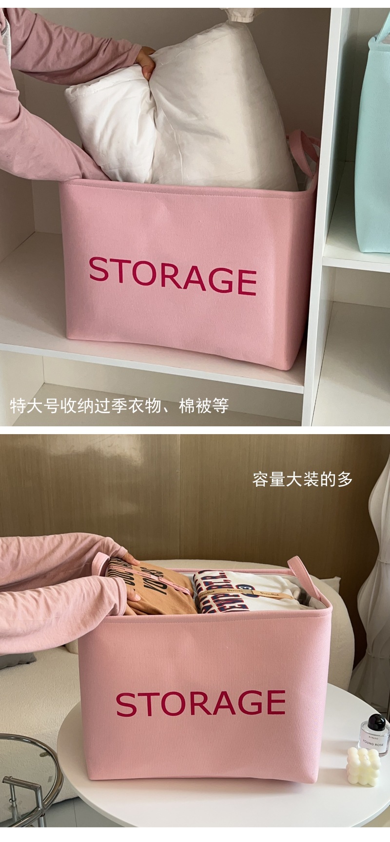 캔디 컬러 옷 보관함 가정용 패브릭 옷장 옷 보관 바구니 마감 상자 이불 보관 이동 가방스토어 가기