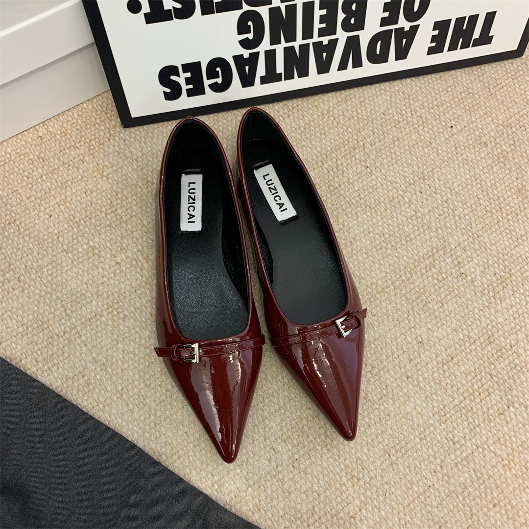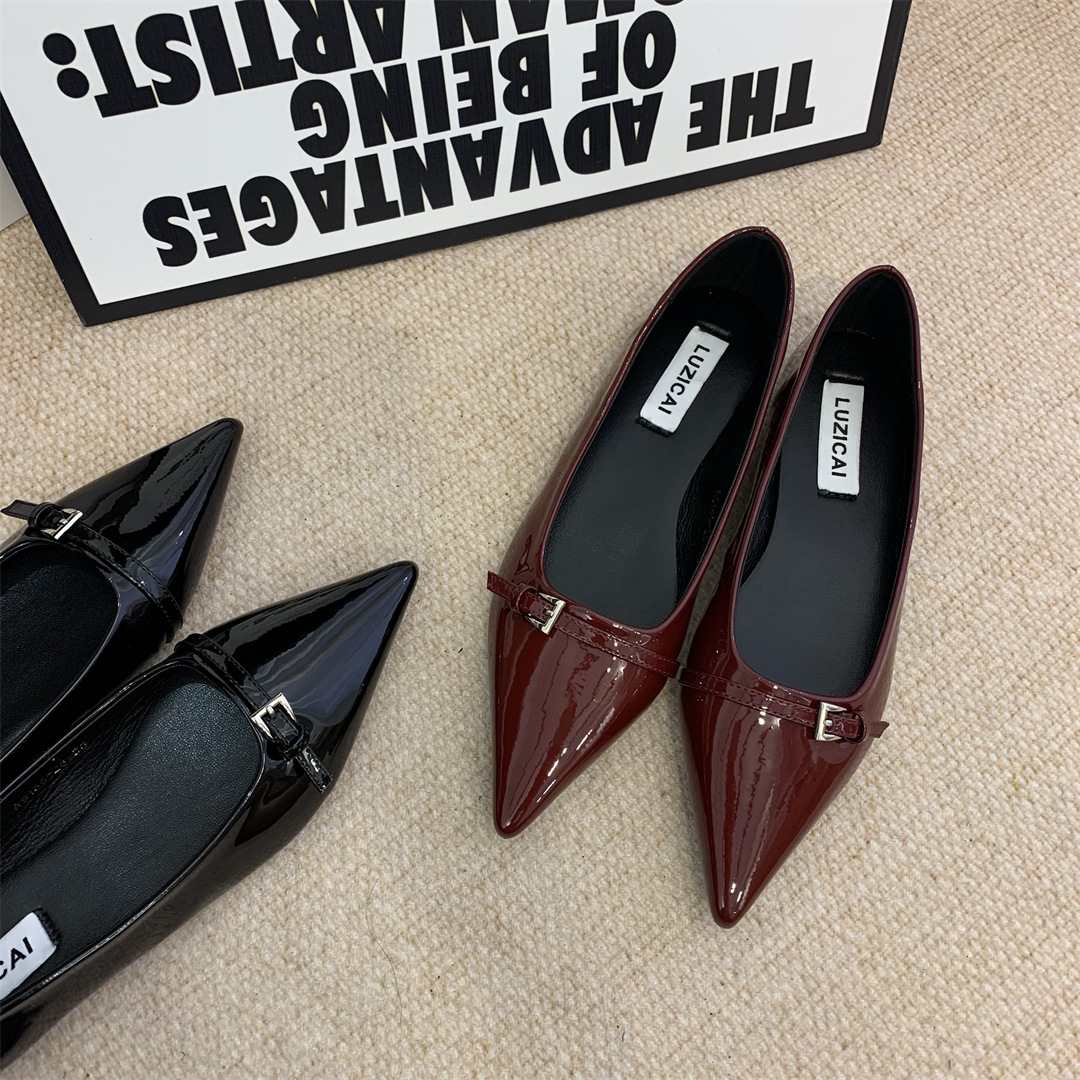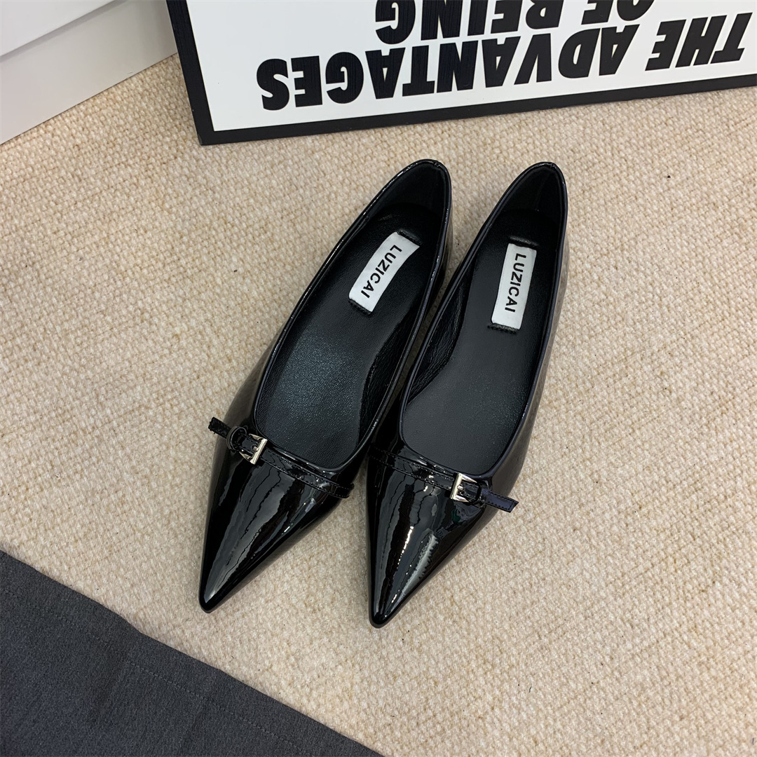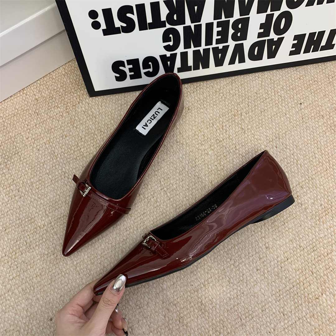 2025년 여름 신상 여성용 프렌치 스타일 블랙 뾰족코 구두, 봄/가을용 에어리 페이턴트 가죽 슈즈스토어 가기