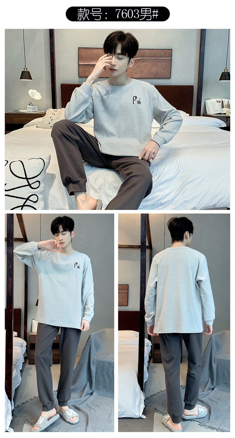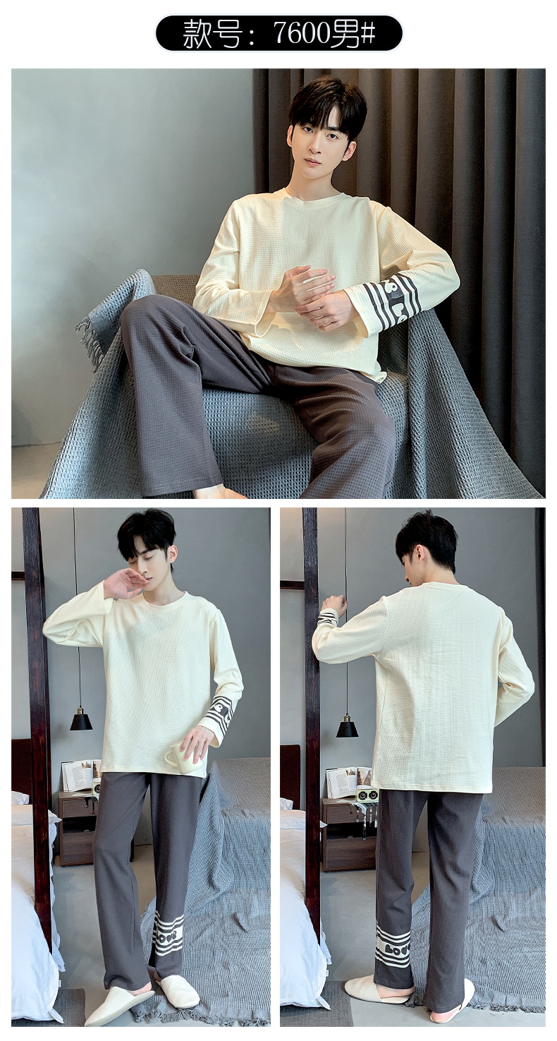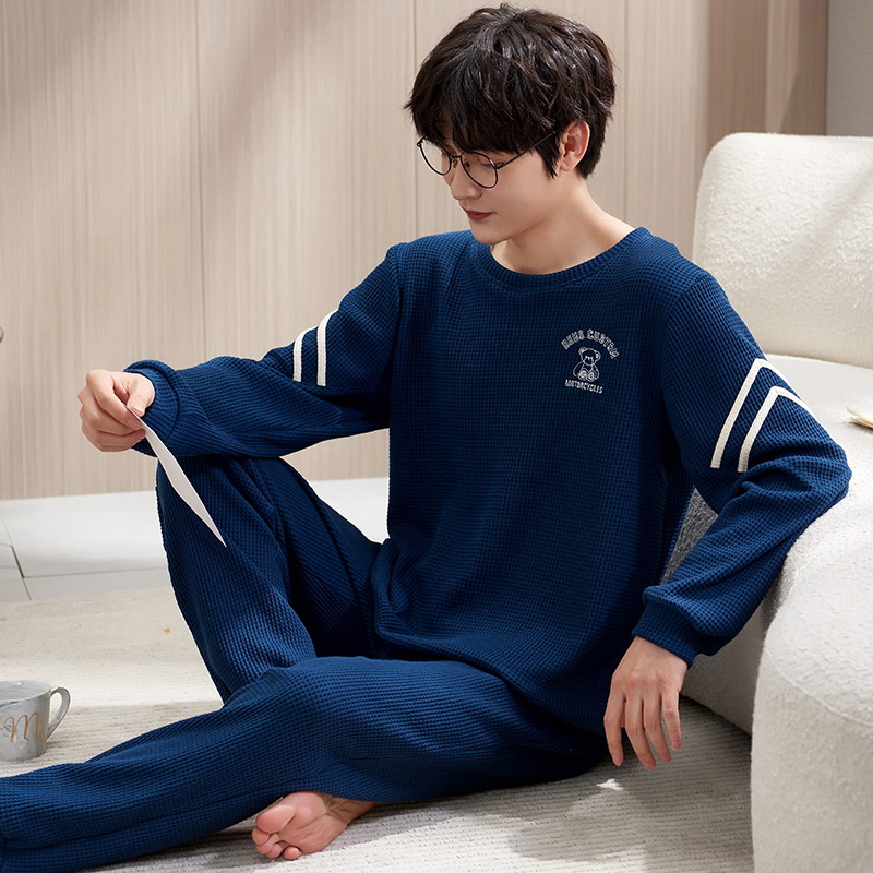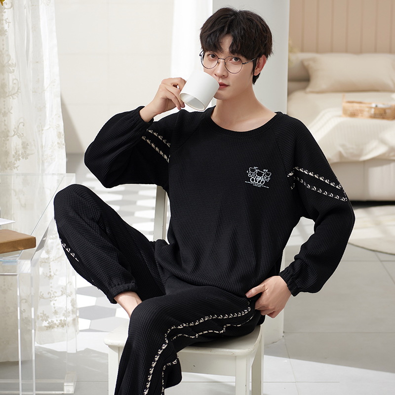 와플 잠옷 남자의 면 봄과 가을 새로운 스타일 긴 소매 젊은 남자의 가정 옷 세트 하이 엔드 웨어러블스토어 가기