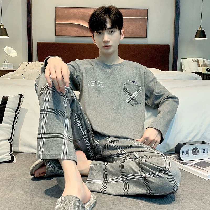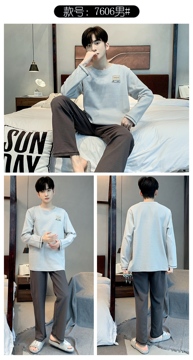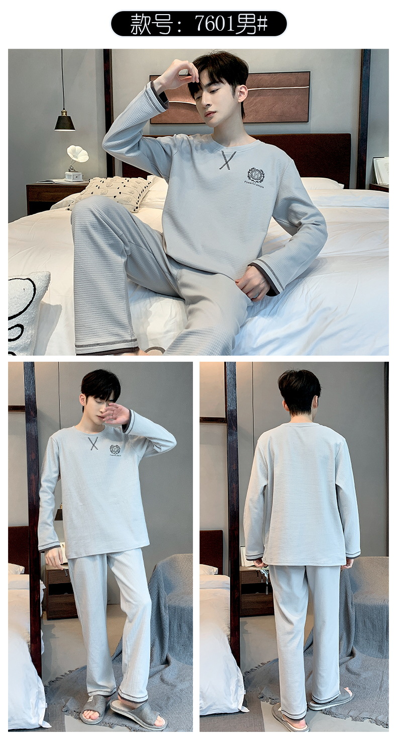 와플 잠옷 남자의 면 봄과 가을 새로운 스타일 긴 소매 젊은 남자의 가정 옷 세트 하이 엔드 웨어러블스토어 가기