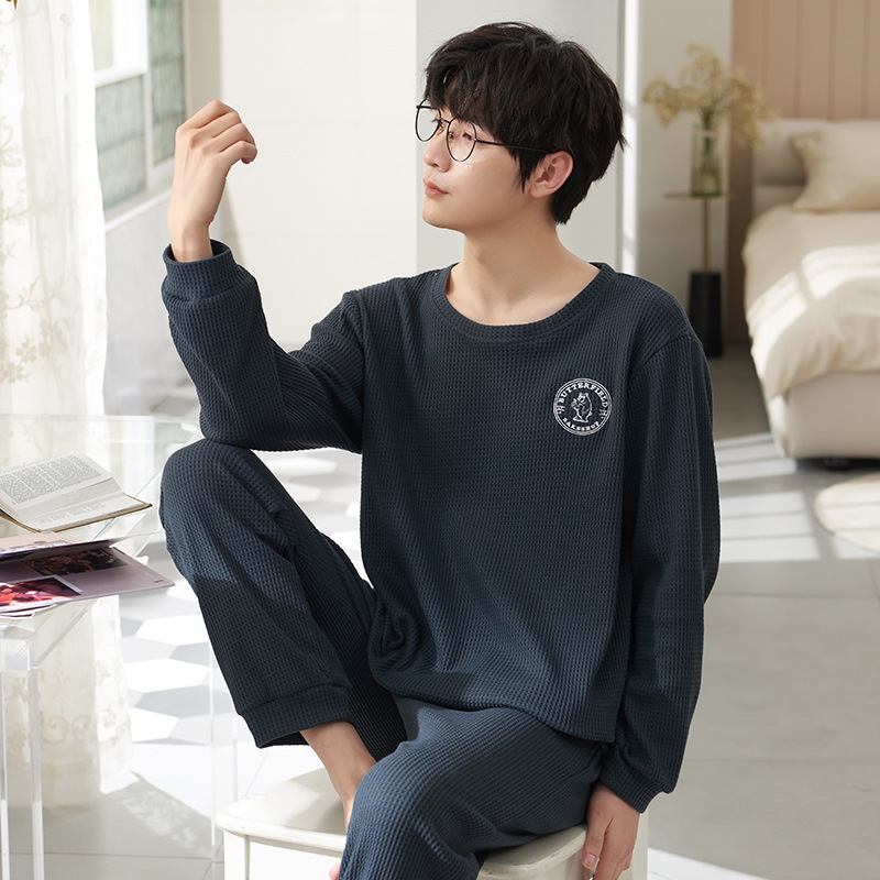 와플 잠옷 남자의 면 봄과 가을 새로운 스타일 긴 소매 젊은 남자의 가정 옷 세트 하이 엔드 웨어러블