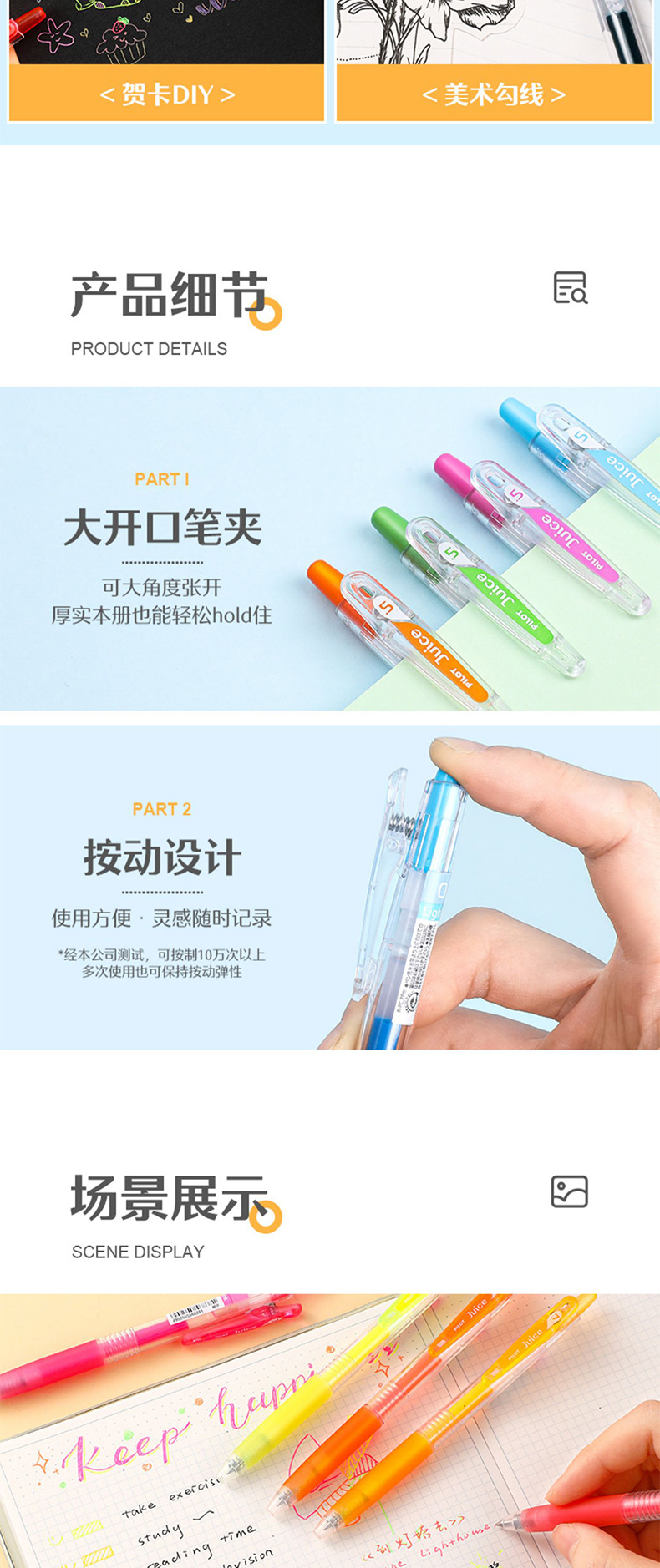 일본 PILOT 베일 주스 주스 펜 0.38/0.5/0.7 프레스 젤 펜 포지티브 하이 컬러 값 블랙 펜