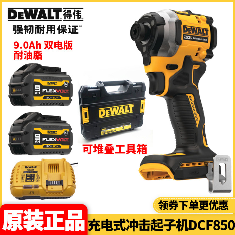 오리지널 Dewei DEWALT 리튬 배터리 브러시리스 20V 충격 드라이버 전동 드라이버 DCF850N스토어 가기