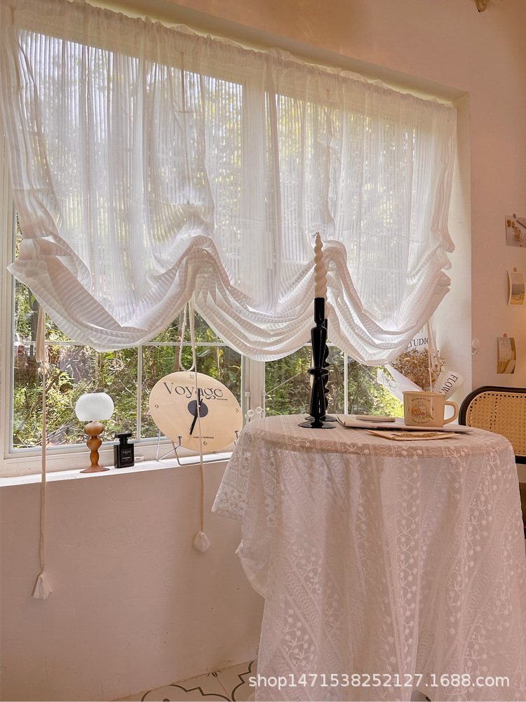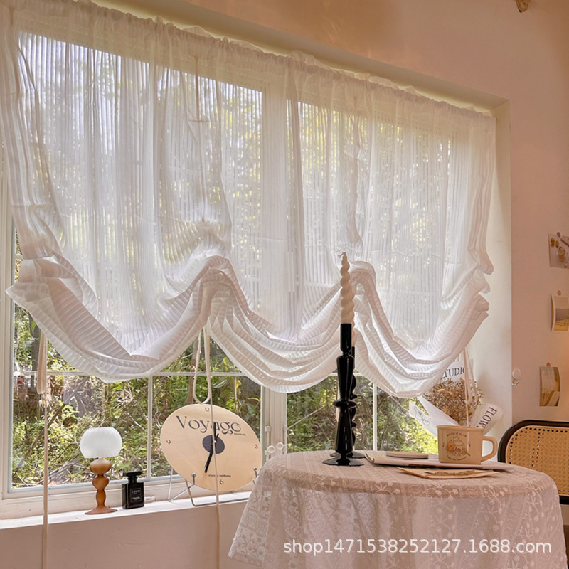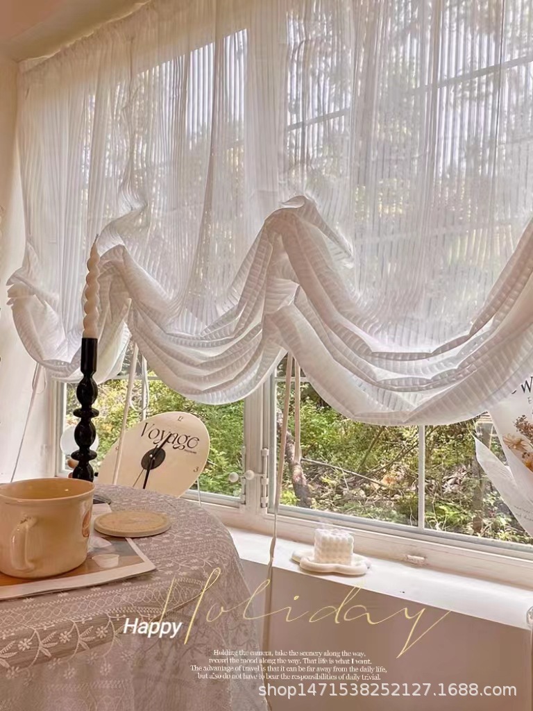 프렌치 크림 빛 투명 거즈 커튼 심플 스타일 수직 셔터 고급 틸팅 커튼 펀치 프리 로마 커튼 장식 커튼스토어 가기