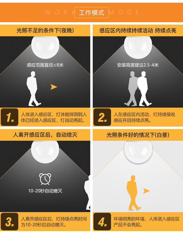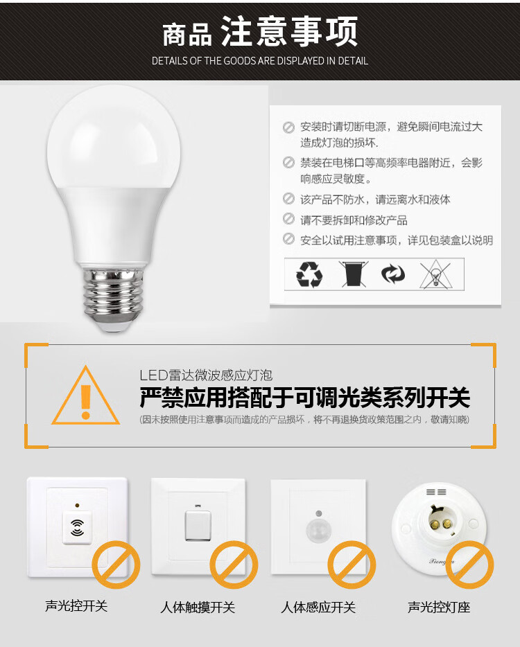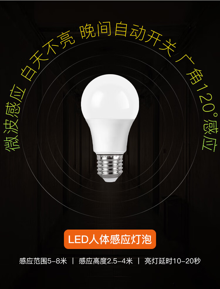 불산 조명 LED 마이크로파 유도 전구 E27 나사 인체 유도 전구 소리 및 조명 제어 5W 유도 전구 램프스토어 가기