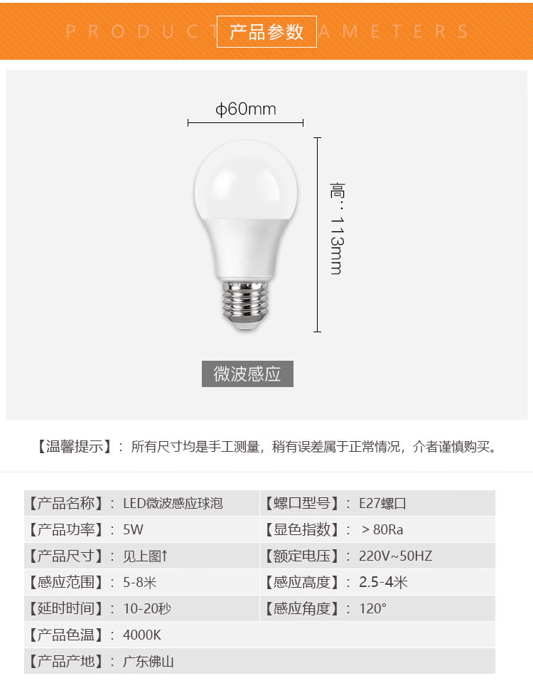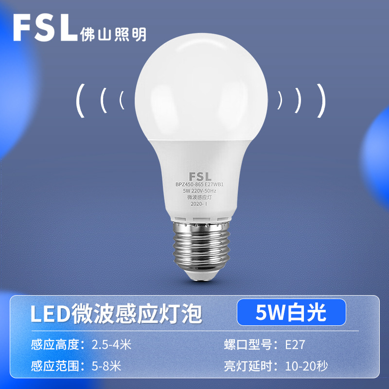 불산 조명 LED 마이크로파 유도 전구 E27 나사 인체 유도 전구 소리 및 조명 제어 5W 유도 전구 램프
