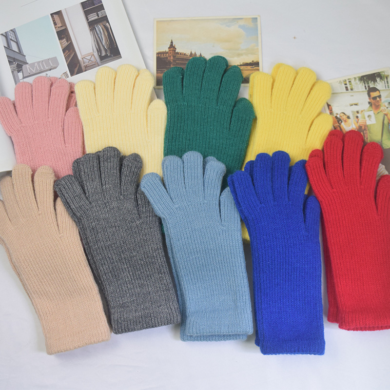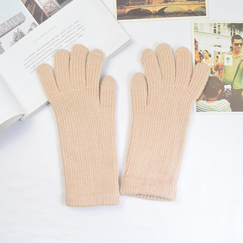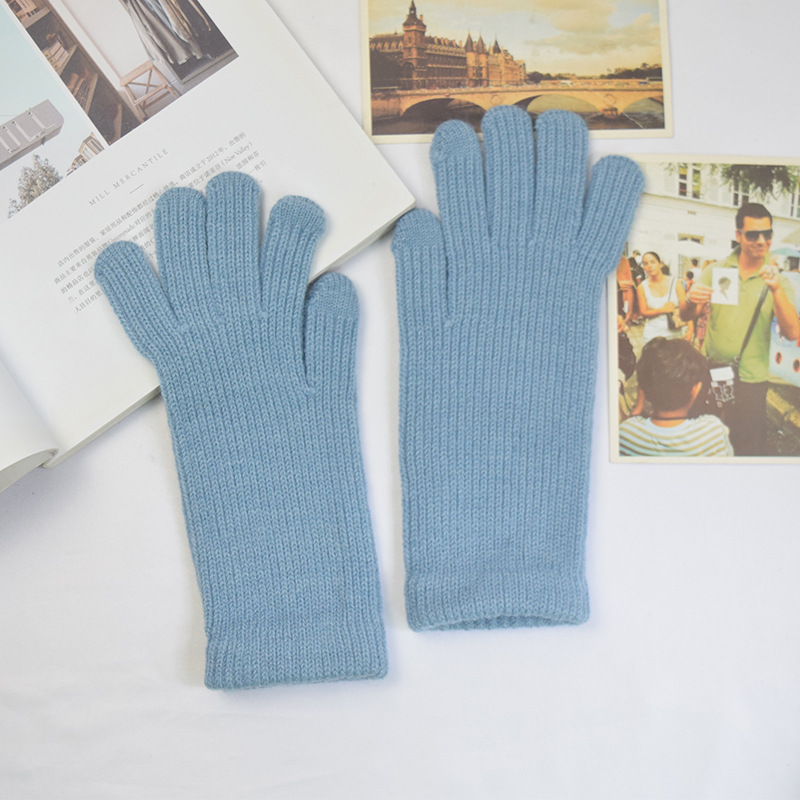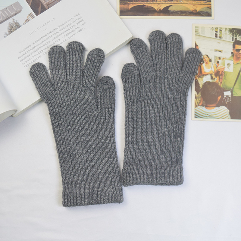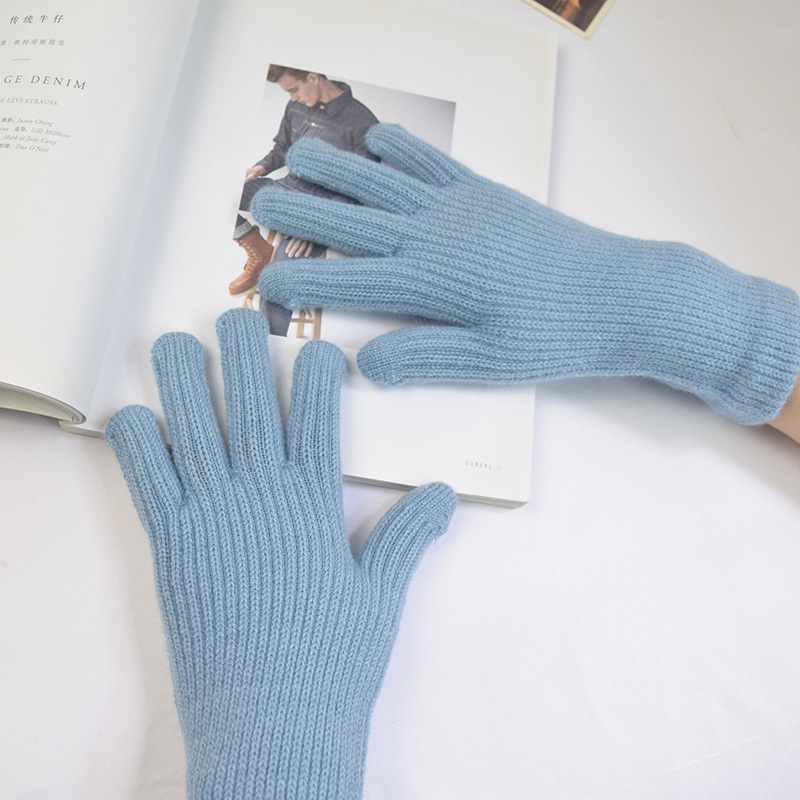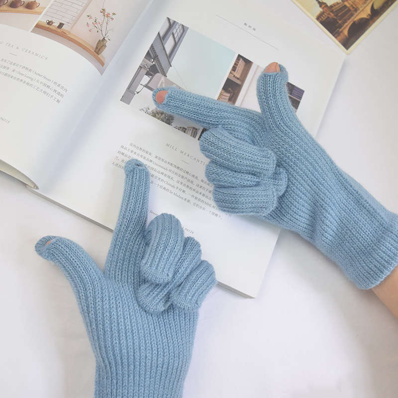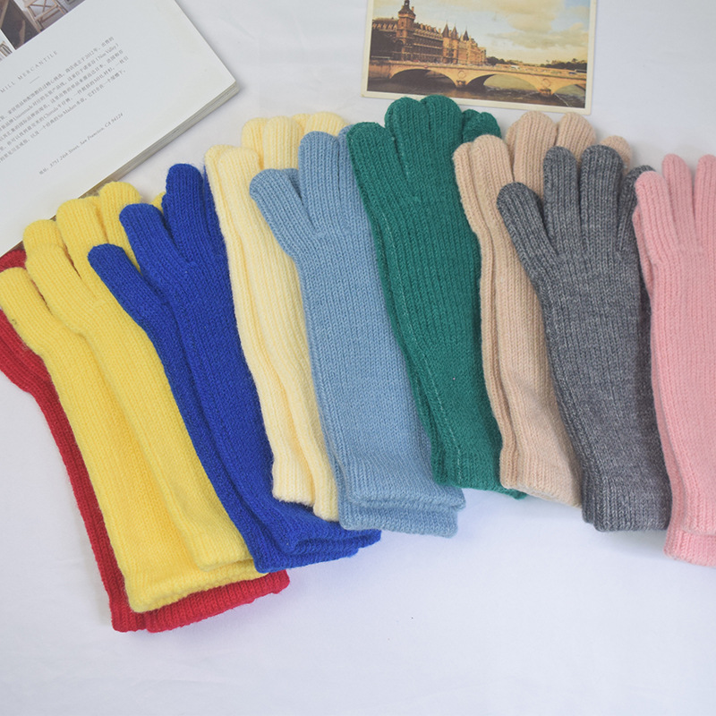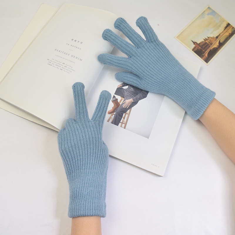 단색 양모 니트 장갑 한국 스타일 여성의 겨울 두꺼운 터치 스크린 누출 손가락 따뜻한 다섯 손가락 사이클링 장갑