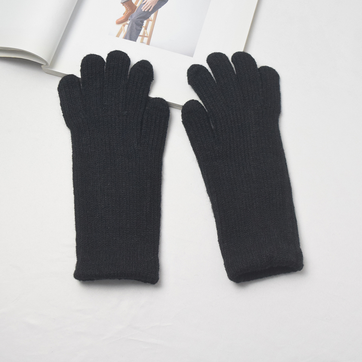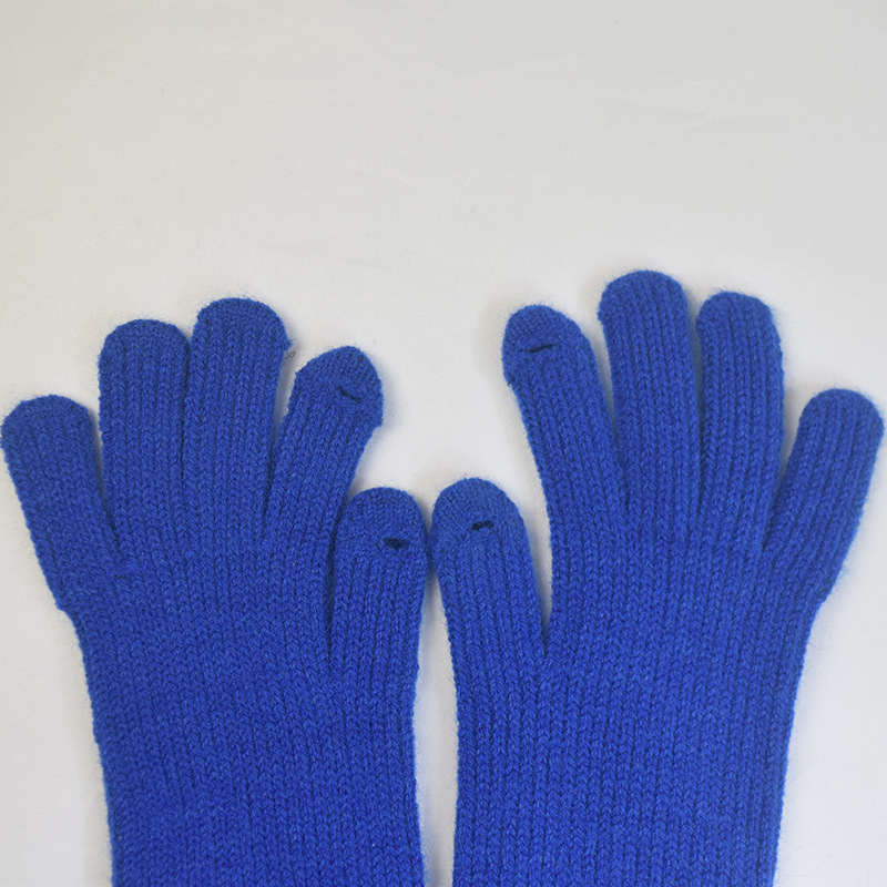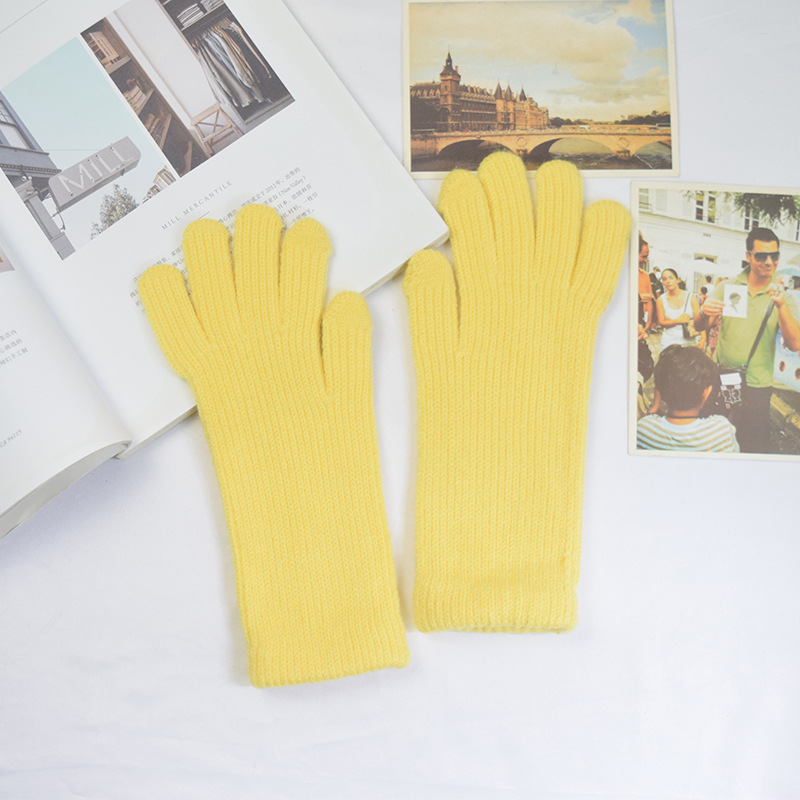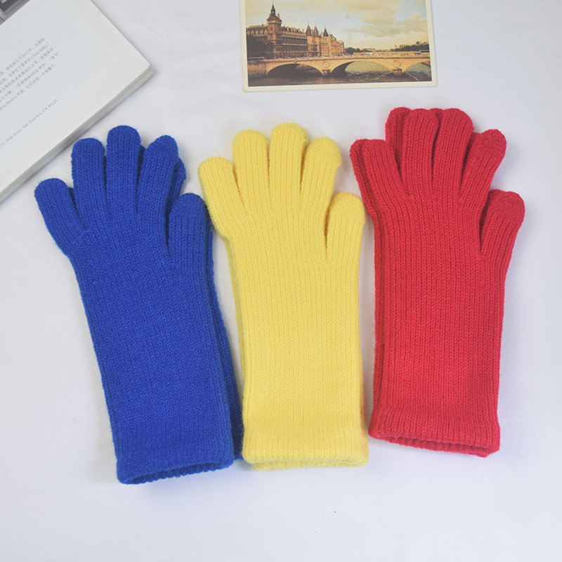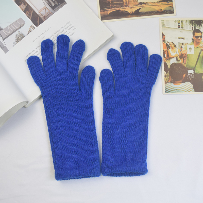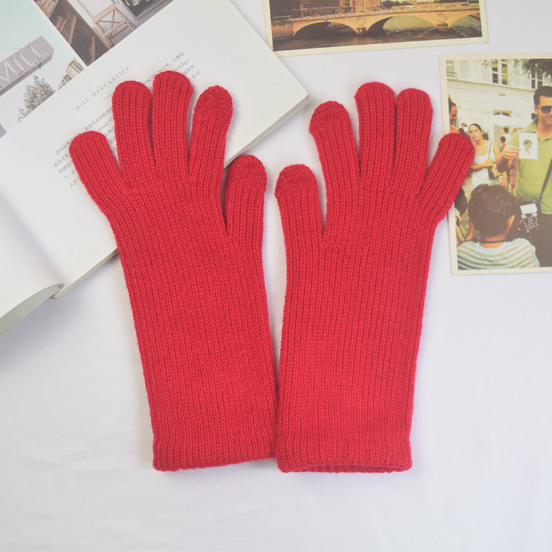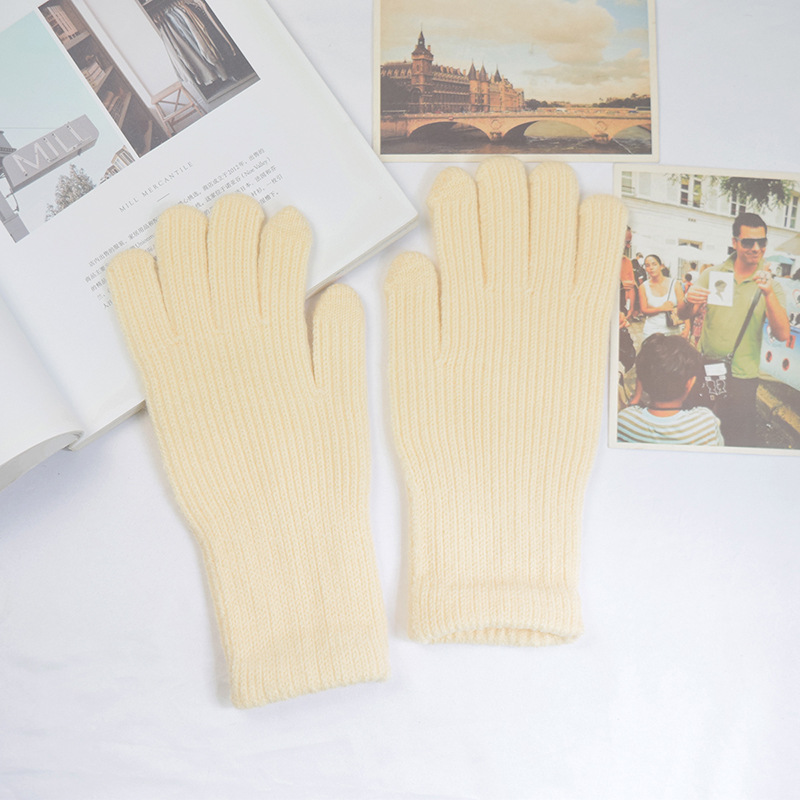 단색 양모 니트 장갑 한국 스타일 여성의 겨울 두꺼운 터치 스크린 누출 손가락 따뜻한 다섯 손가락 사이클링 장갑