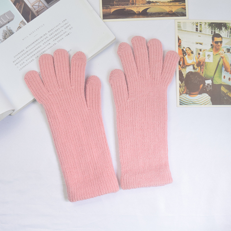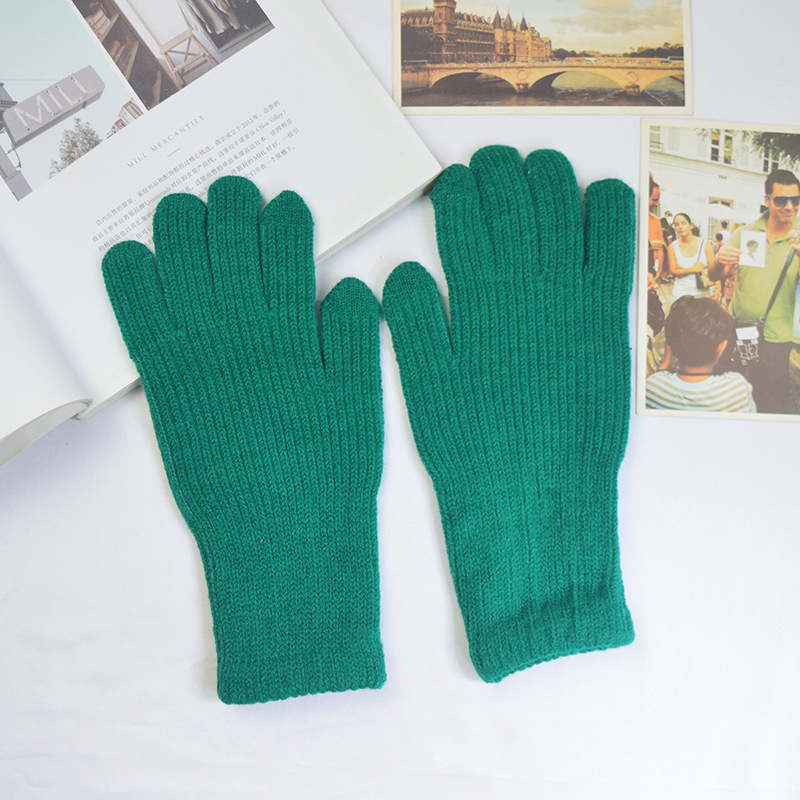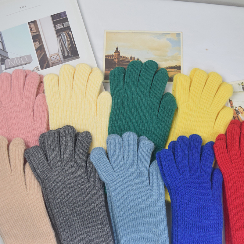 단색 양모 니트 장갑 한국 스타일 여성의 겨울 두꺼운 터치 스크린 누출 손가락 따뜻한 다섯 손가락 사이클링 장갑스토어 가기