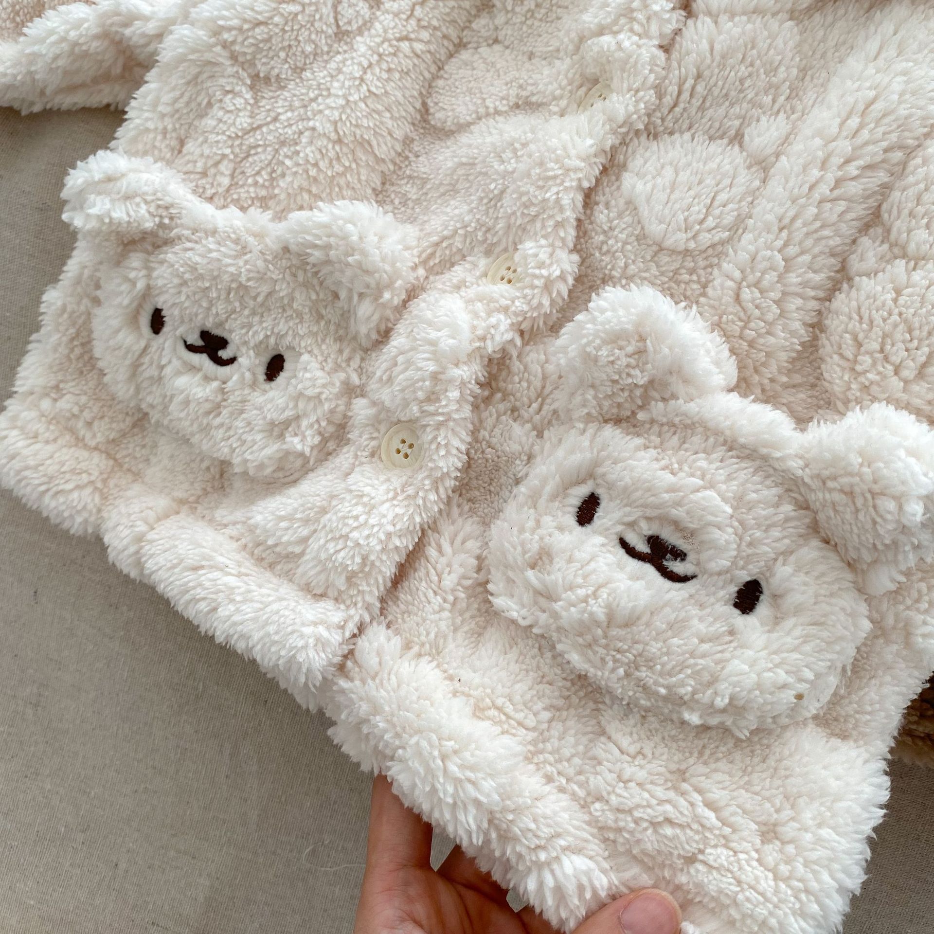 가을, 겨울 새 아기 가정 의류 세트 귀여운 곰 플러시 코트 어린이 아기 플러시 잠옷 투피스 세트스토어 가기