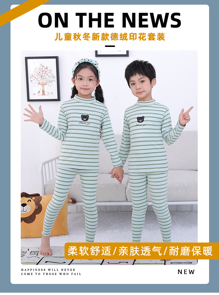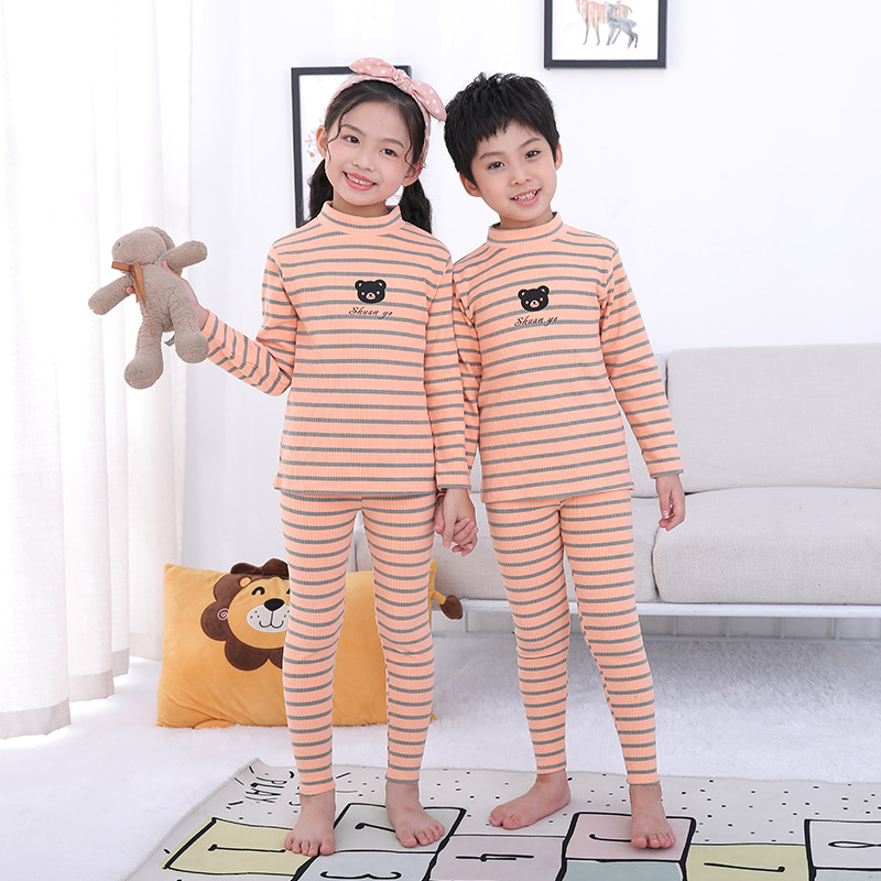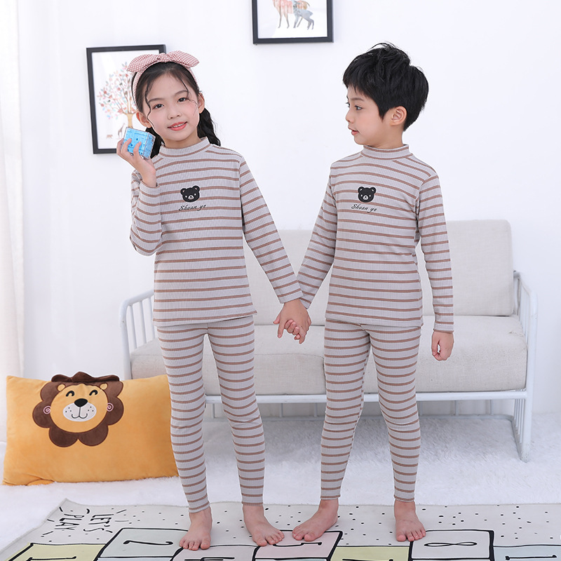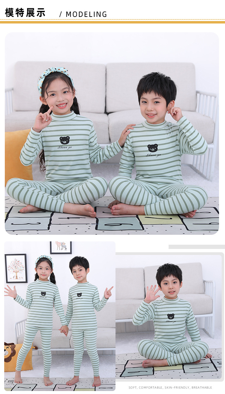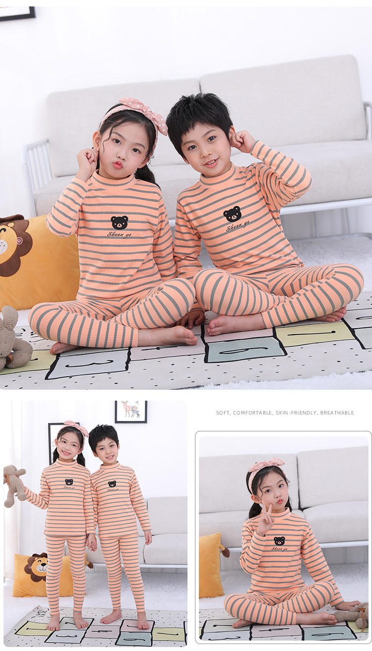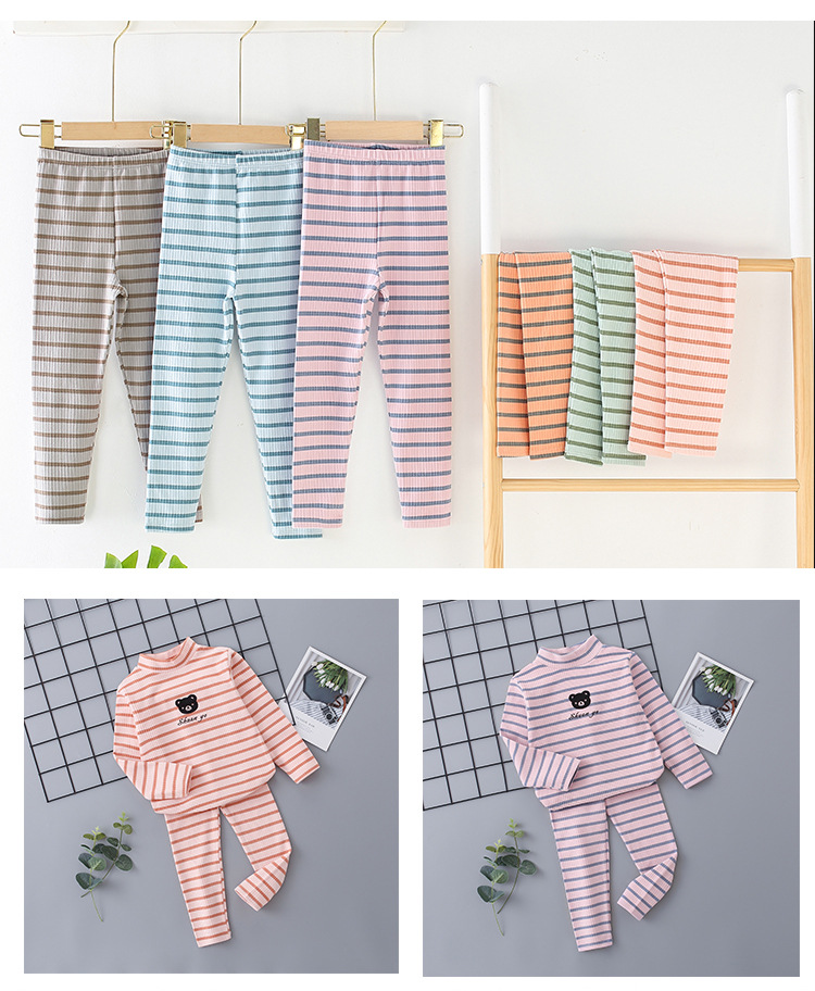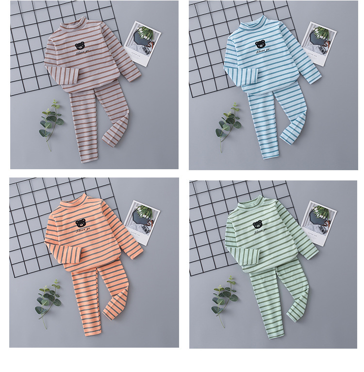 23 년 새로운 어린이 스트라이프 따뜻한 세트 남성과 여성의 아동복 가을 바지 어린이 샌딩 가정 의류 가을과 겨울