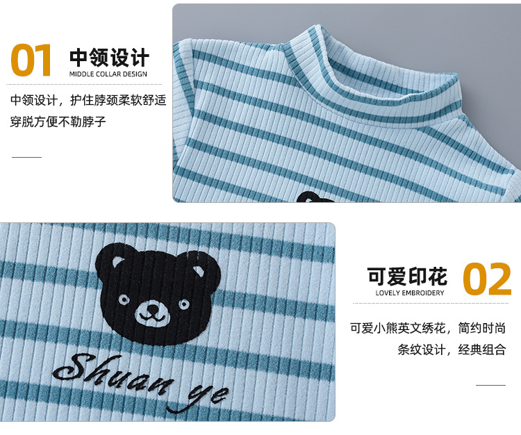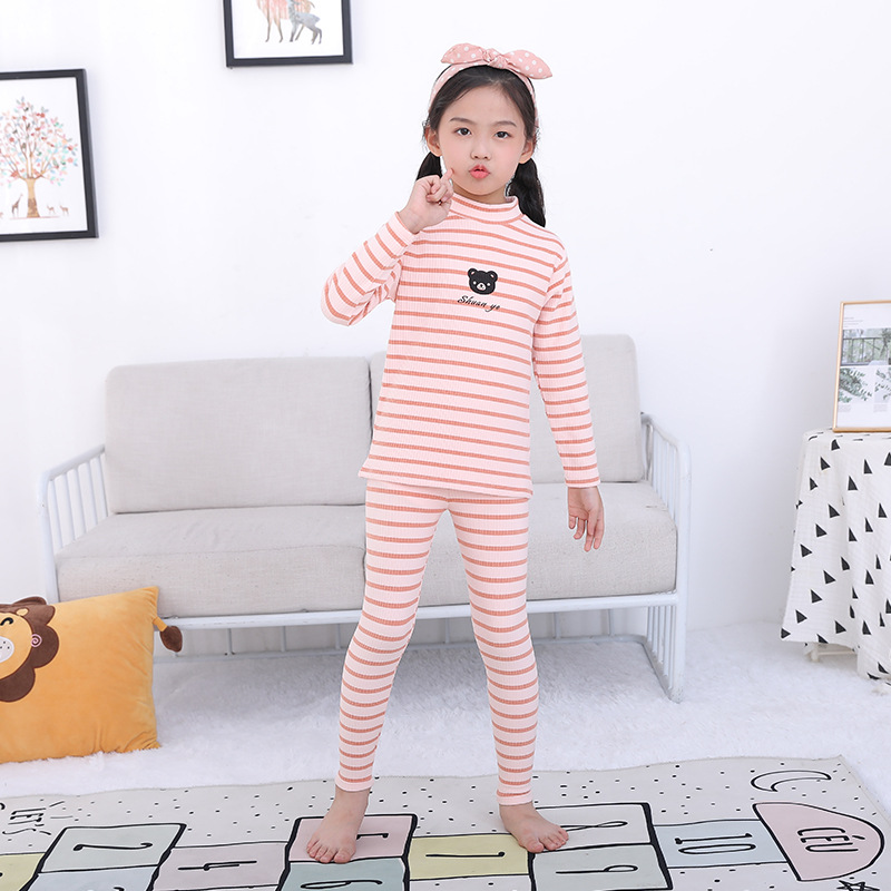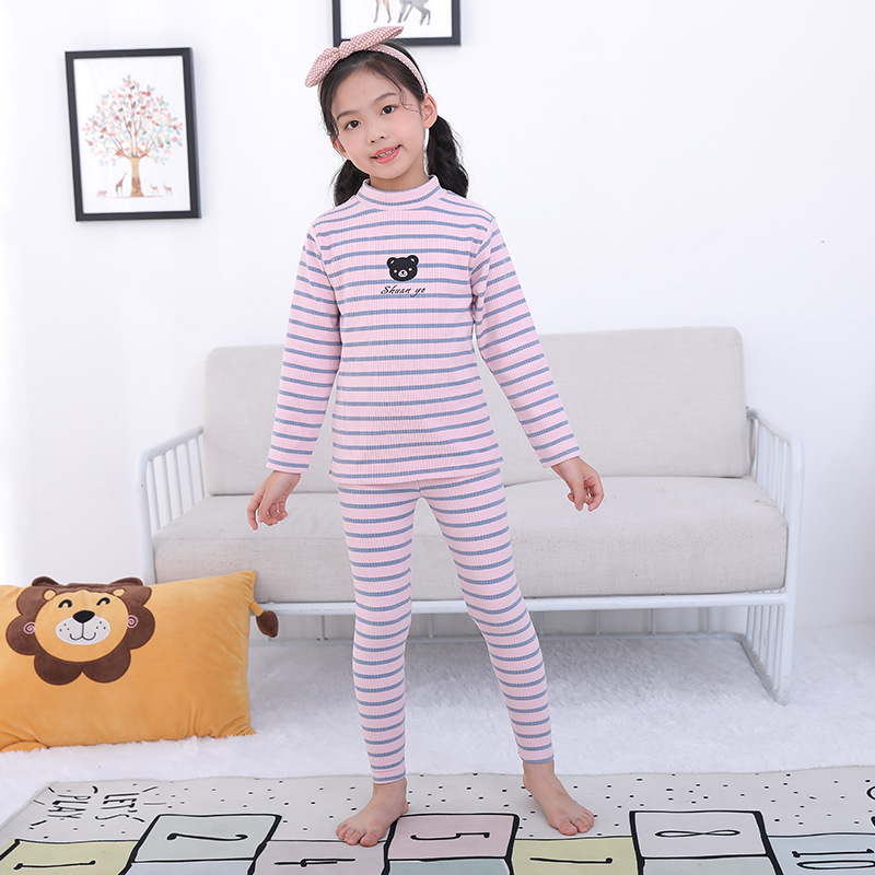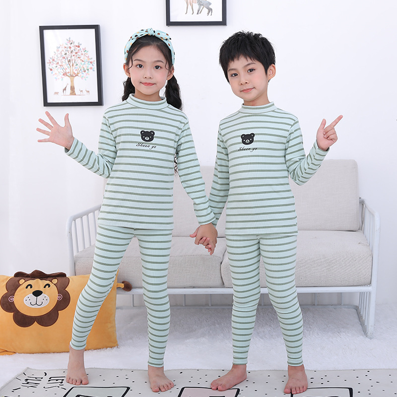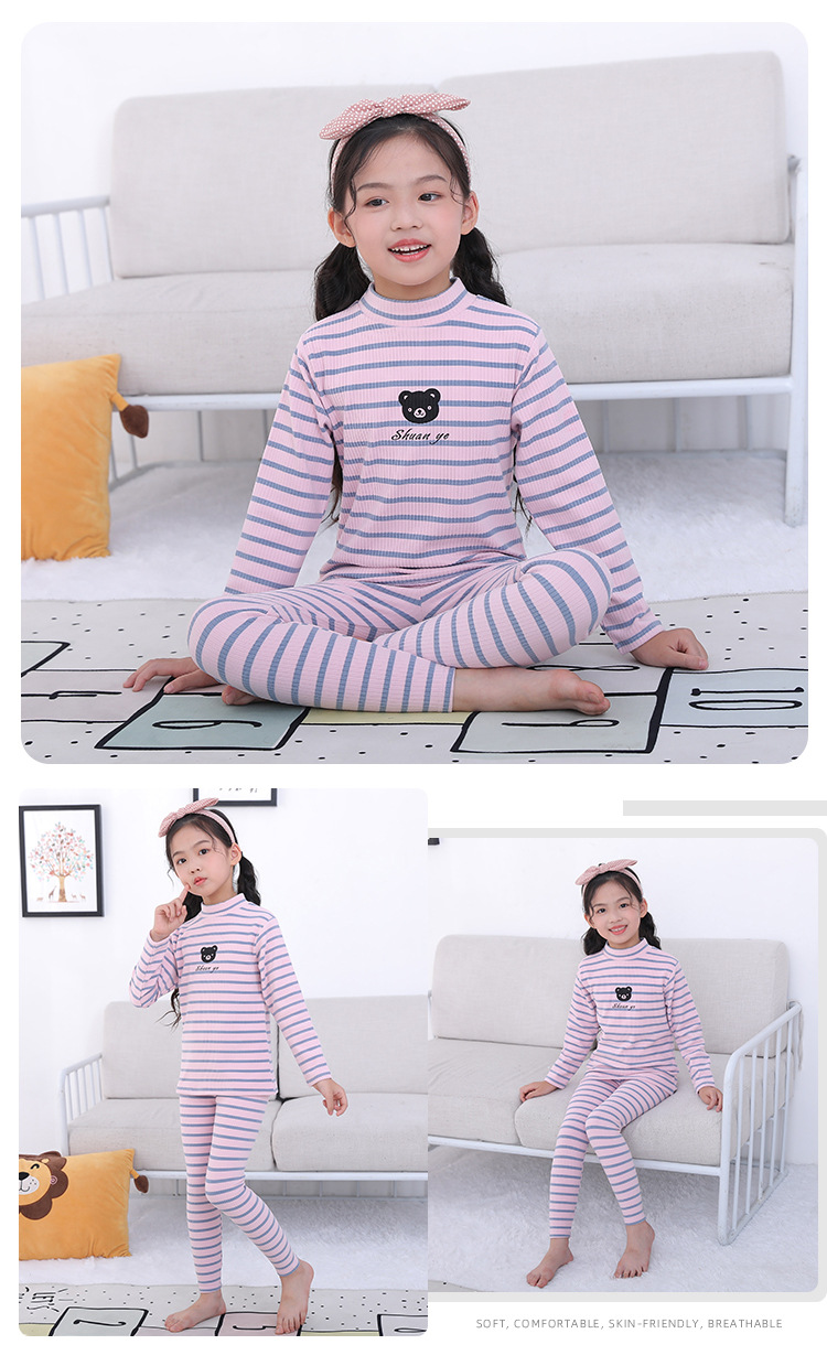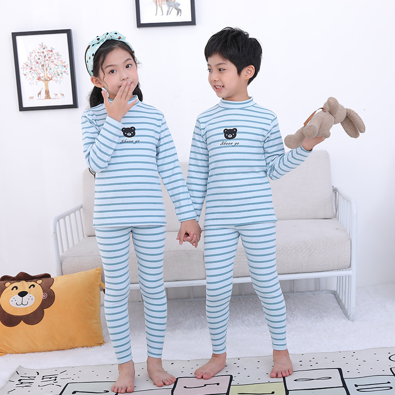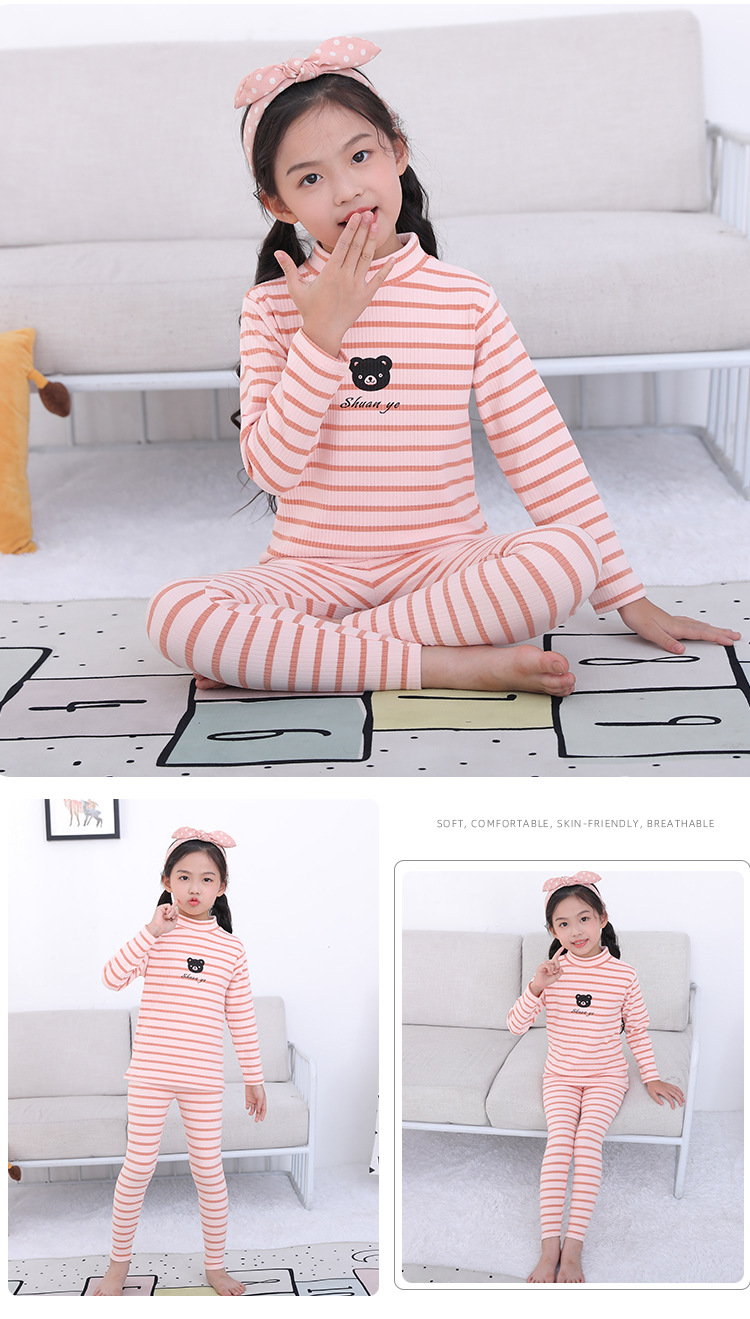 23 년 새로운 어린이 스트라이프 따뜻한 세트 남성과 여성의 아동복 가을 바지 어린이 샌딩 가정 의류 가을과 겨울