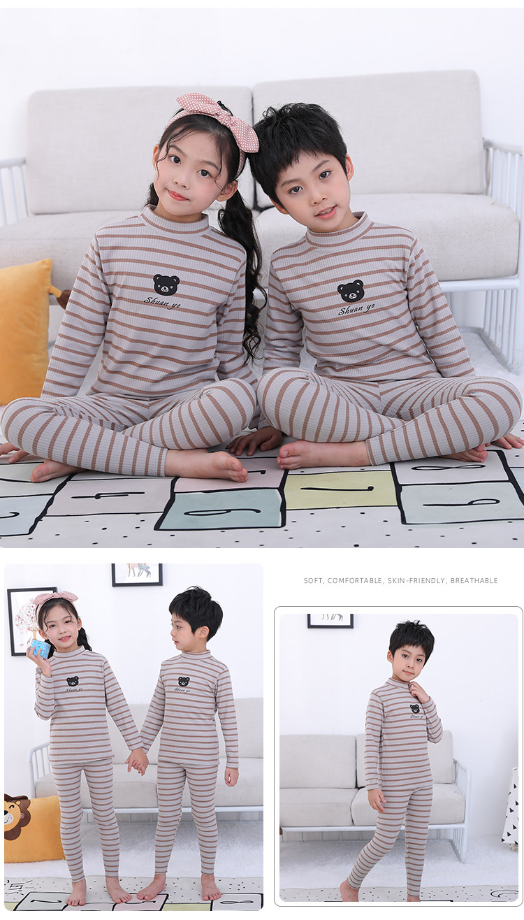 23 년 새로운 어린이 스트라이프 따뜻한 세트 남성과 여성의 아동복 가을 바지 어린이 샌딩 가정 의류 가을과 겨울스토어 가기