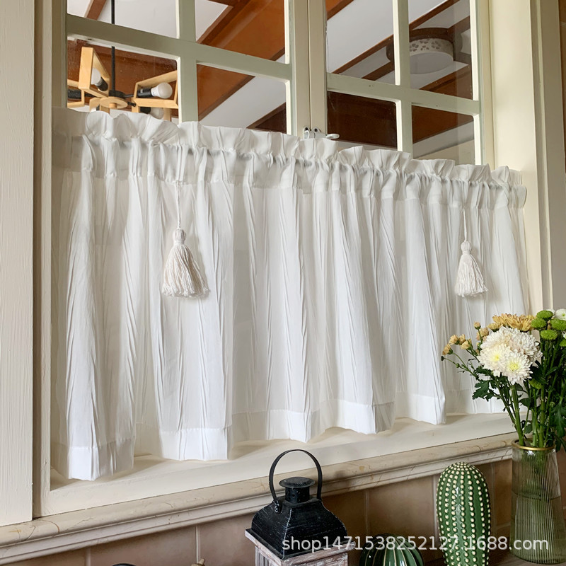 심플 모던 라이트 럭셔리 커튼 거즈 커튼 투명 관통 비 천공 벨크로 자체 접착 하프 커튼 짧은 커튼 캐비닛 커튼