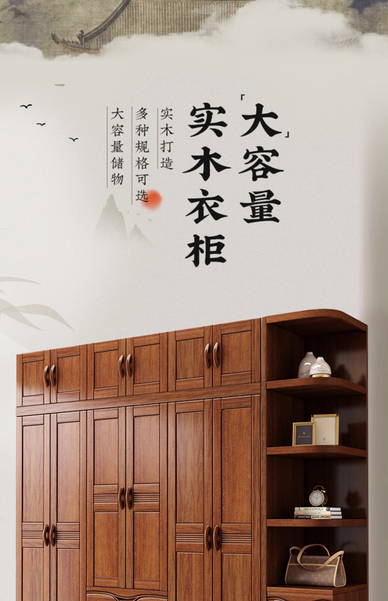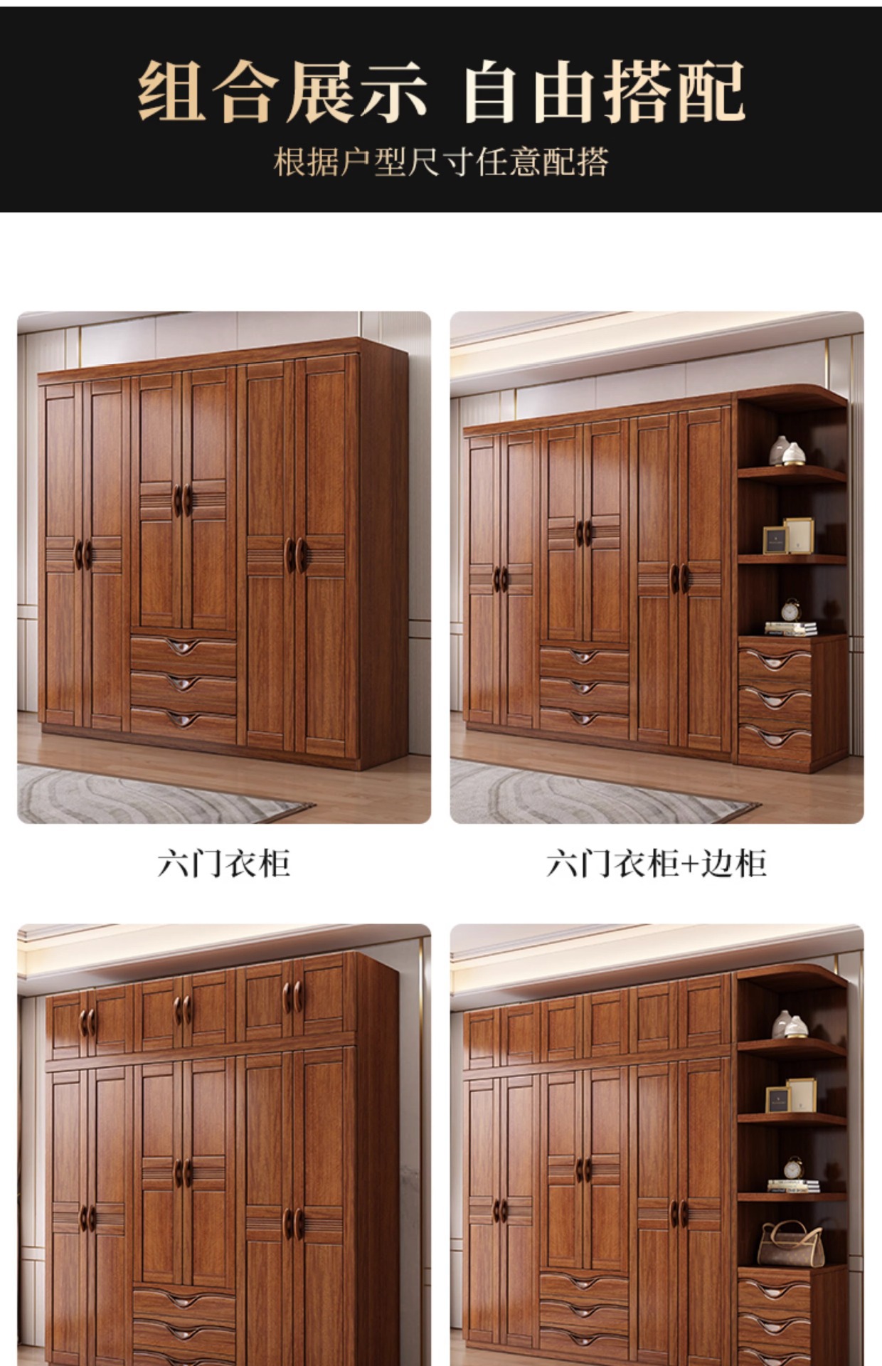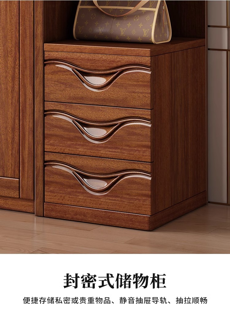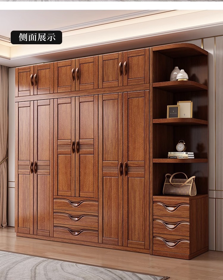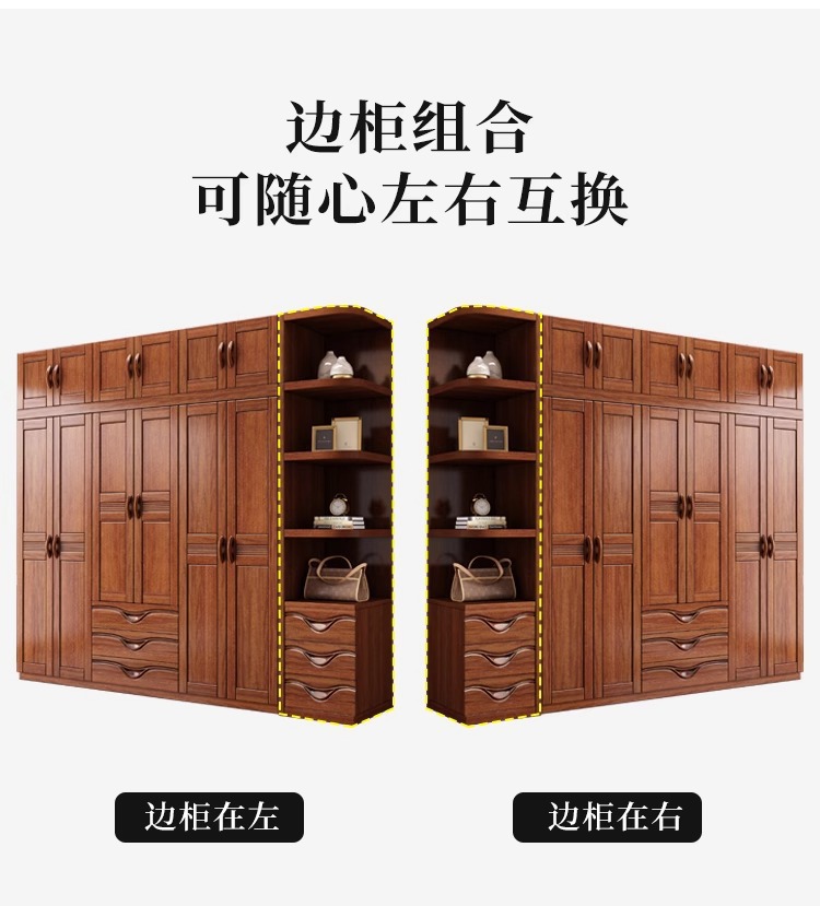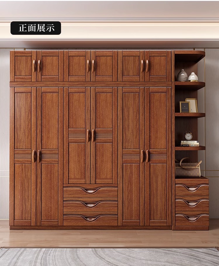 월넛 새로운 중국 스타일 옷장 홈 침실 수납 캐비닛 현대 간단한 가정용 경제적 인 보관 단단한 나무 옷장스토어 가기