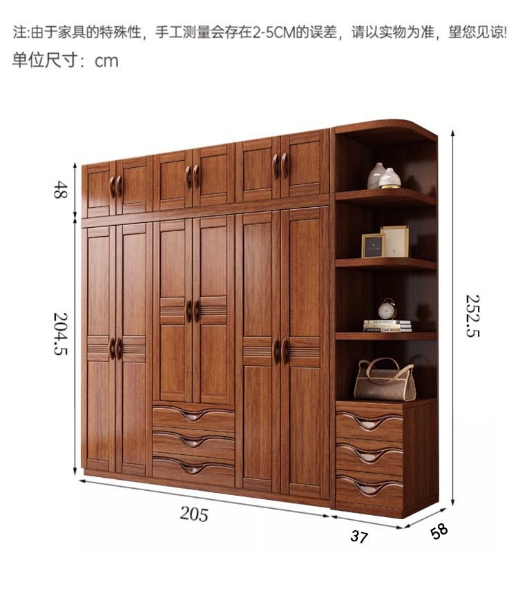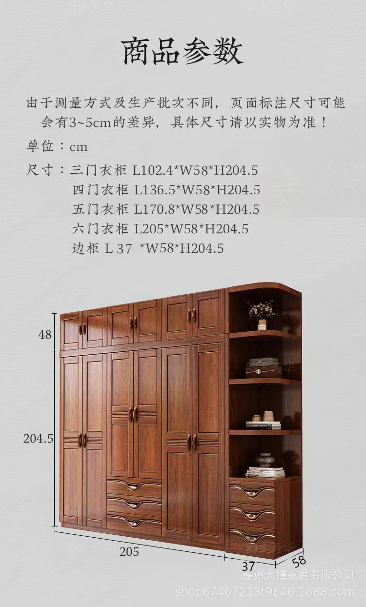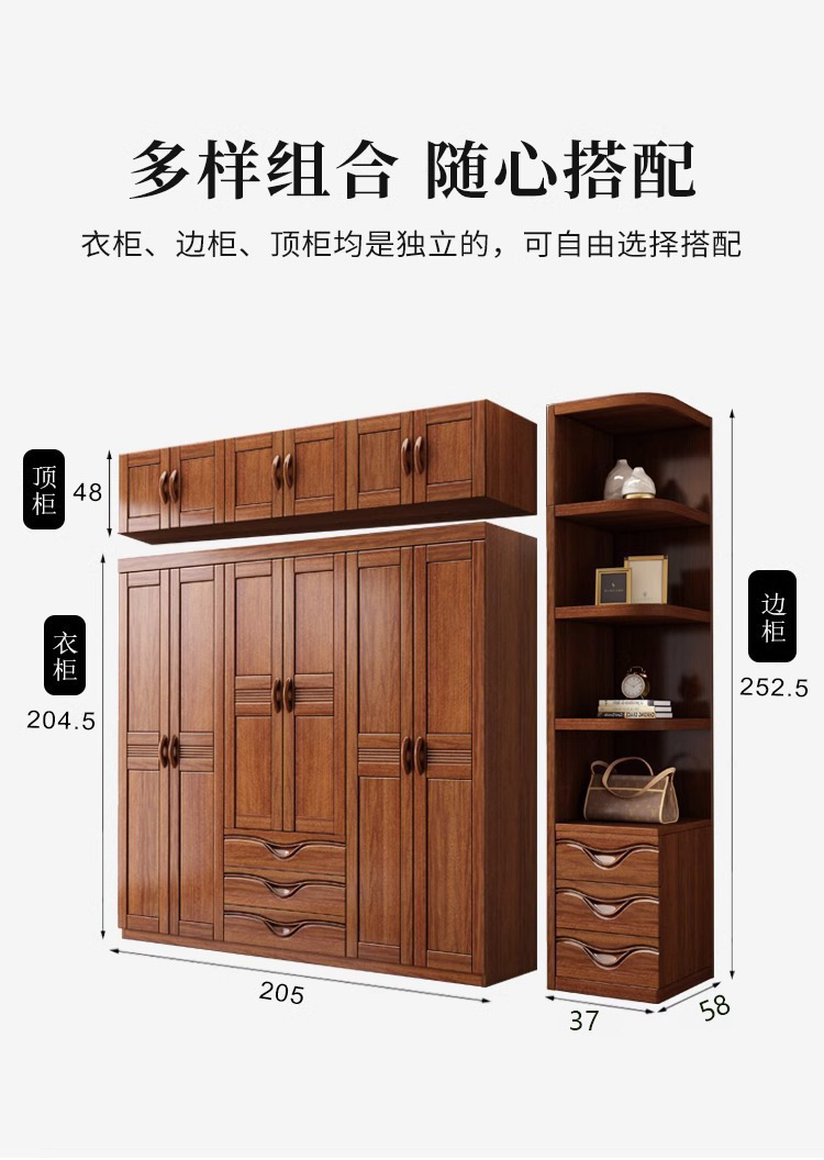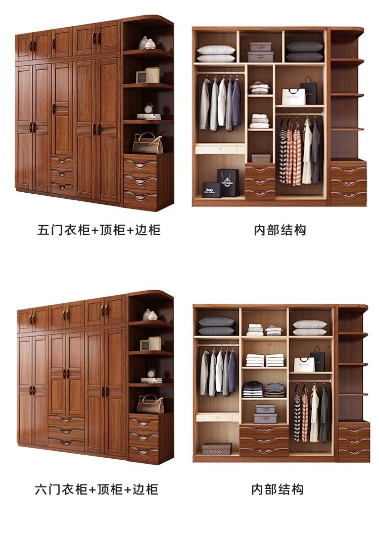 월넛 새로운 중국 스타일 옷장 홈 침실 수납 캐비닛 현대 간단한 가정용 경제적 인 보관 단단한 나무 옷장