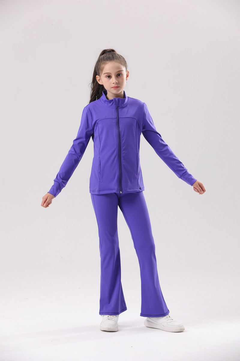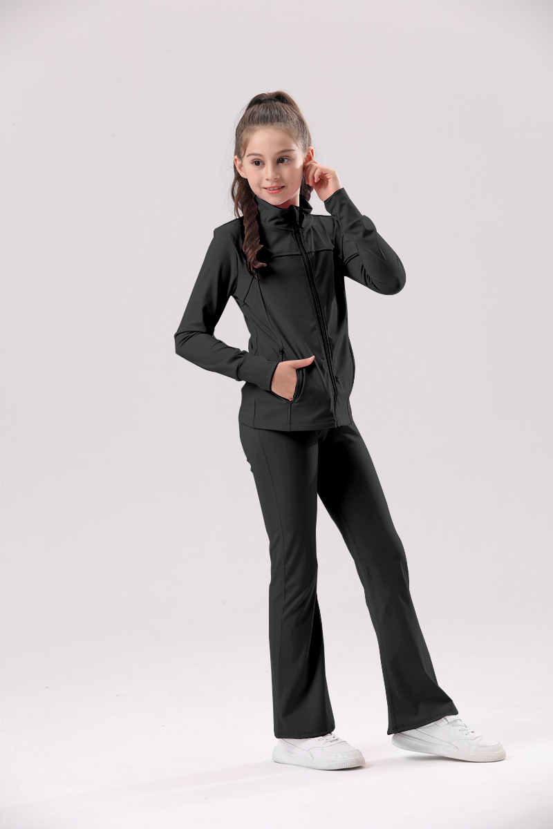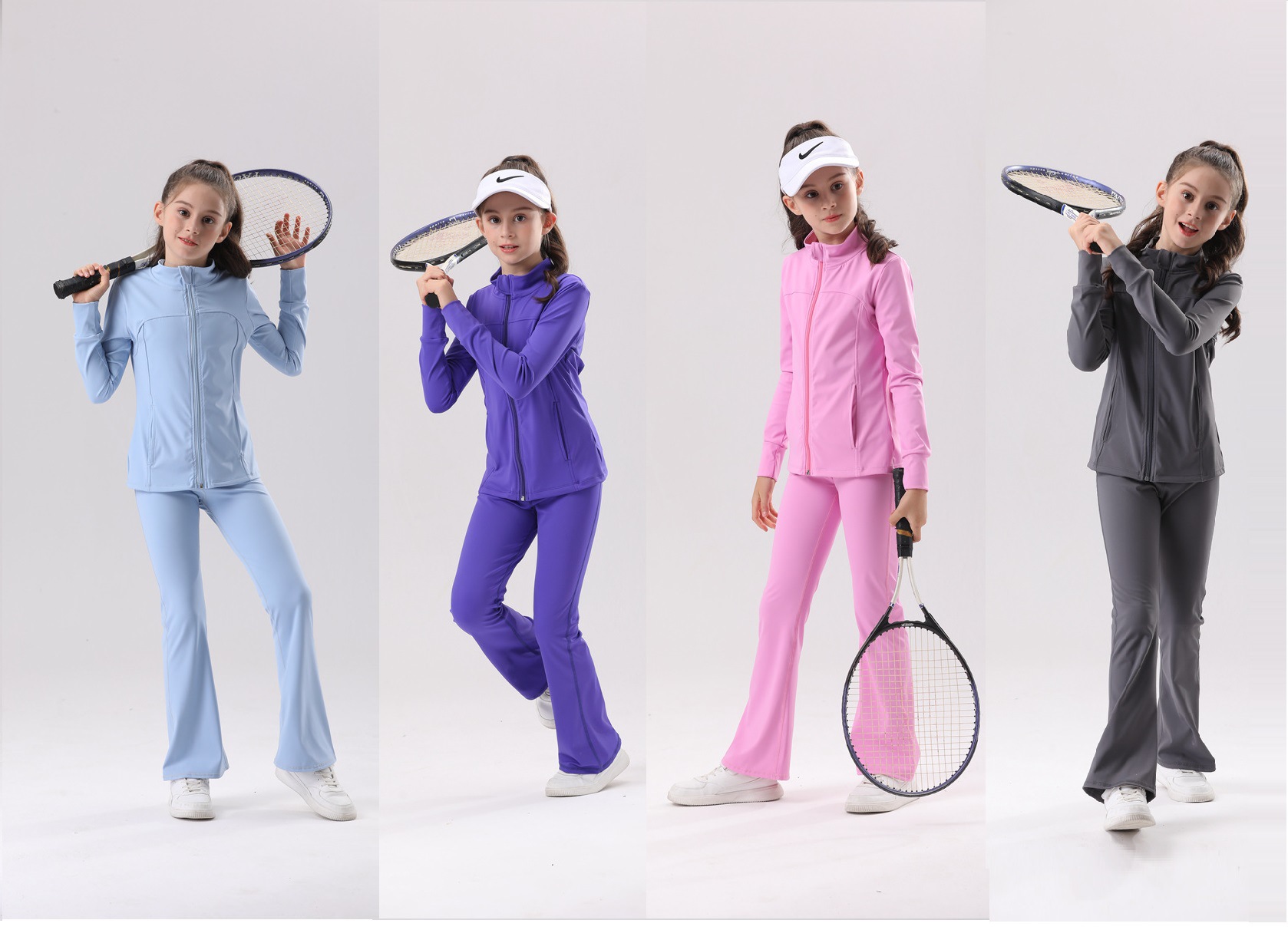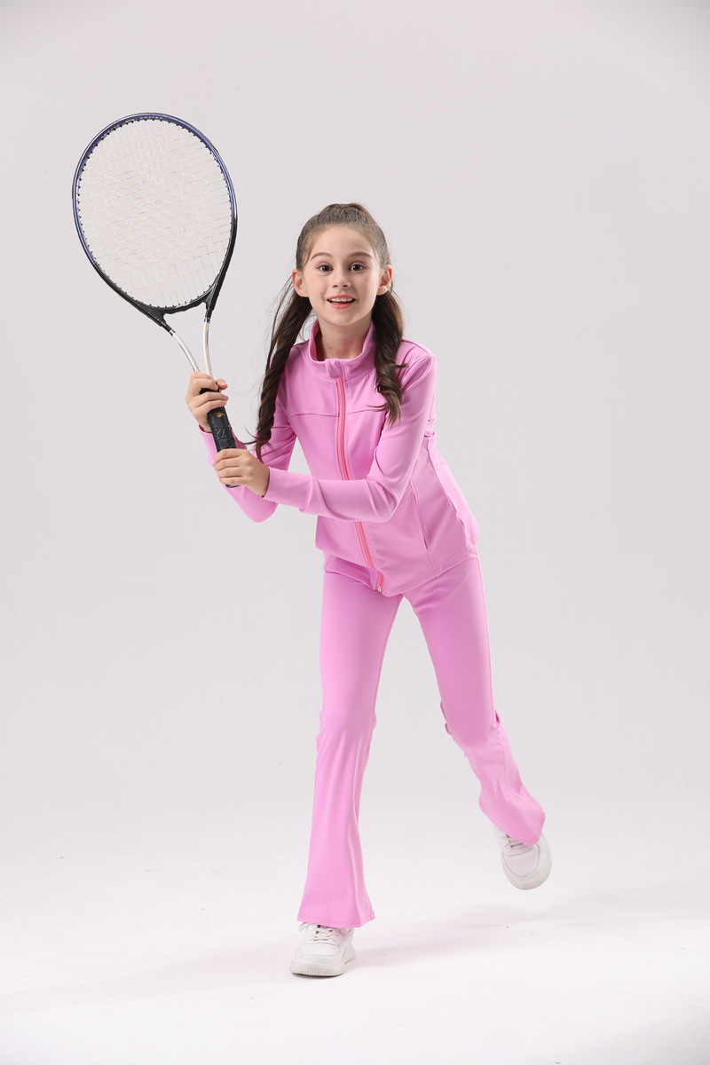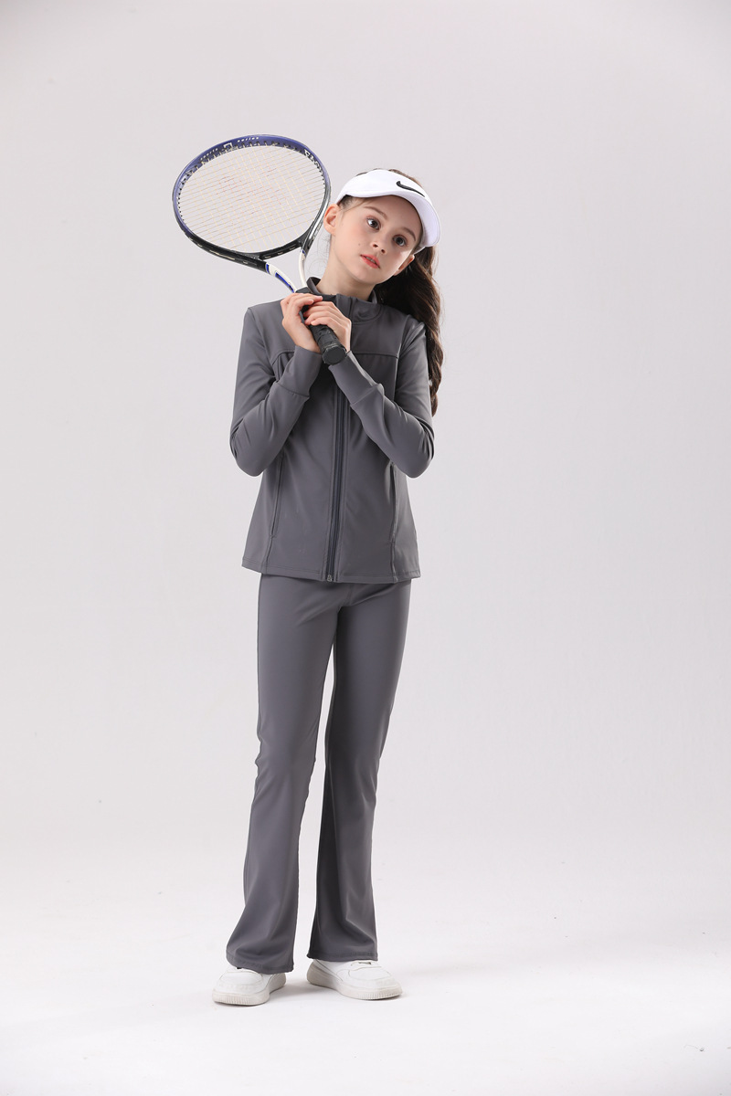 여아 요가 스포츠웨어 가을과 겨울 세트 여아 깃털 테니스 속건 옷 긴팔 자켓 슬림핏 플레어 팬츠