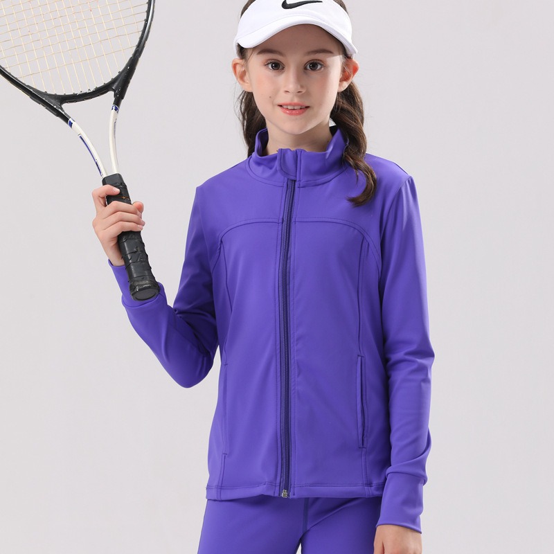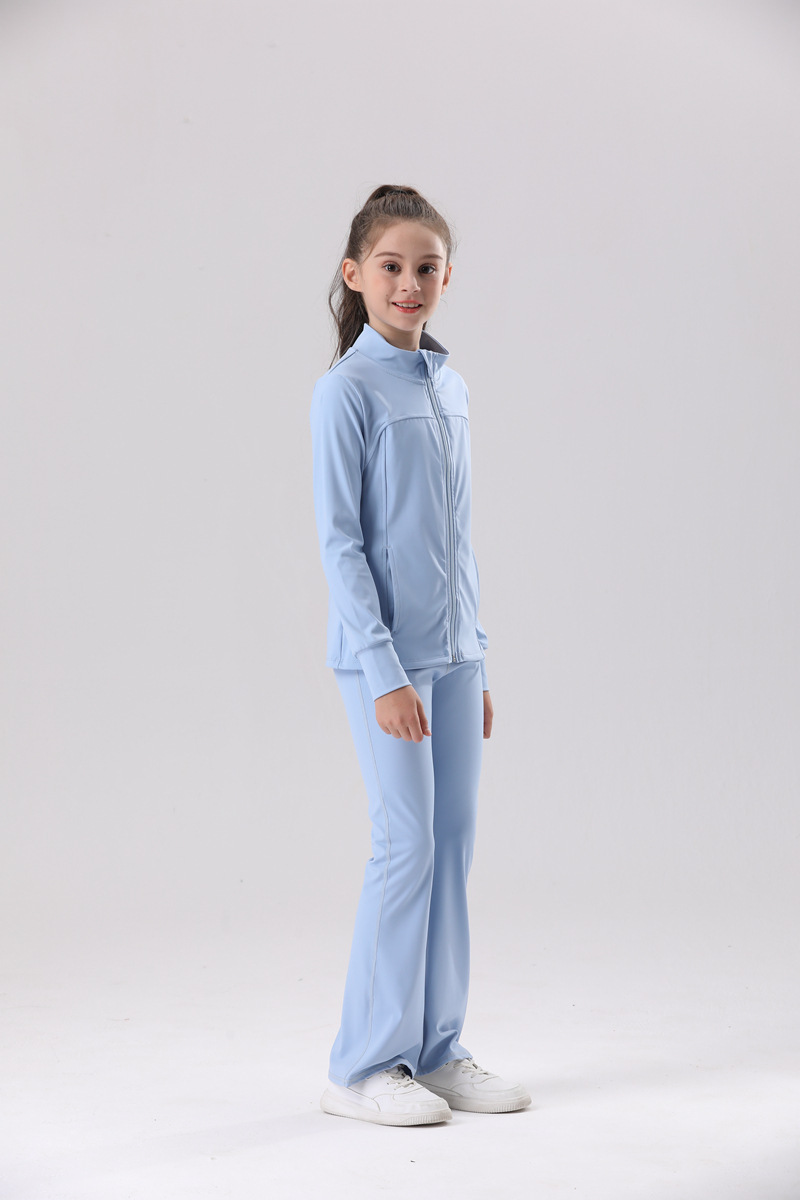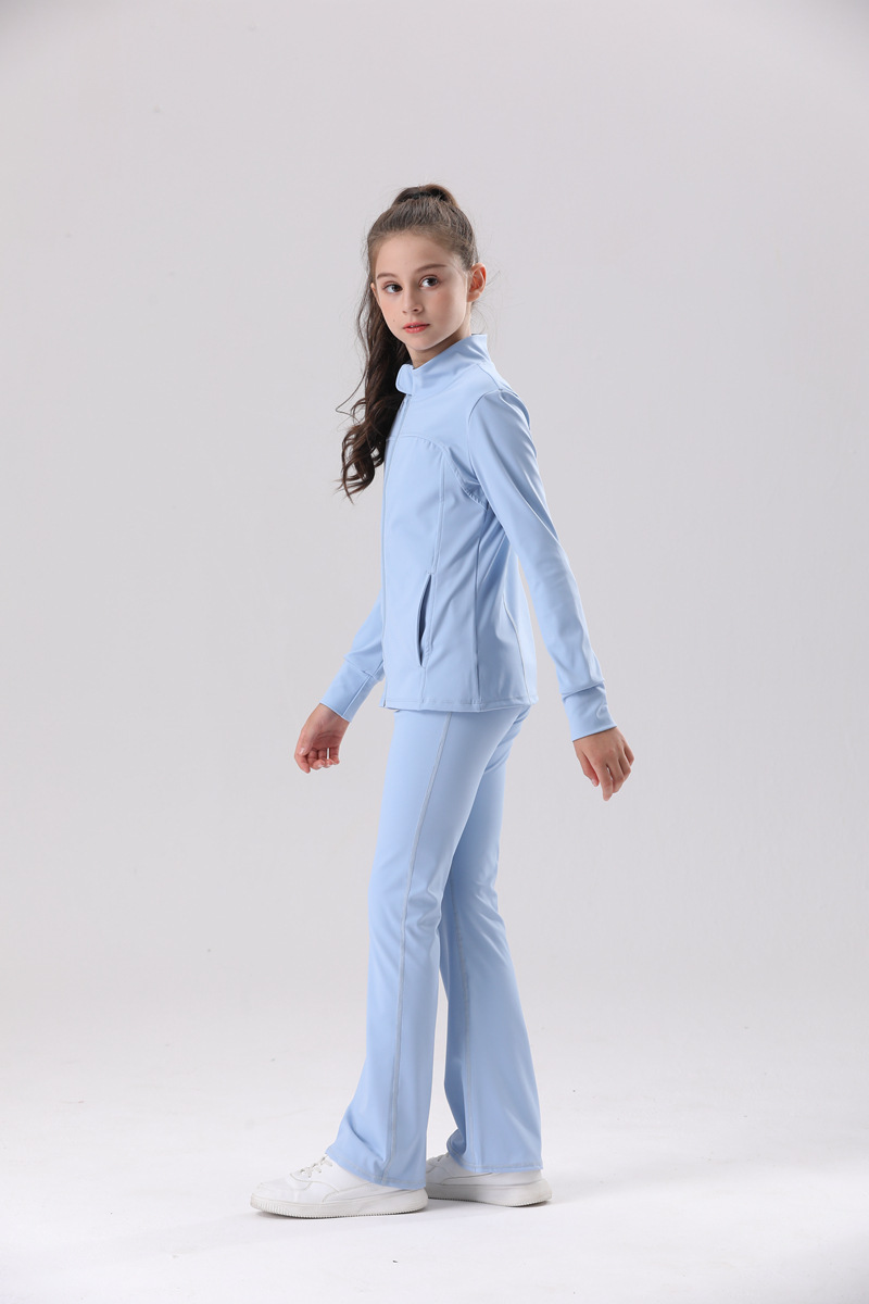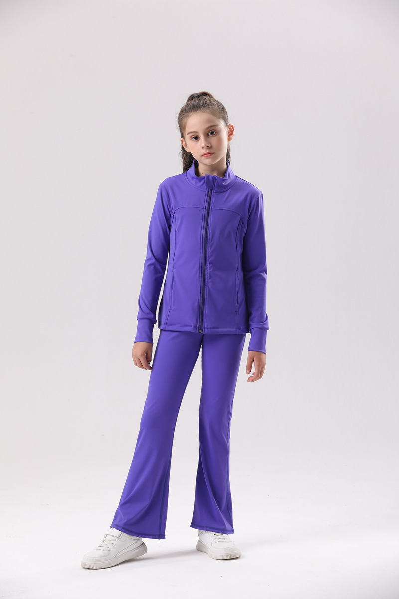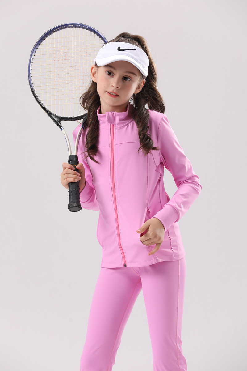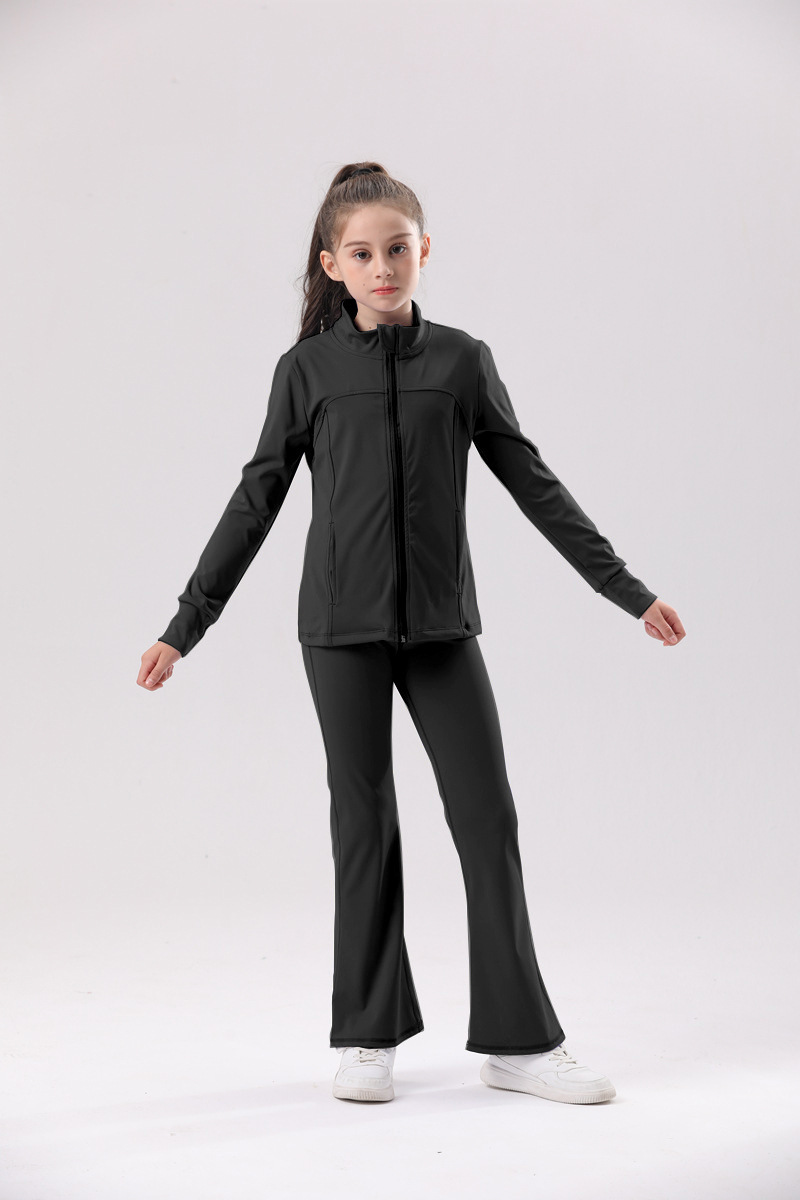 여아 요가 스포츠웨어 가을과 겨울 세트 여아 깃털 테니스 속건 옷 긴팔 자켓 슬림핏 플레어 팬츠