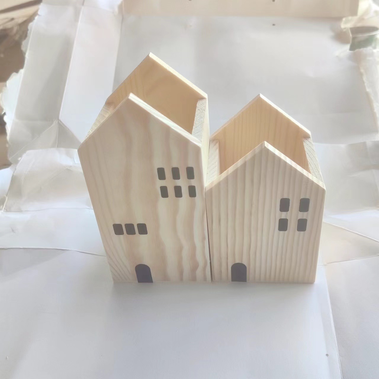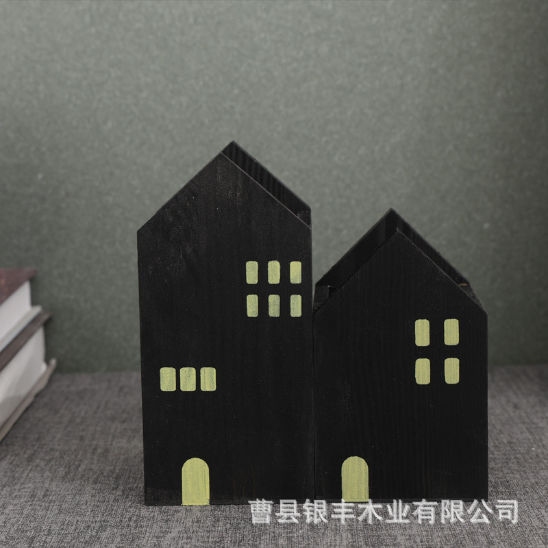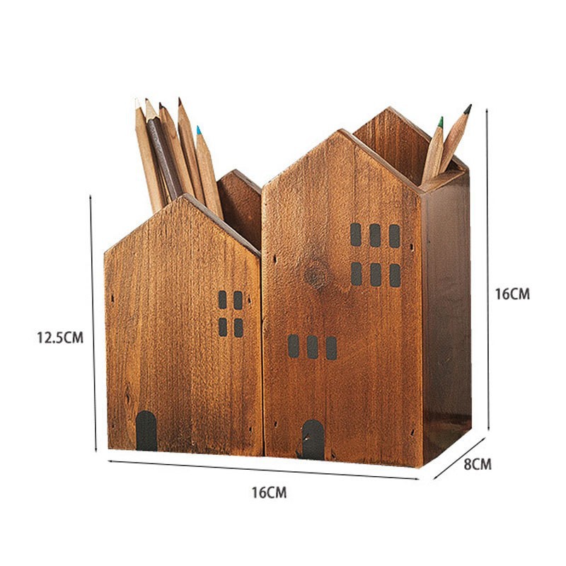 작은 집 모양의 펜 홀더 저장 상자 색상 리드 박스 나무 복고풍 바탕 화면 장식 데스크탑 메이크업 브러시 저장 상자스토어 가기
