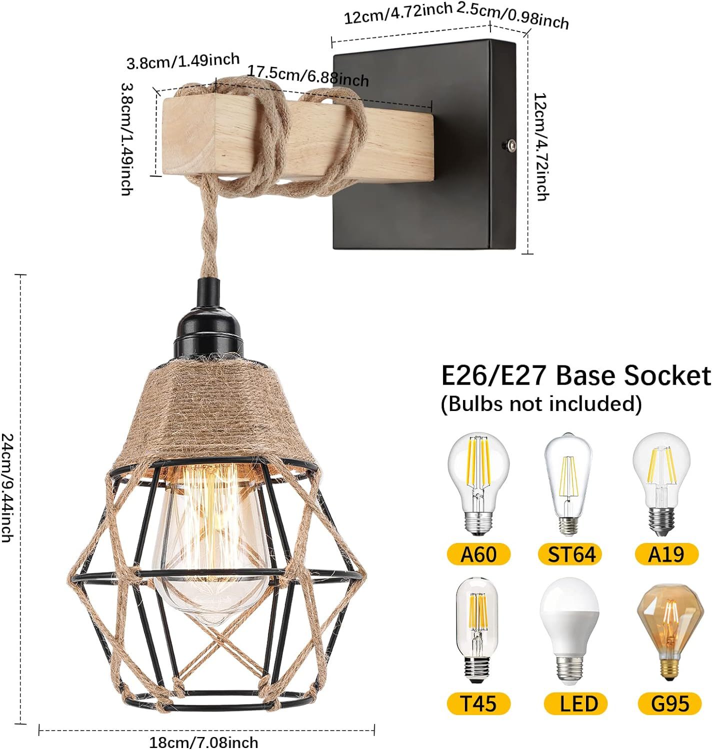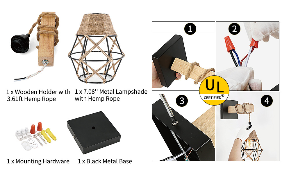 북미 벽 램프 대마 로프 다이아몬드 꼰 램프 조합 벽 램프 상업용 통로 램프 홈스테이 빈티지 복도 통로 벽 램프스토어 가기