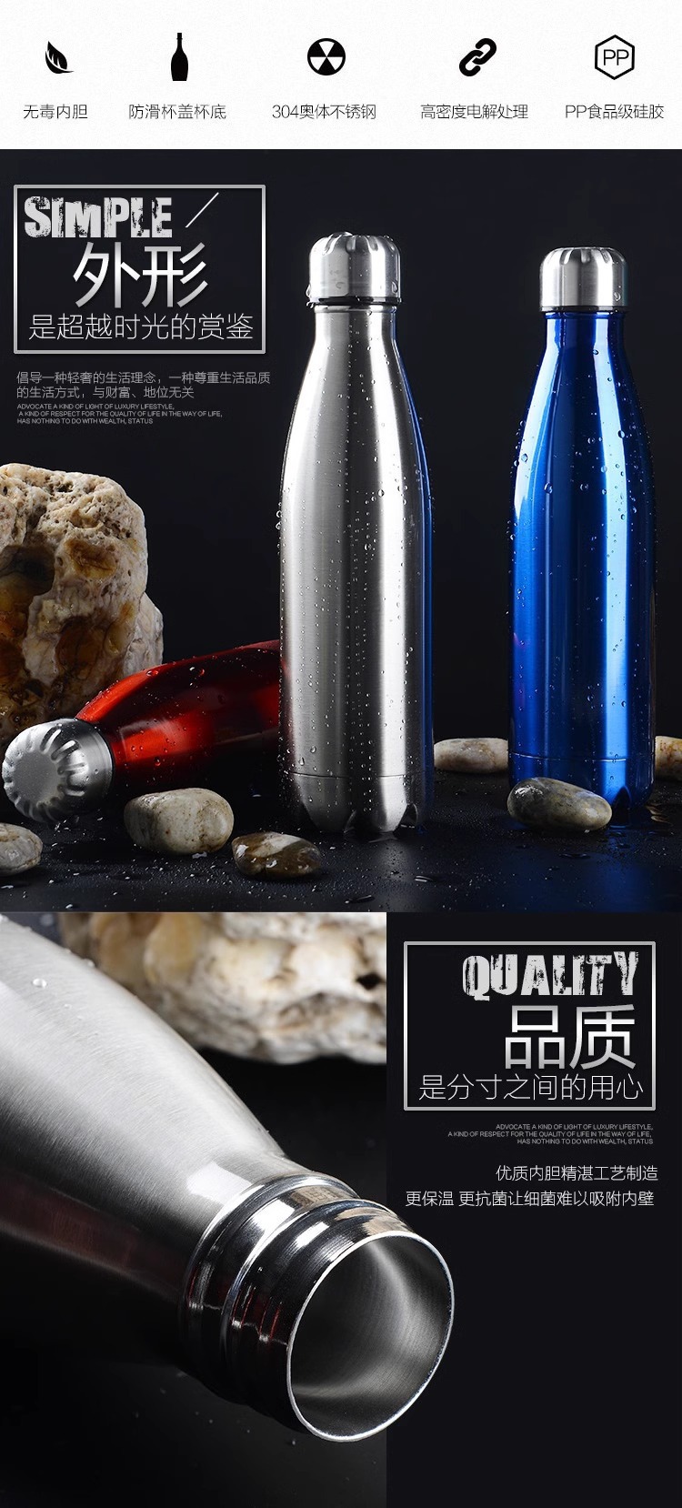 고무 페인트 스포츠 작은 입 병 보온병 이중 진공 304 스테인레스 콜라 병 폭발 미국 작은 입 컵스토어 가기